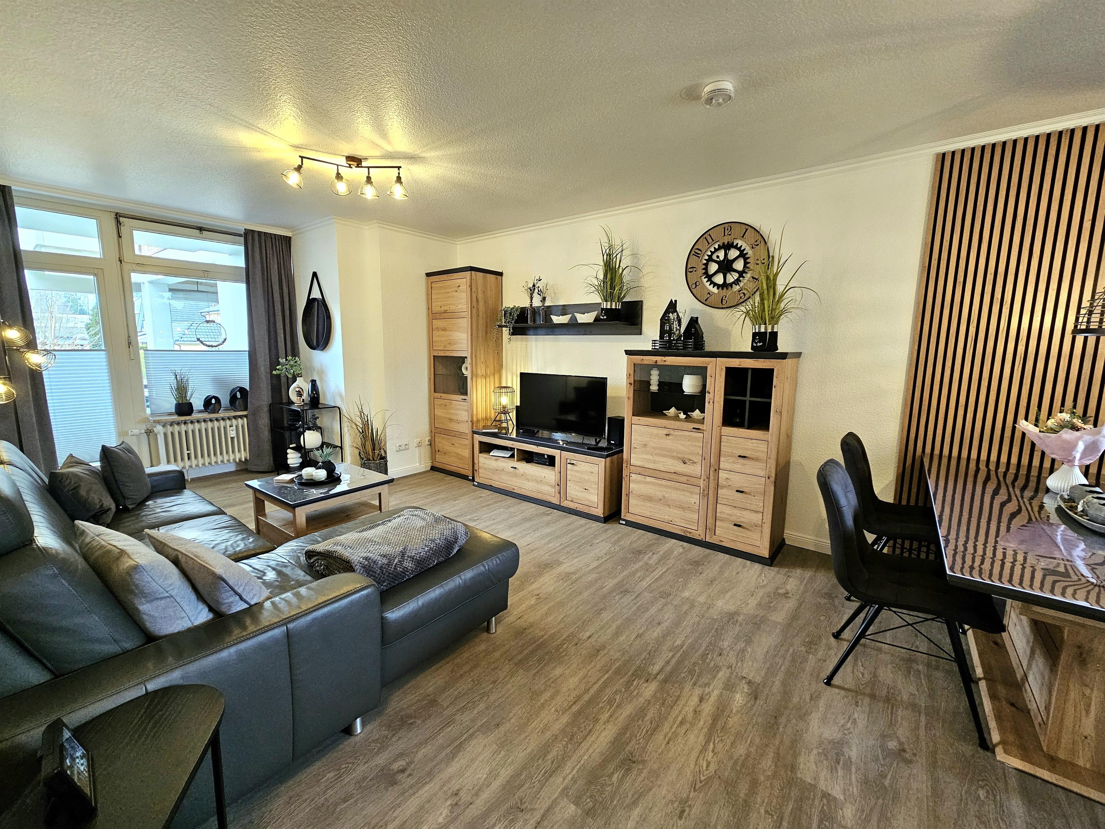 Dank der zentralen Lage direkt hinter dem Deich erreichen Sie die wunderschöne Promenade in nur zwei Gehminuten. Die Wohnung wurde im März 2025 modernisiert und stilvoll ausgestattet. Das gemütliche Wohnzimmer lädt mit einer komfortablen Couchgarnitur, einem TV und einer Essecke zum Verweilen ein. Zwei Balkone, die direkt vom Wohnzimmer aus zugänglich sind, bieten Ihnen die perfekte Möglichkeit, frische Meeresluft zu genießen.