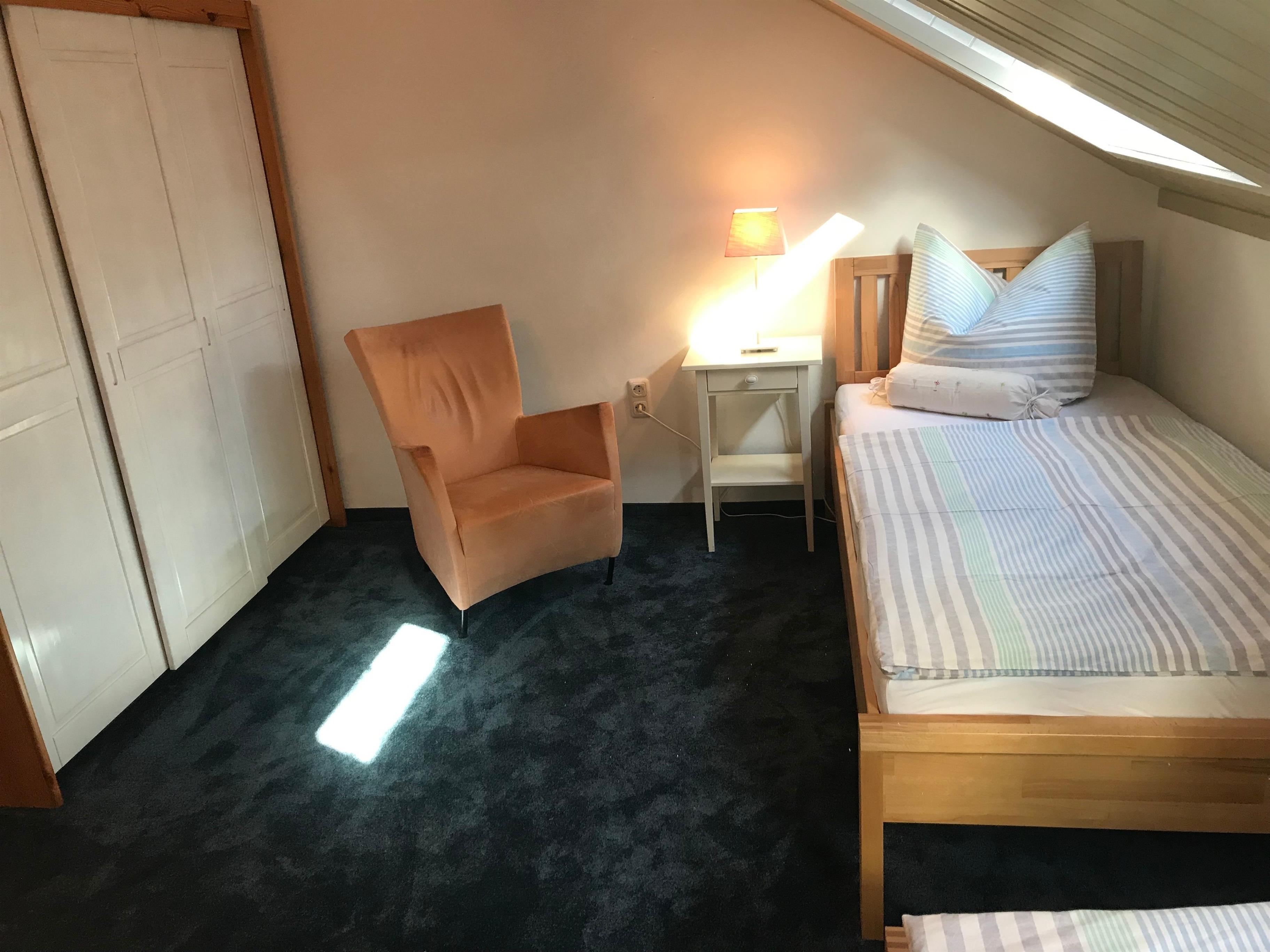 Die Ferienwohnung besitzt 4 Schlafzimmer. Drei davon mit einem hochwertigem Boxspringbett mit den Maßen 180 x 200 cm. In dem vierten Schlafzimmer befinden sich zwei Einzelbetten (90 x 100 cm) und eine Schlafcouch (120 x 200 cm).