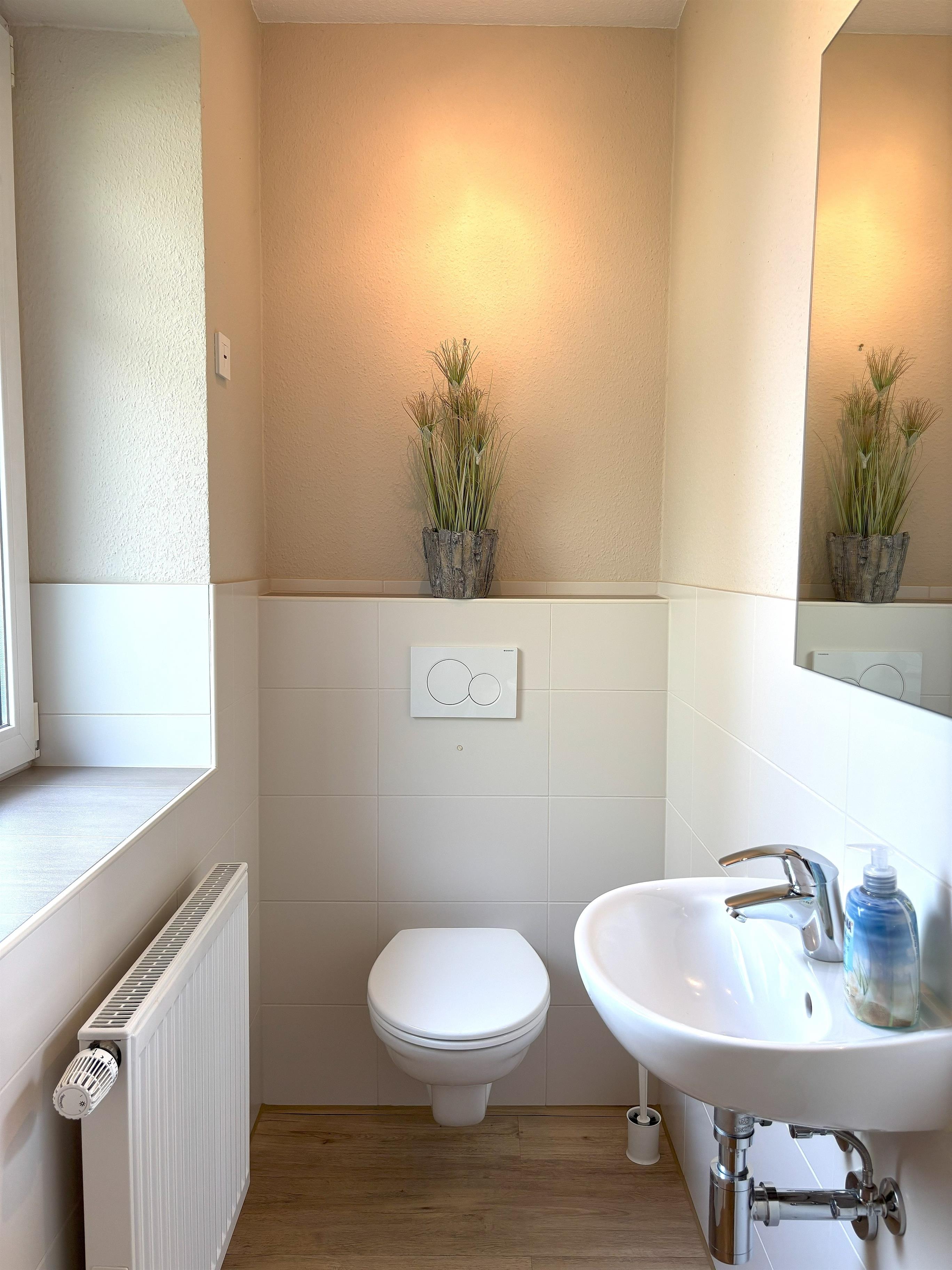 Im Erdgeschoss betreten Sie einen Eingangsbereich mit Garderobe, der Ihnen sofort ein Gefühl von Behaglichkeit vermittelt. Ein praktisches Gäste-WC und ein Abstellraum mit Waschmaschine sorgen für zusätzlichen Komfort.