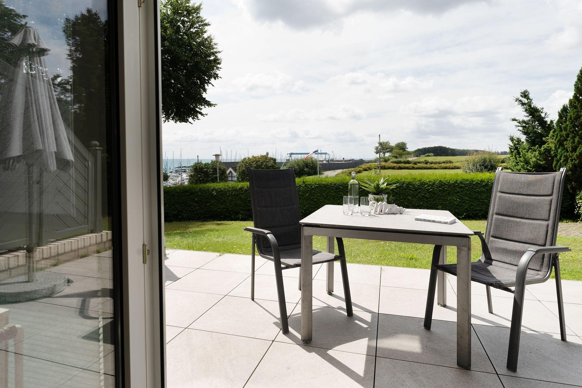 Im hellen Wohnbereich lädt das gemütliche Sofa zu Fernsehstunden vor dem UHD-Smart-TV ein. Auch Musikfans können sich freuen, denn eine Stereoanlage gehört ebenfalls zur Grundausstattung. Das Sofa bietet bei Bedarf ausreichend Platz (160x200 cm) als 3. Schlafmöglichkeit. Tolle Gerichte lassen sich in der offen gestalteten Küche zubereiten, die mit allen Annehmlichkeiten ausgestattet ist. Für den besonderen Kaffeegenuss steht sogar eine Nespresso-Maschine bereit. Der gleich angrenzende Esstisch bietet sich perfekt an für gemeinsames Essen, Spiele-Abende oder einfach nur zum Klönen. Vom Wohnbereich aus gelangt man auf die möblierte Südwest-Terrasse mit Blick auf den schönen Yachthafen. Hier können Sie ungestörte Urlaubsstunden verbringen, sonnenbaden und entspannen. Im separaten Schlafzimmer mit Komfort-Boxspring-Bett (2x90x200 cm) lässt es sich hervorragend schlafen und Sie können ausgeruht und frisch in den neuen Tag starten. Das moderne Duschbad ist mit praktischer Handtuchheizung ausgestattet. Ein WLAN-Anschluss ist inklusive.