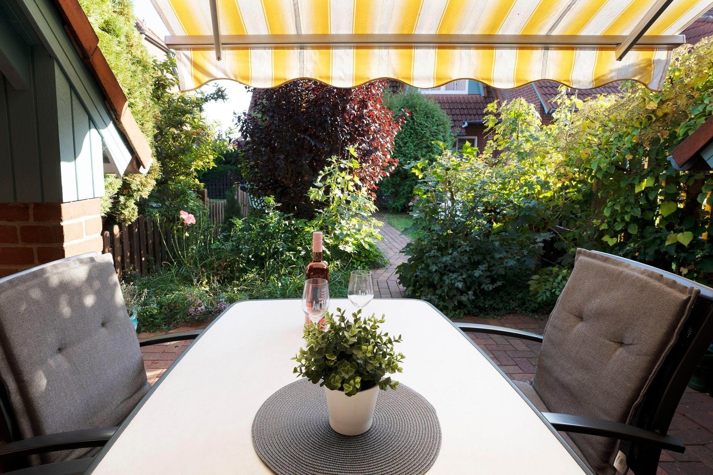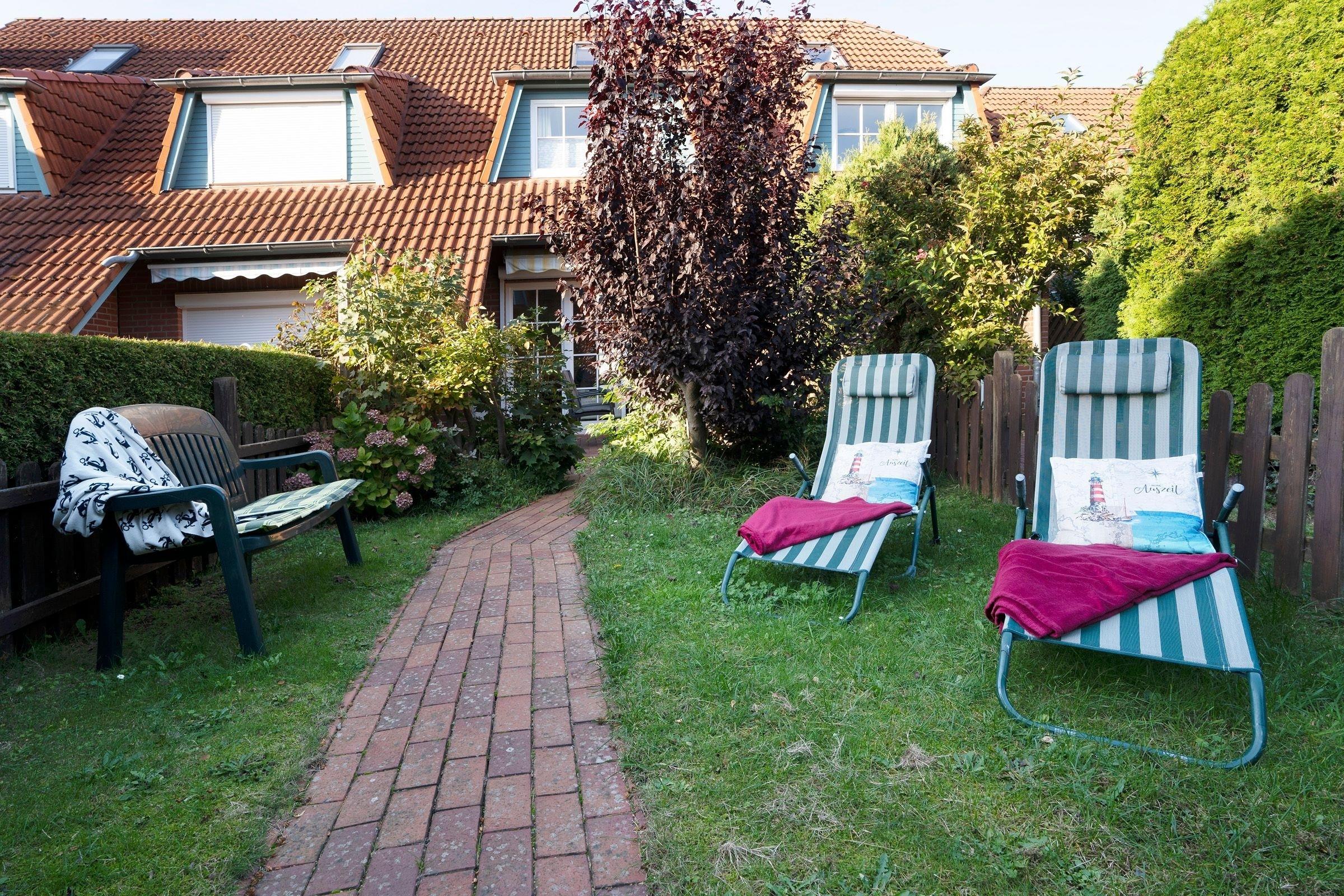 Wollen Sie dem Trubel am Strand mal entfliehen? Bitte schön .....eine ruhige Terrasse mit herrlichem Grün drumherum lädt Sie zum relaxen ein.