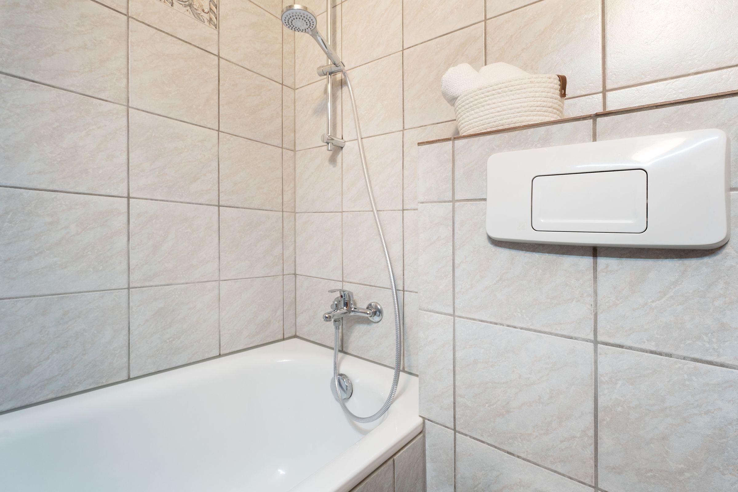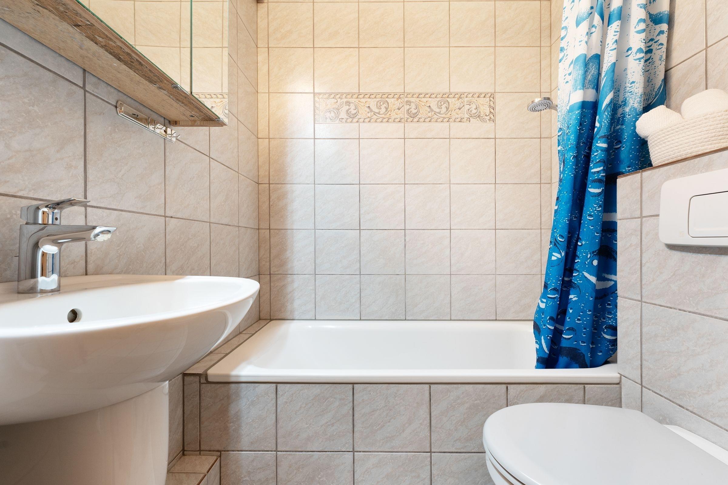 Im Erdgeschoss des Hauses Panorama finden Sie auf 49 m² Wohnfläche einen hellen Wohnbereich mit offener angrenzender Küche. Hier können Sie nach langen Strandtagen einen geselligen Familienabend, zum Beispiel vor dem Flachbildfernseher mit DVD-Player verbringen. Der große Esstisch lädt zum Spielen und Essen ein. Wunderbar entspannen und die Sonne genießen, können Sie auf Ihrer möblierten Terrasse, die Sie direkt vom Wohnbereich aus erreichen. Die Küche ist klein aber fein und verfügt über alle Annehmlichkeiten, sogar über eine Spülmaschine, die Ihren Abwasch übernimmt. In das angrenzende Schlafzimmer mit Doppelbett (2x 90x200 cm) und kleinem Einbauschrank können Sie sich zur Nachtruhe zurückziehen. In einem weiteren Schlafzimmer mit Kleiderschrank stehen ein Etagenbett und ein Einzelbett (je 90x200 cm) für max. 1 Erwachsenen und 2 Kinder bereit. Das WC mit Badewanne rundet die Ausstattung dieser Ferienwohnung ab.