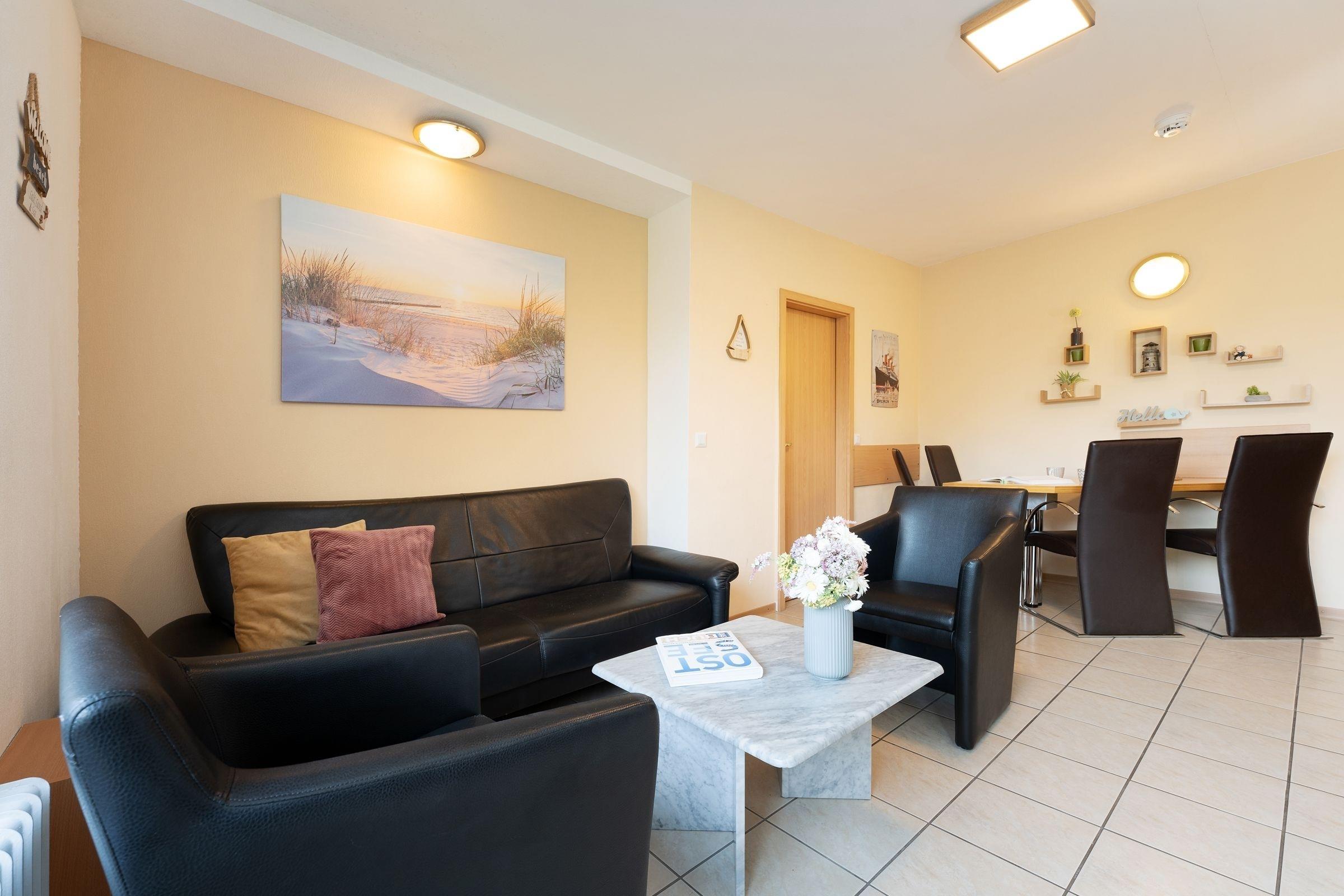 Nur wenige Gehminuten von der Ostsee entfernt verbringen Sie Ihren Urlaub in dieser 3-Zimmer-Ferienwohnung für max. 3 Erwachsene und 2 Kinder.