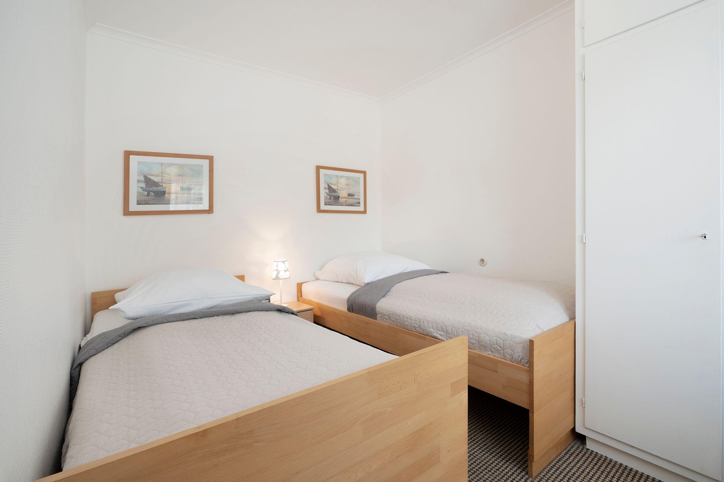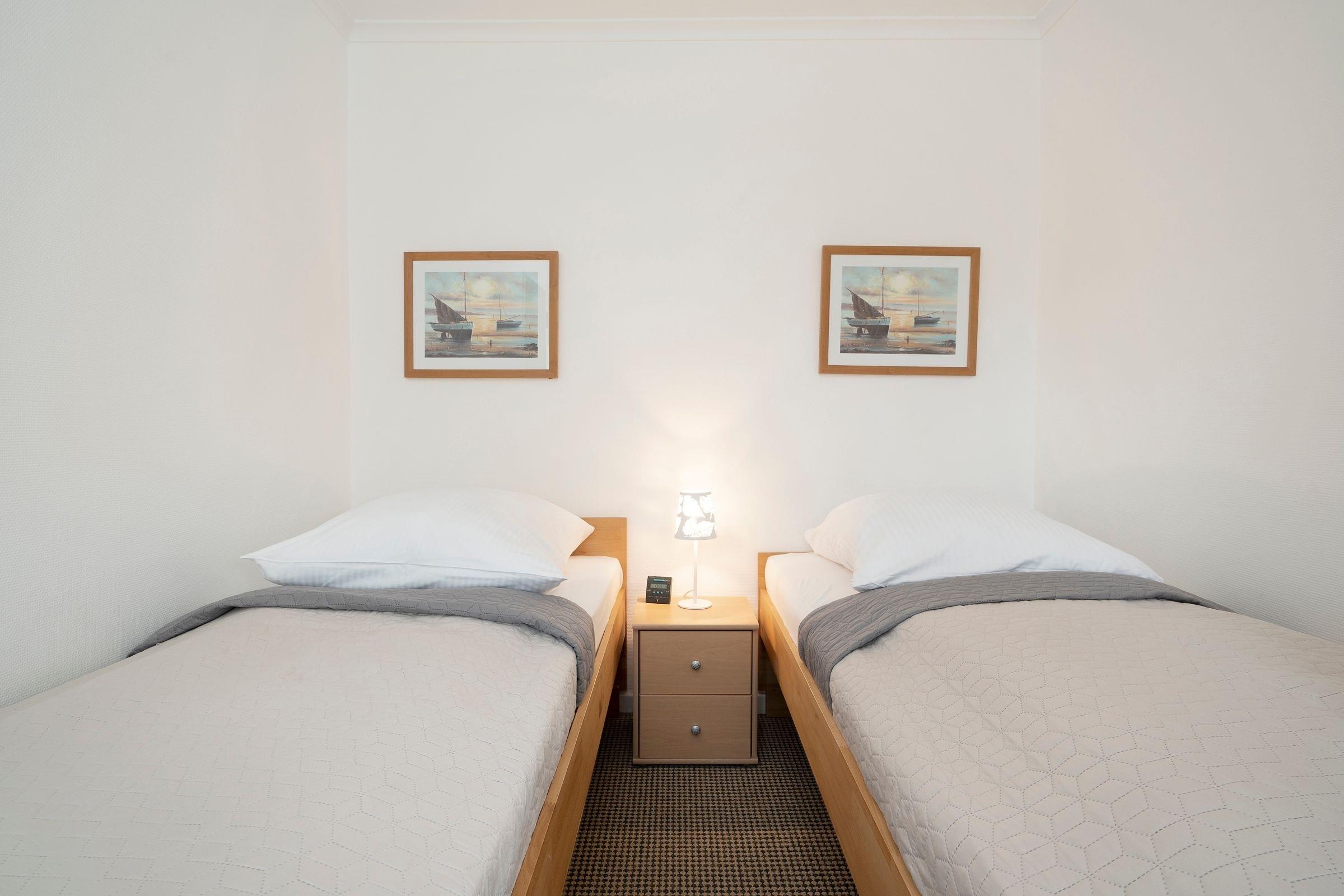 Schlafzimmer: 2 Einzelbetten (2x 90x200 cm), Verdunkelung (Rollo)