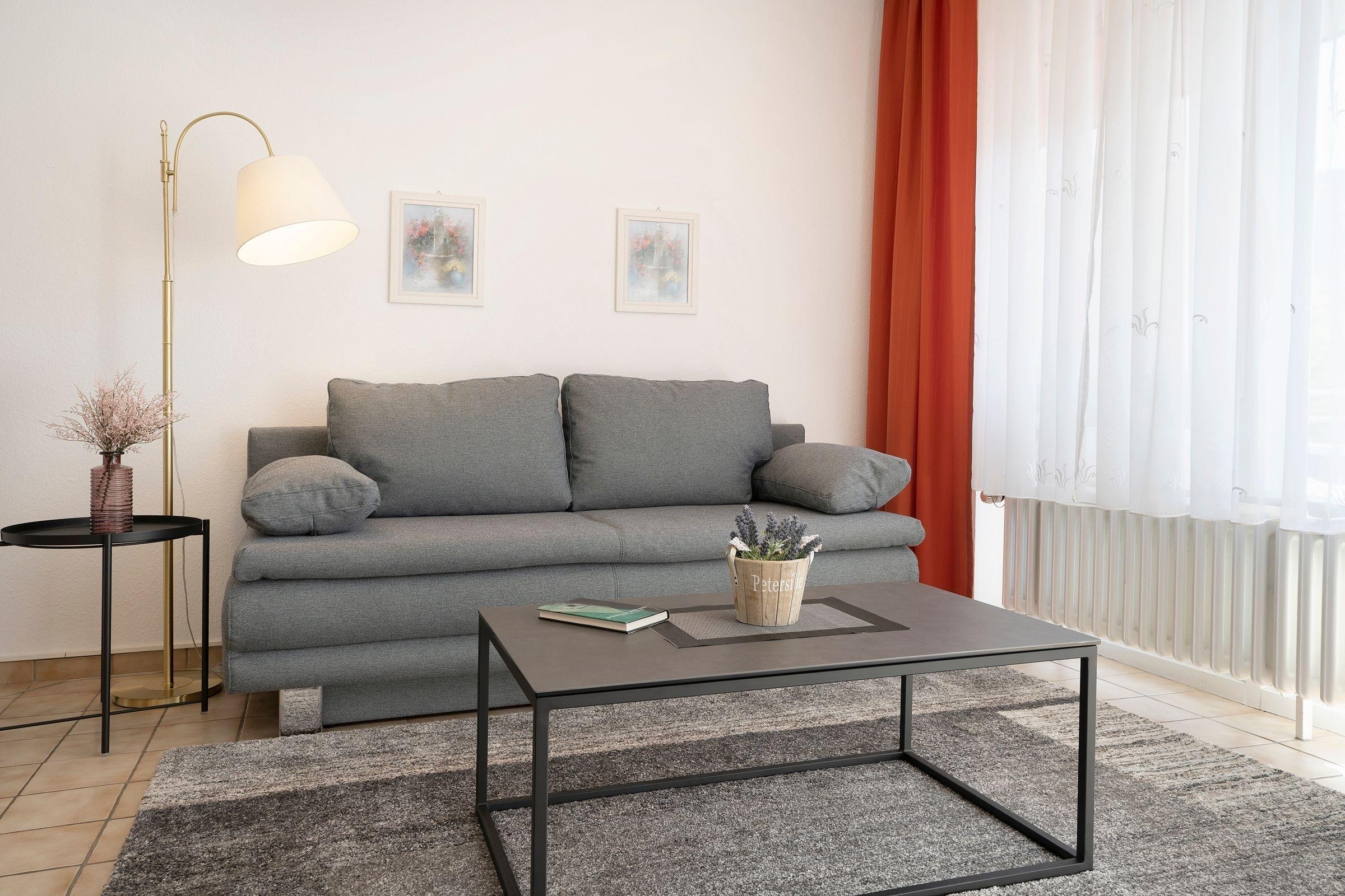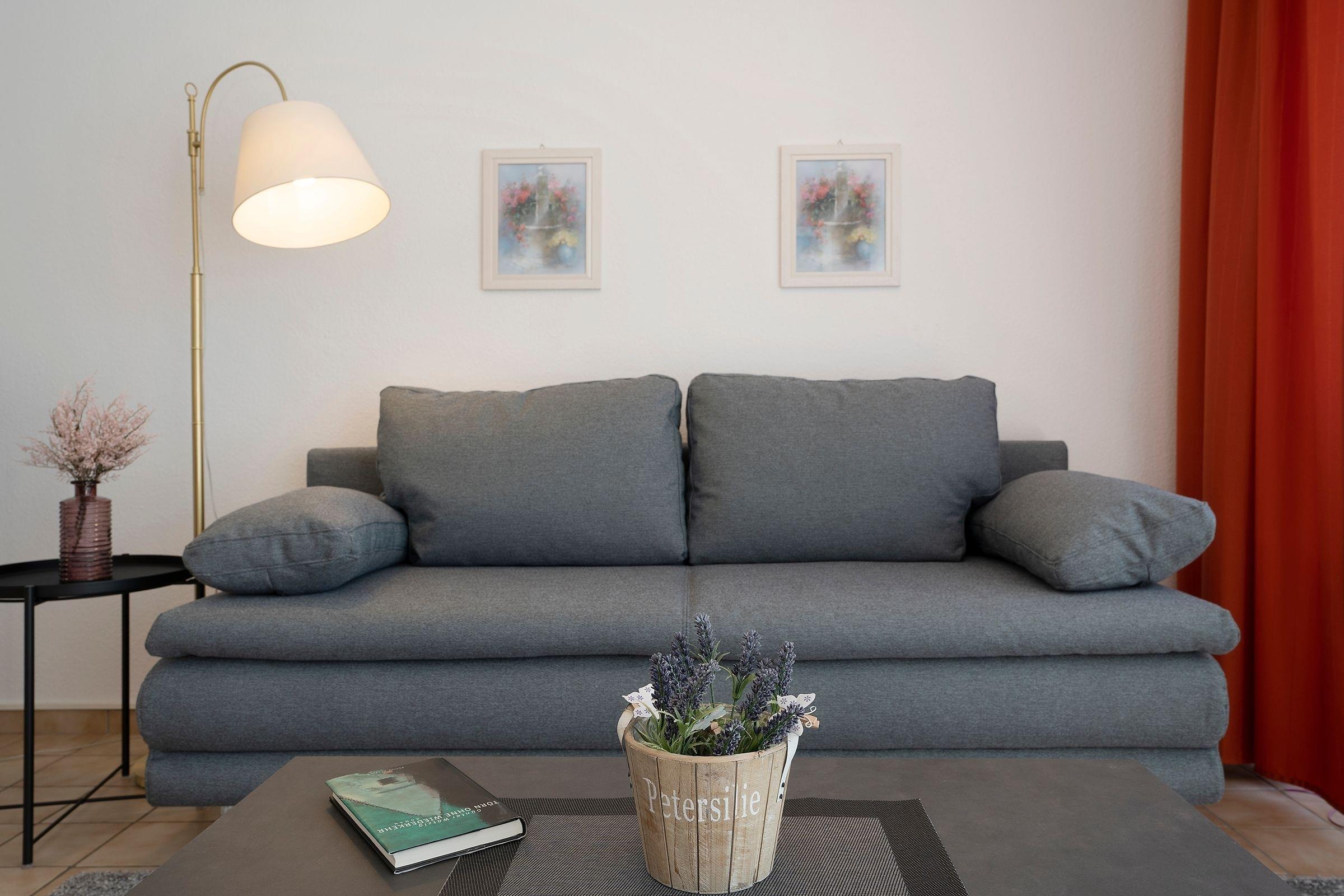 Wohnzimmer: 1 Schlafsofa (150x200 cm) für eine Person, Verdunkelungsmöglichkeit