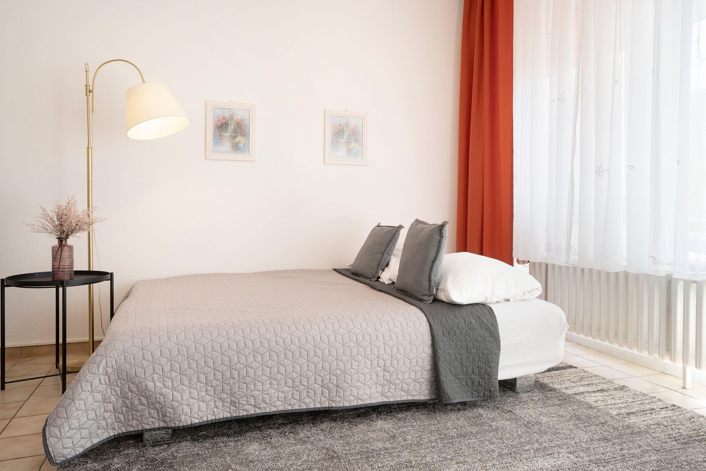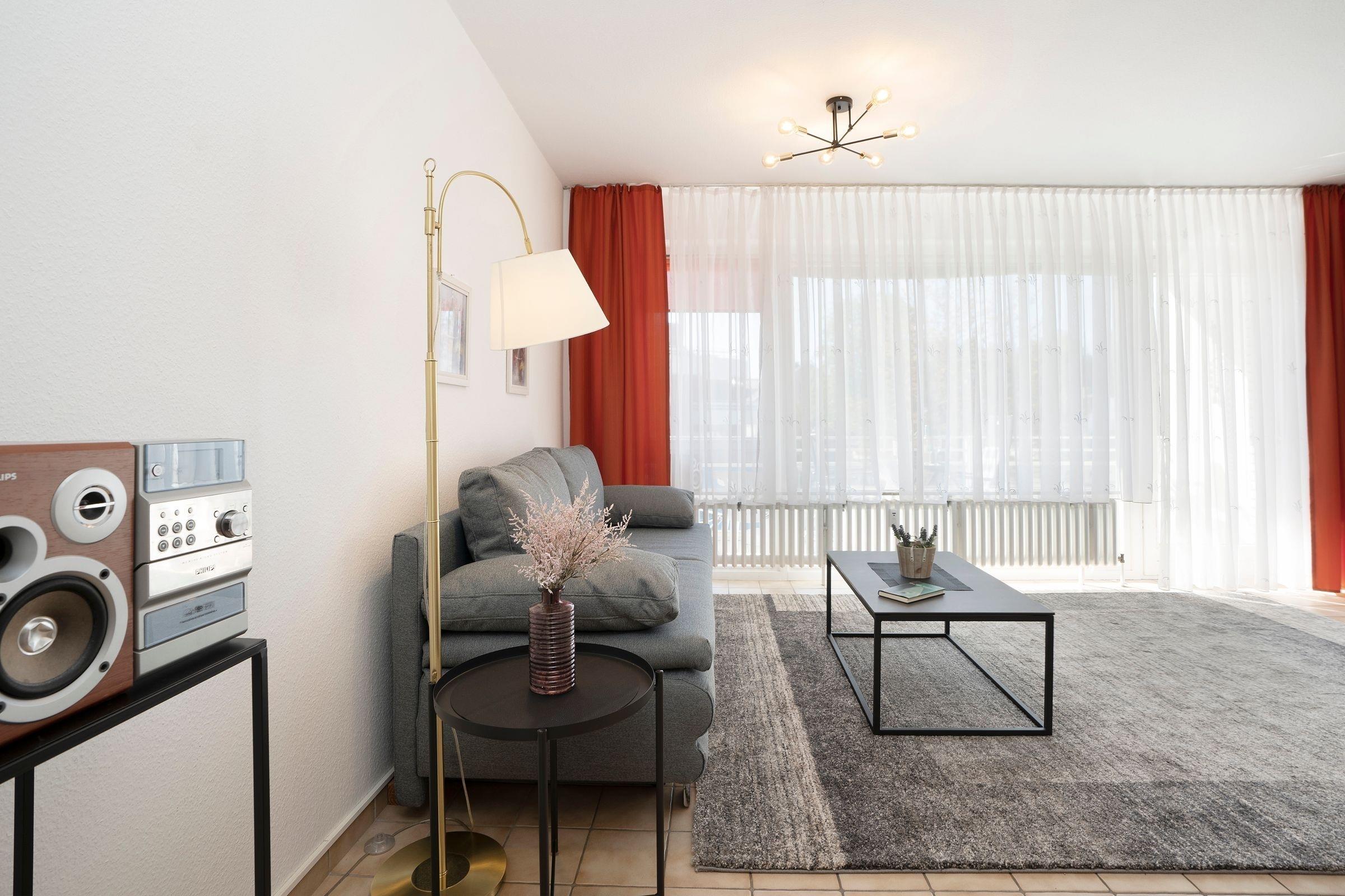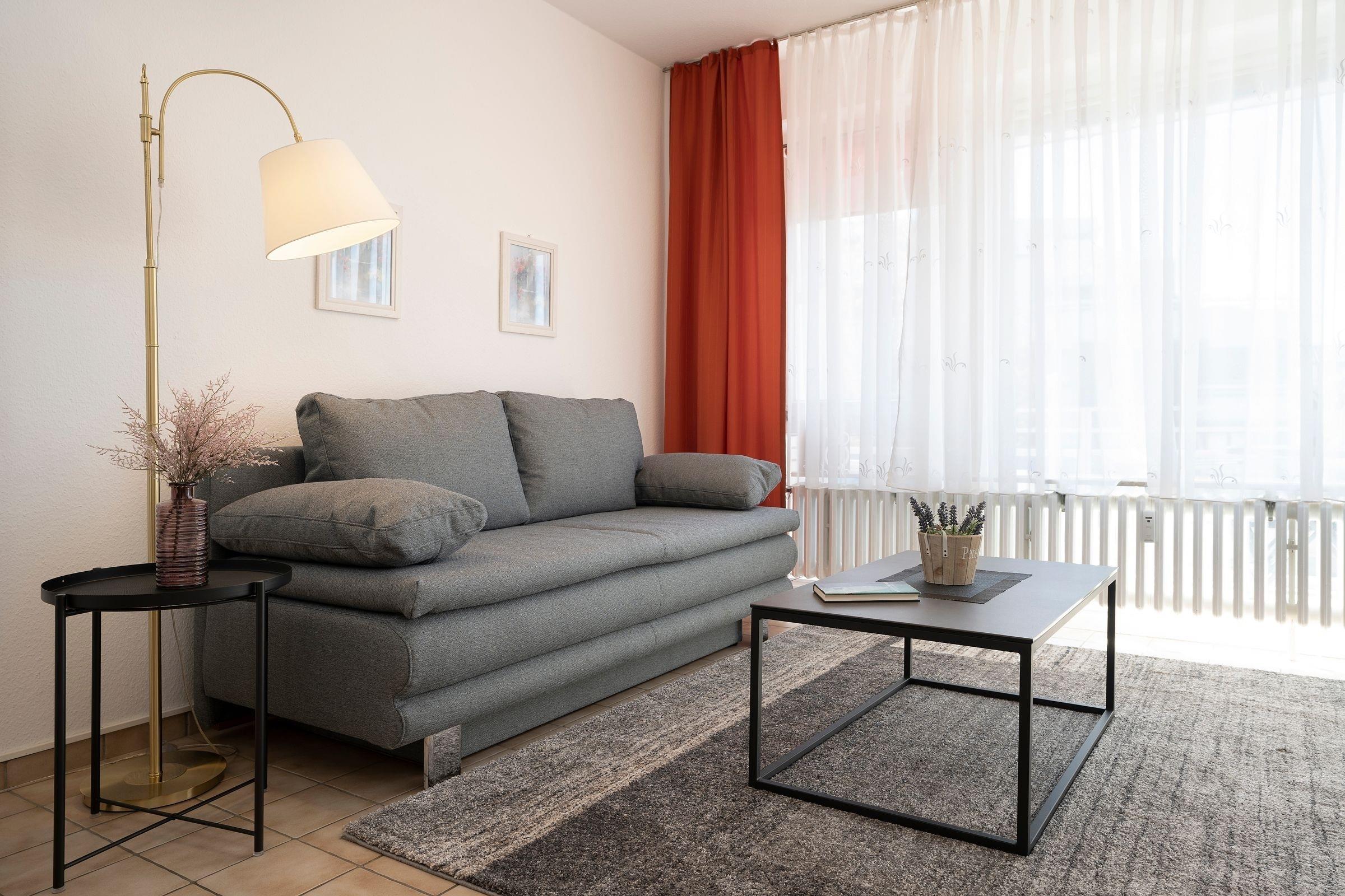 Machen Sie es sich hier auf der komfortablen Couch mit Schlaffunktion (150x200 cm) gemütlich und genießen ruhige Fernseh-Abende oder genießen Sie gesellige Runden in der integrierten Essecke. Ein Flatscreen-TV und eine Stereo-Anlage bieten Unterhaltung. Der offene Wohnraum ist lichtdurchflutet und verfügt über einen direkten Zugang zum möblierten Balkon mit Südost-Ausrichtung. Genießen Sie hier herrliche Sonnenstunden! Vom Wohnzimmer aus erreichen Sie die separate Küche, die zum Wohnraum hin offen liegt. Klein, aber fein ist hier die Devise. Für eine gute Ausstattung ist gesorgt, denn Annehmlichkeiten wie ein 4-Platten-Ceranherd, Backofen und Spülmaschine helfen im Ferienalltag. Das gemütliche Schlafzimmer verfügt über ein Doppelbett (2x 90x200 cm) und einen geräumigem Kleiderschrank für Ihre Urlaubsgarderobe. Im hell gefliesten Bad mit moderner Eckdusche, WC, Waschtisch und beleuchtetem Spiegel starten Sie entspannt in den Tag.