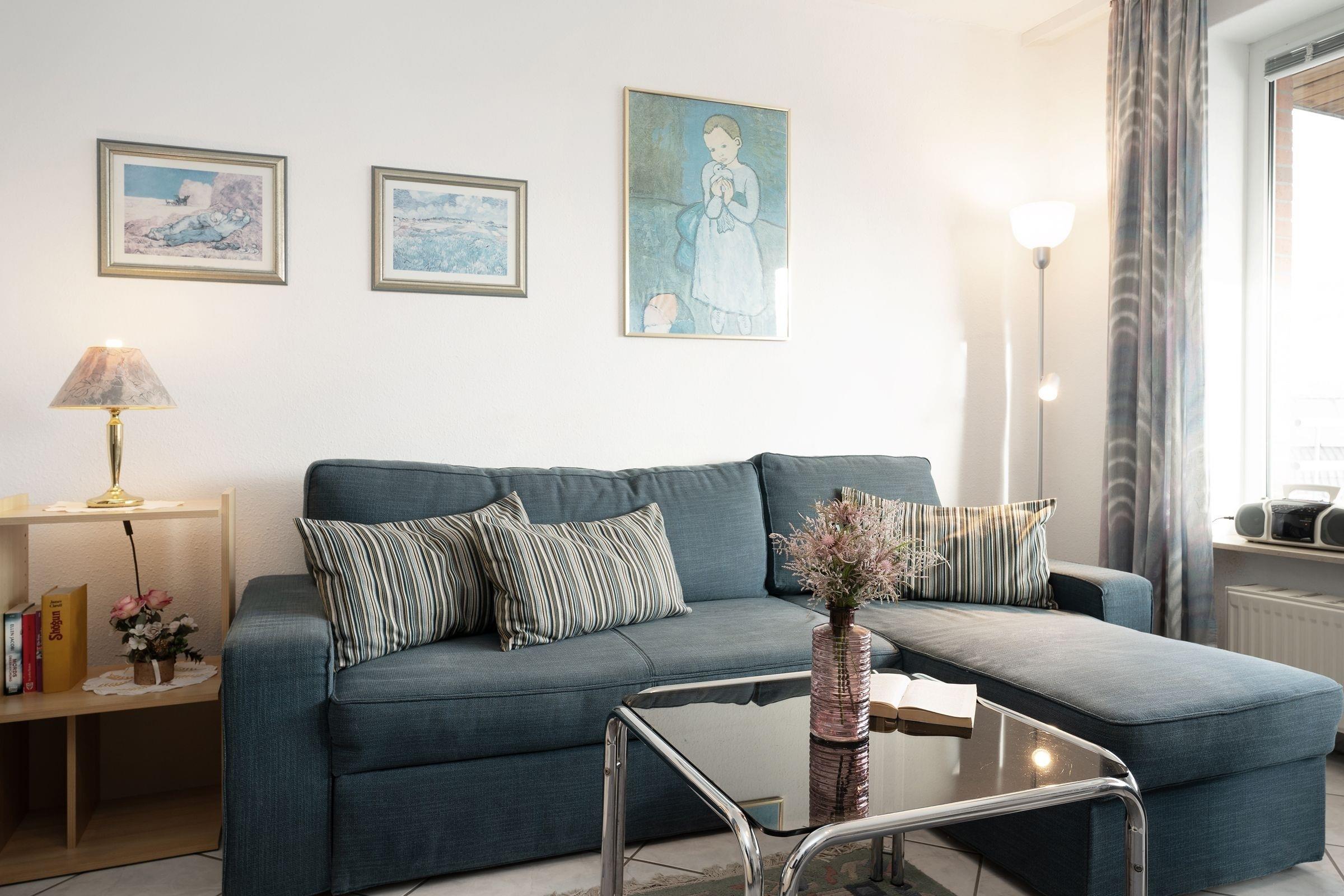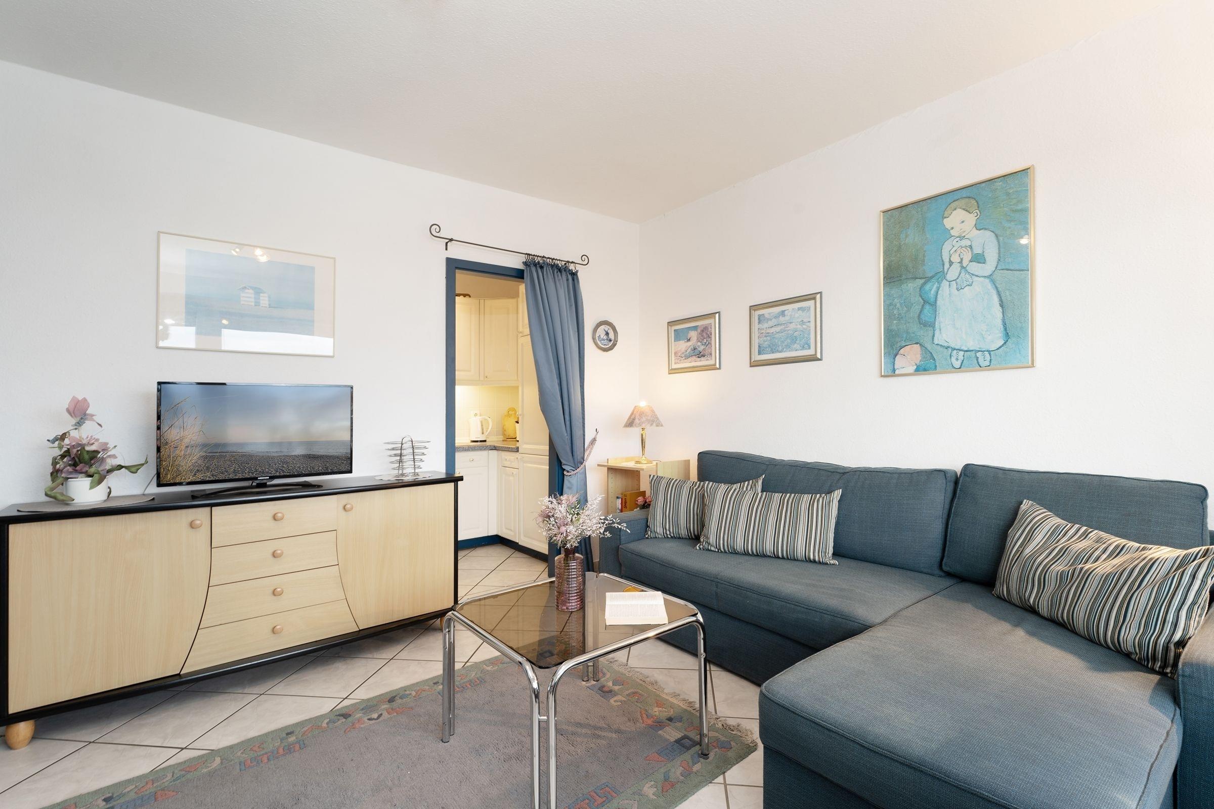 Herzlich willkommen! Der Wohn-/Schlafbereich empfängt Sie mit einer kuscheligen Sofalandschaft und einem bequemen Sessel vor dem TV-Gerät. Wie wäre es mit einem Frühstück in der Morgensonne? Der möblierte Balkon ist nach Osten ausgerichtet. Die separate Küche ist gut ausgestattet und macht eine Selbstverpflegung einfach. Für die Nacht lässt sich die Couch in ein Doppelbett (ca. 160x200 cm) verwandeln. Im separaten Schlafzimmer steht zudem ein komfortables Doppelbett (2x 90x200 cm). Das Duschbad ist hell gefliest.