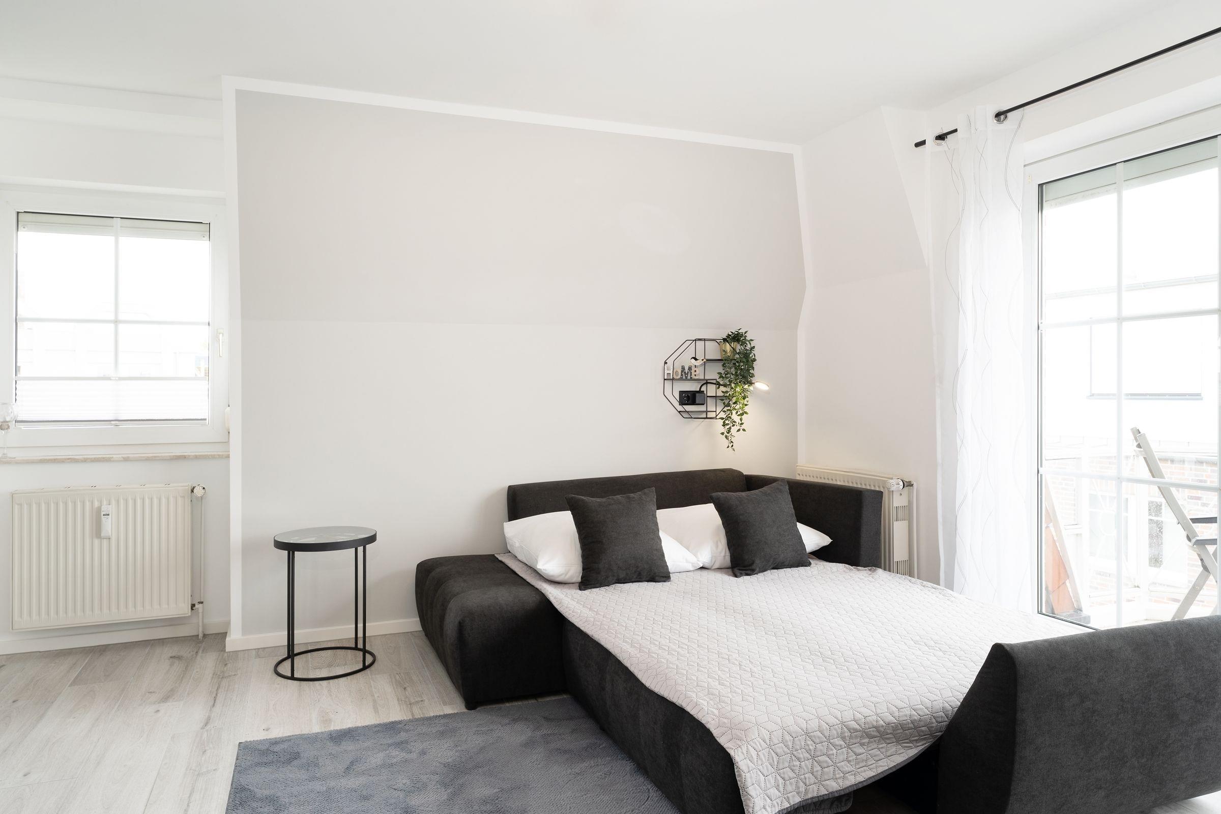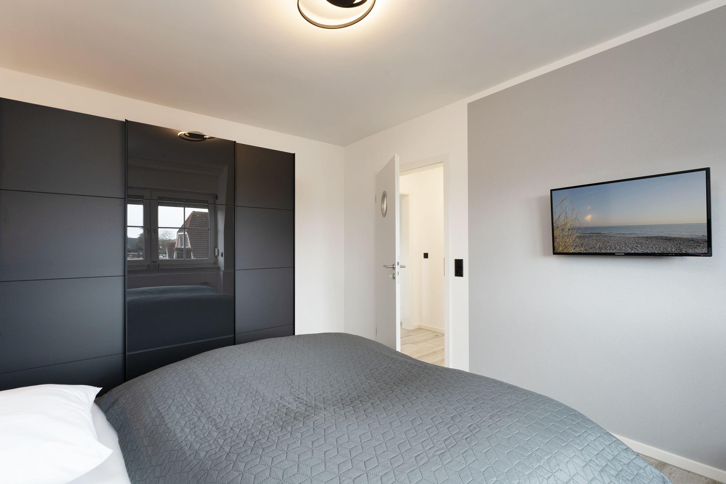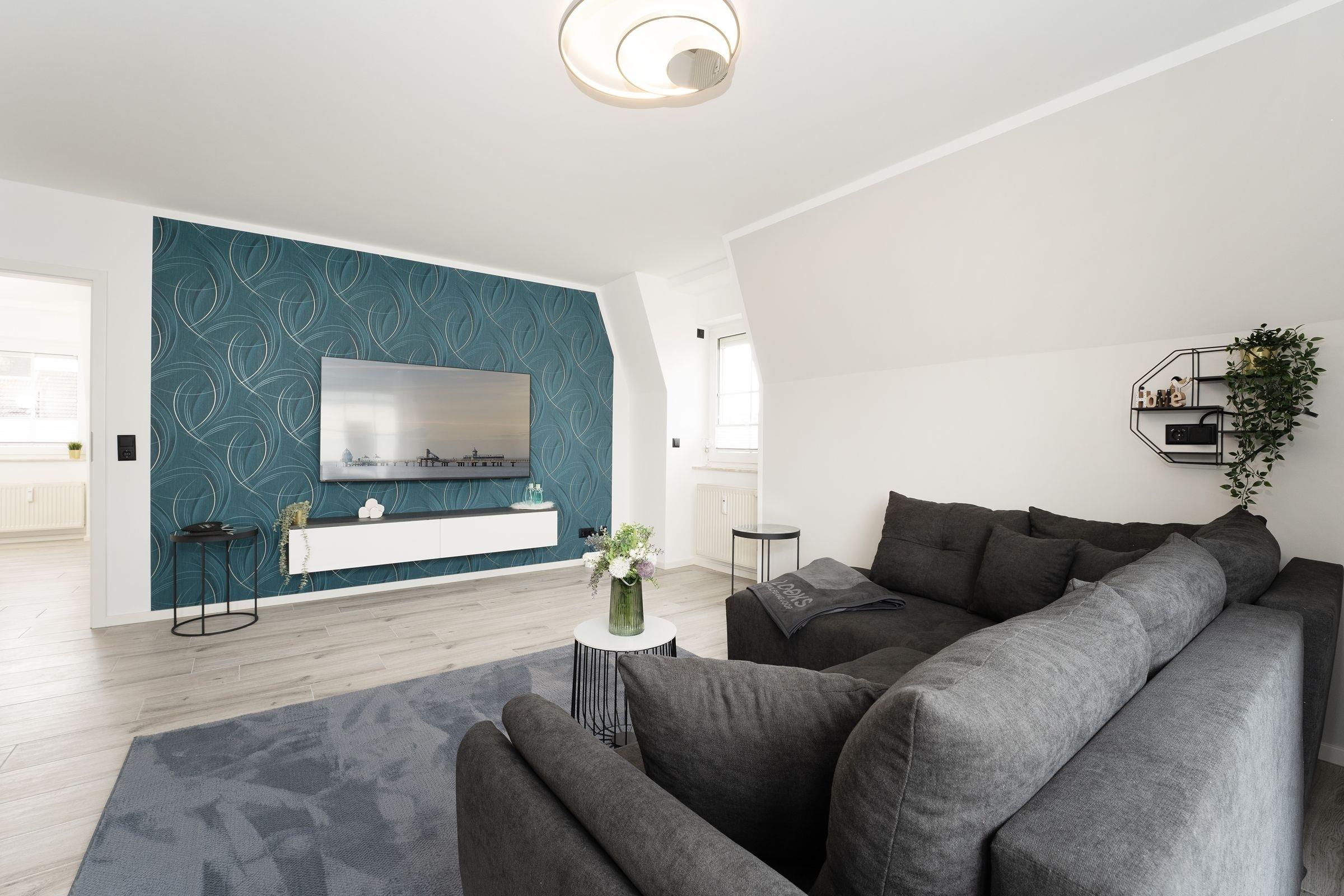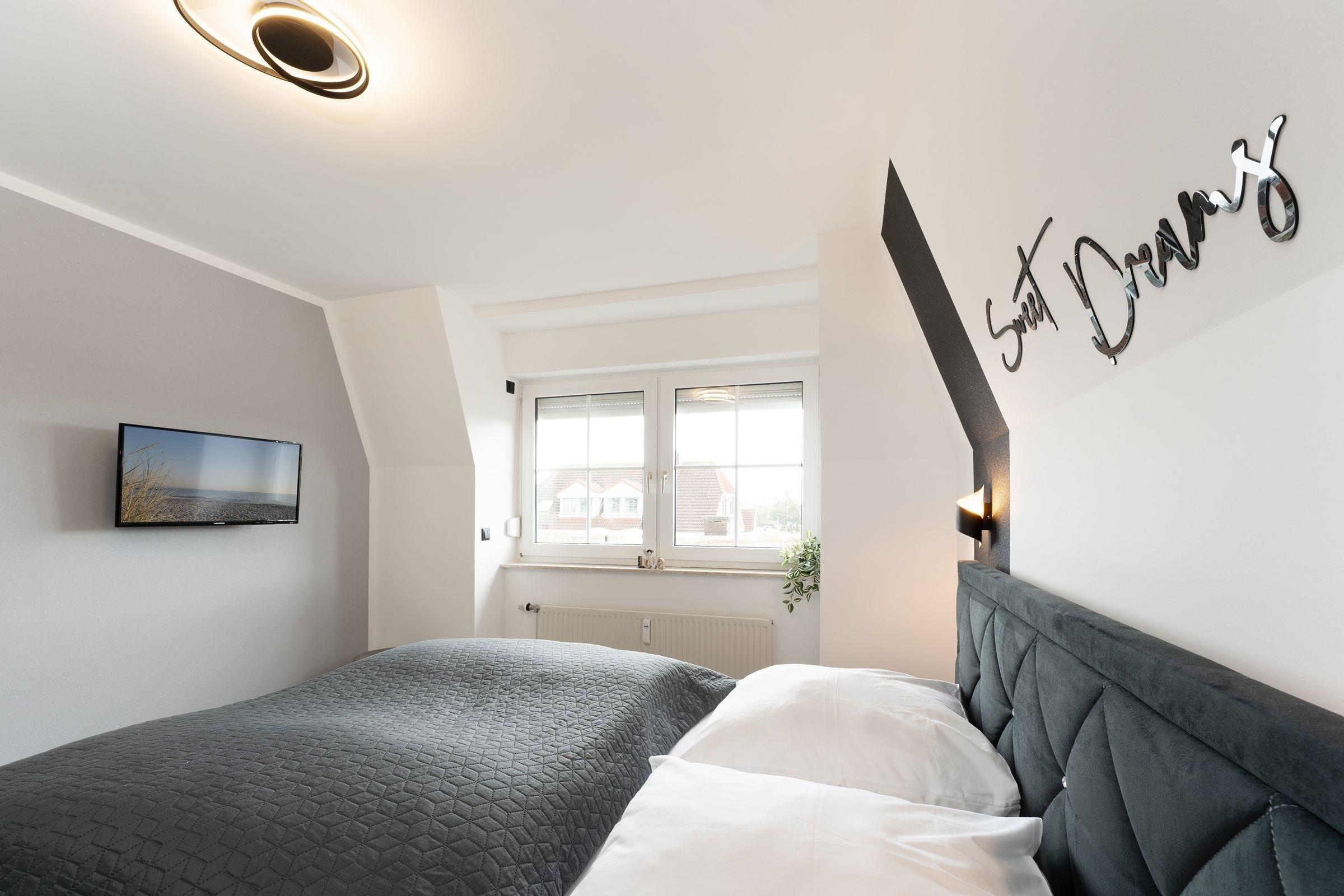 Urlaub der Extraklasse: Hier trifft Qualität auf modernen Schick – die Einrichtung der gesamten Wohnung wurde stilsicher und liebevoll ausgesucht. Vom Flur mit Garderobe und LED-Spiegel können Sie alle Räume betreten. Machen Sie es sich im lichtdurchfluteten Wohnzimmer auf der Sofalandschaft gemütlich und lassen Sie sich musikalisch von Alexa oder dem internetfähigen TV-Gerät unterhalten. Oder genießen Sie ein gutes Buch an der frischen Seeluft auf dem möblierten Balkon mit Sonnenmarkise. Die offene, hochwertig ausgestattete Küche lädt zum gemeinsamen Kochen ein. Neben Extras wie Induktionsherd und Geschirrspüler punktet die Küche mit einem Weinkühlschrank, der 7 Flaschen Ihres Lieblingsweins kühlt. Angenehm nächtigen werden Sie im rückenfreundlichen Boxspring-Doppelbett (180x200 cm) im Schlafzimmer. Zudem lässt sich das Sofa im Wohnbereich in ein komfortables Bett (150x230 cm) verwandeln. Das edle Bad überzeugt mit bodengleicher Dusche und Handtuchwärmer. Praktisch: Verbinden Sie Ihr Handy über Bluetooth mit dem Badezimmerspiegel und starten Sie mit Ihrer Lieblingsmusik in den neuen Urlaubstag.