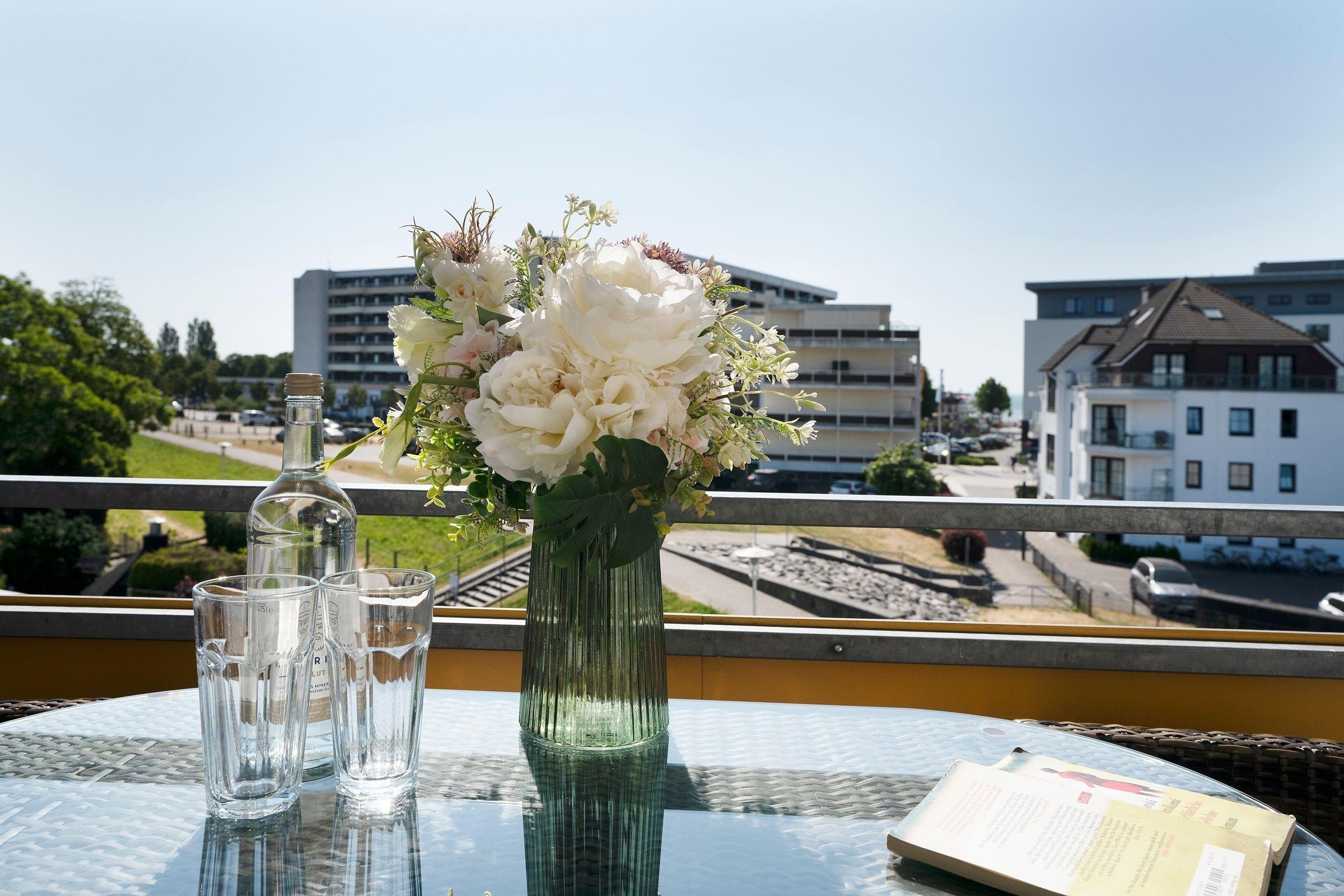 In der modernen und gut ausgestatteten Küche können Sie mit Freude leckere Ferienmahlzeiten zubereiten. Machen Sie es sich im Wohnzimmer mit angrenzendem Essbereich gemütlich. Der Ausblick vom möblierten Balkon führt über den Deich in Richtung der entfernten, blau funkelnden Ostsee. Die Süd-Ost-Ausrichtung Ihres Balkons garantiert Ihnen zudem viele Sonnenstunden. Im Schlafzimmer sorgt ein Doppelbett (2 x 80x195 cm) für erholsamen Schlaf nach langen Strandspaziergängen oder ausgiebigen Einkaufstouren. Eine zusätzliche Schlafgelegenheit bietet das Schlafsofa (ca. 140x215 cm) im Wohnbereich.