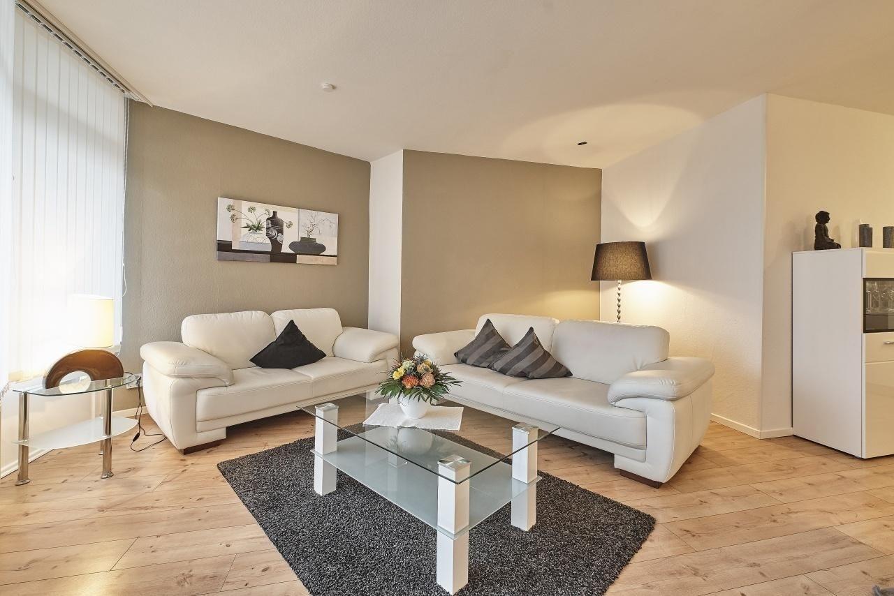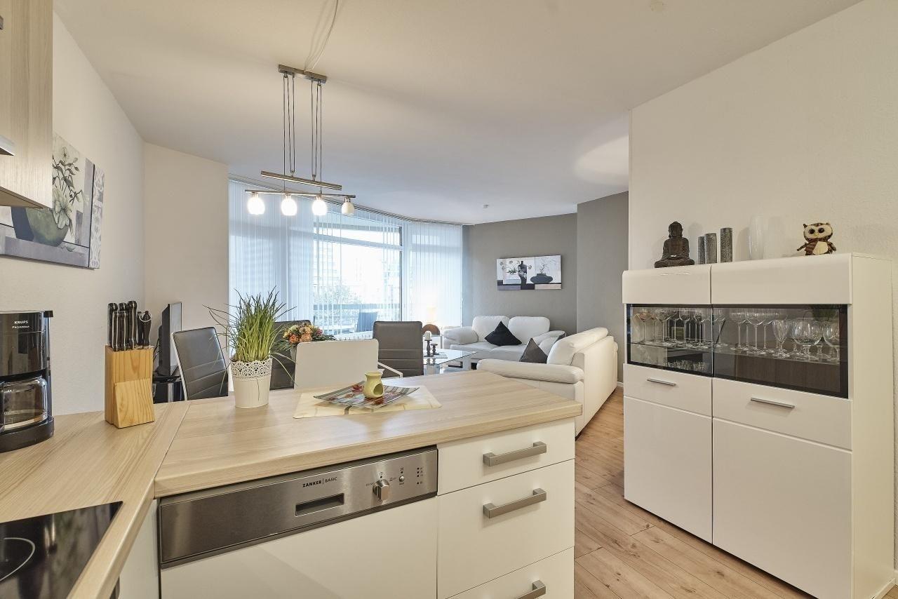 Das gemütliche Schlafzimmer mit einem Doppelbett (180x200 cm) und zusätzlichem Flatscreen-TV sowie ein weiteres Zimmer mit einem Einzelbett (90x200 cm) sorgen für erholsame Nächte! Die voll ausgestattete Küche mit Spülmaschine, Kaffeemaschine, Toaster, Wasserkocher, Eierkocher, Kühlschrank, Backofen, Töpfen und Pfannen lässt keine Wünsche offen. Im Wohnzimmer erwartet Sie eine gemütliche Sofalandschaft sowie ein Flachbildfernseher mit Blu-Ray-Player und Stereoanlage. Von ihrem modern gestalteten Essbereich gelangen Sie direkt auf den großzügig angelegten Balkon. Ausgestattet mit hochwertigen Balkonmöbeln genießen Sie hier zahlreiche Sonnenstunden. In der Wohnung befindet sich ein schickes, modernes Duschbad mit WC. Der WLAN-Anschluss ist für Sie inklusive.
