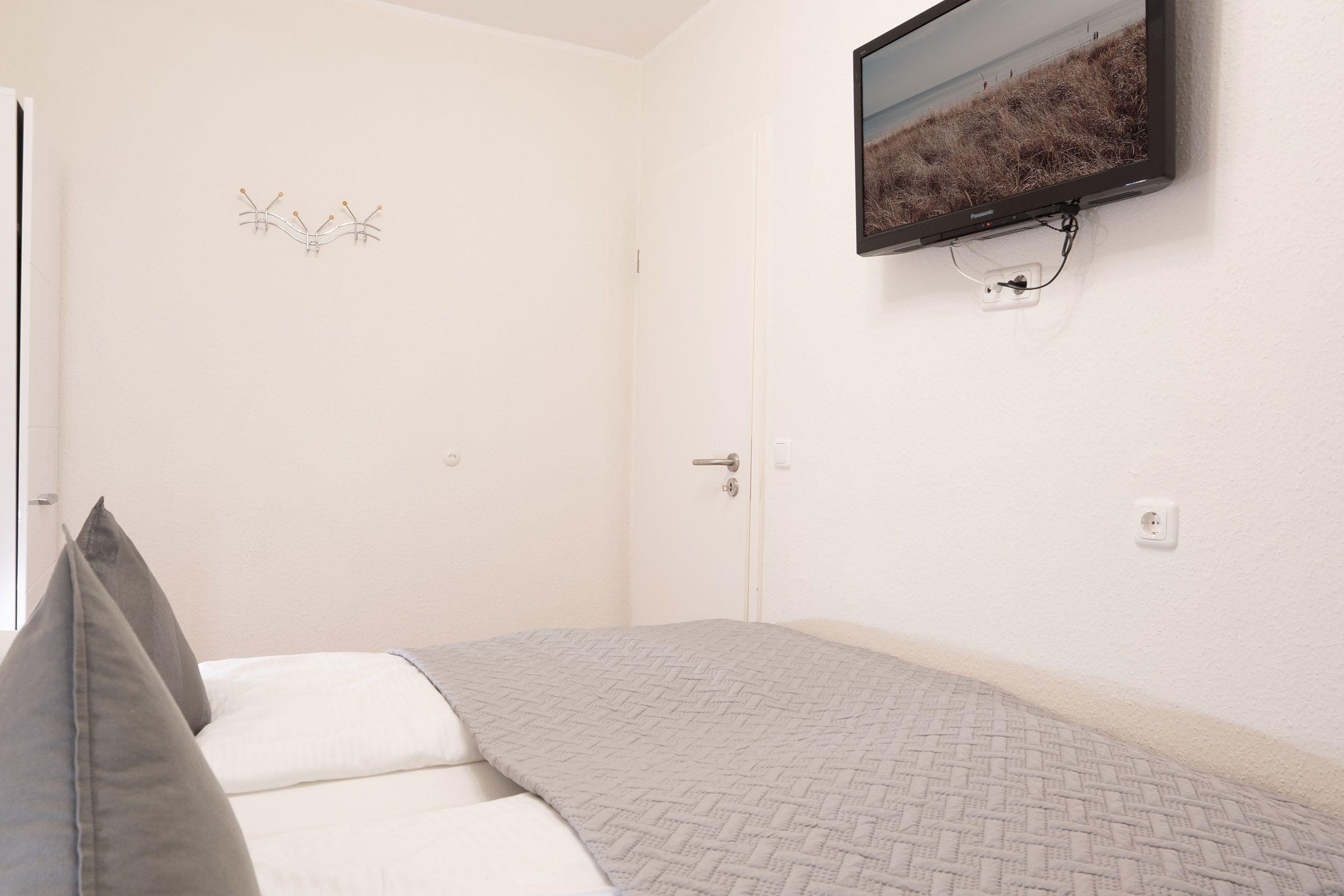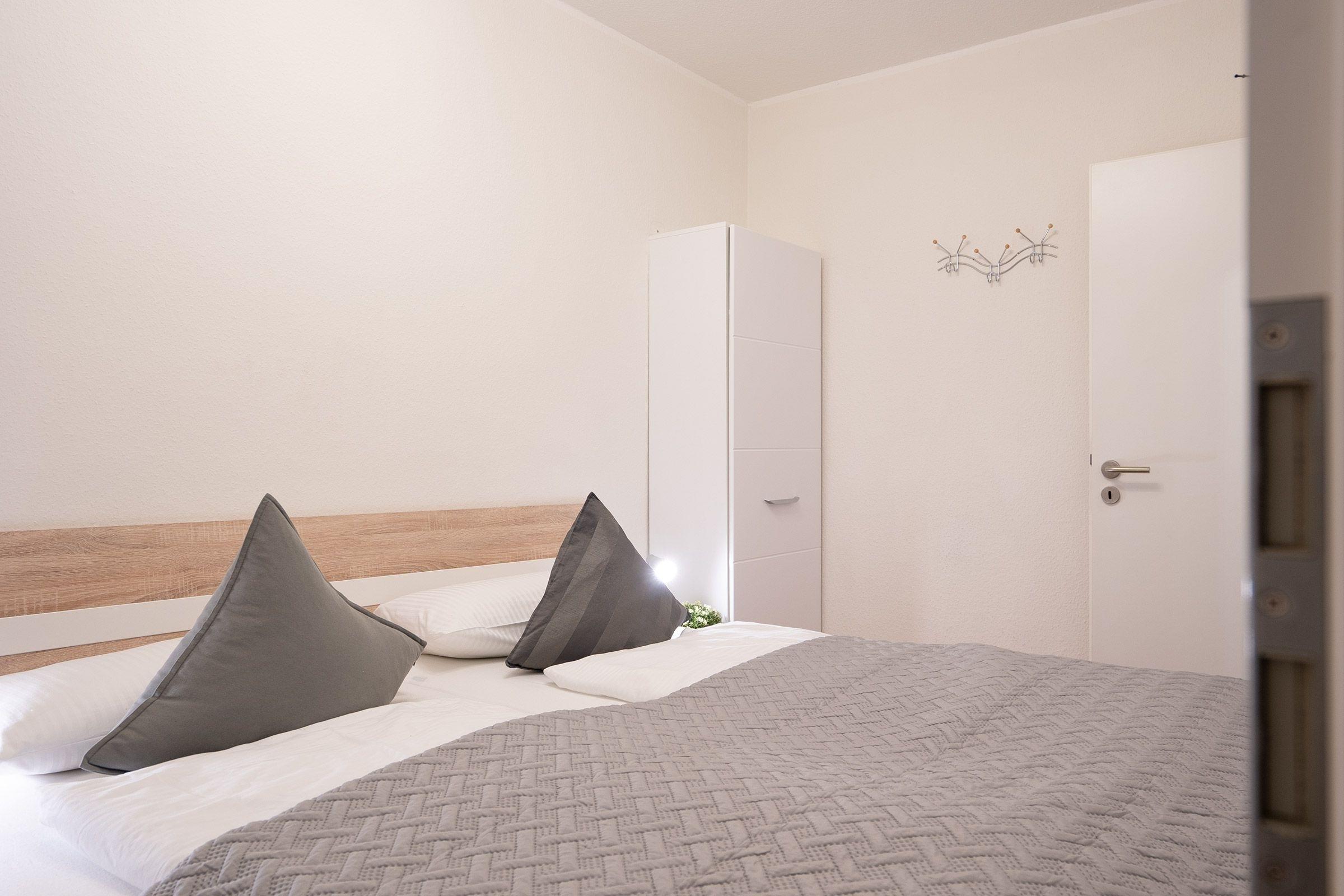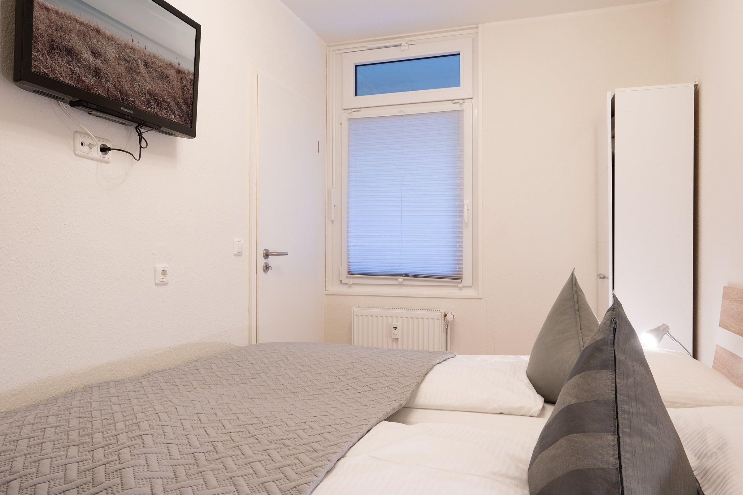 Schlafzimmer: 1 Doppelbett (180x200 cm), TV, Verdunkelung (Plissee)