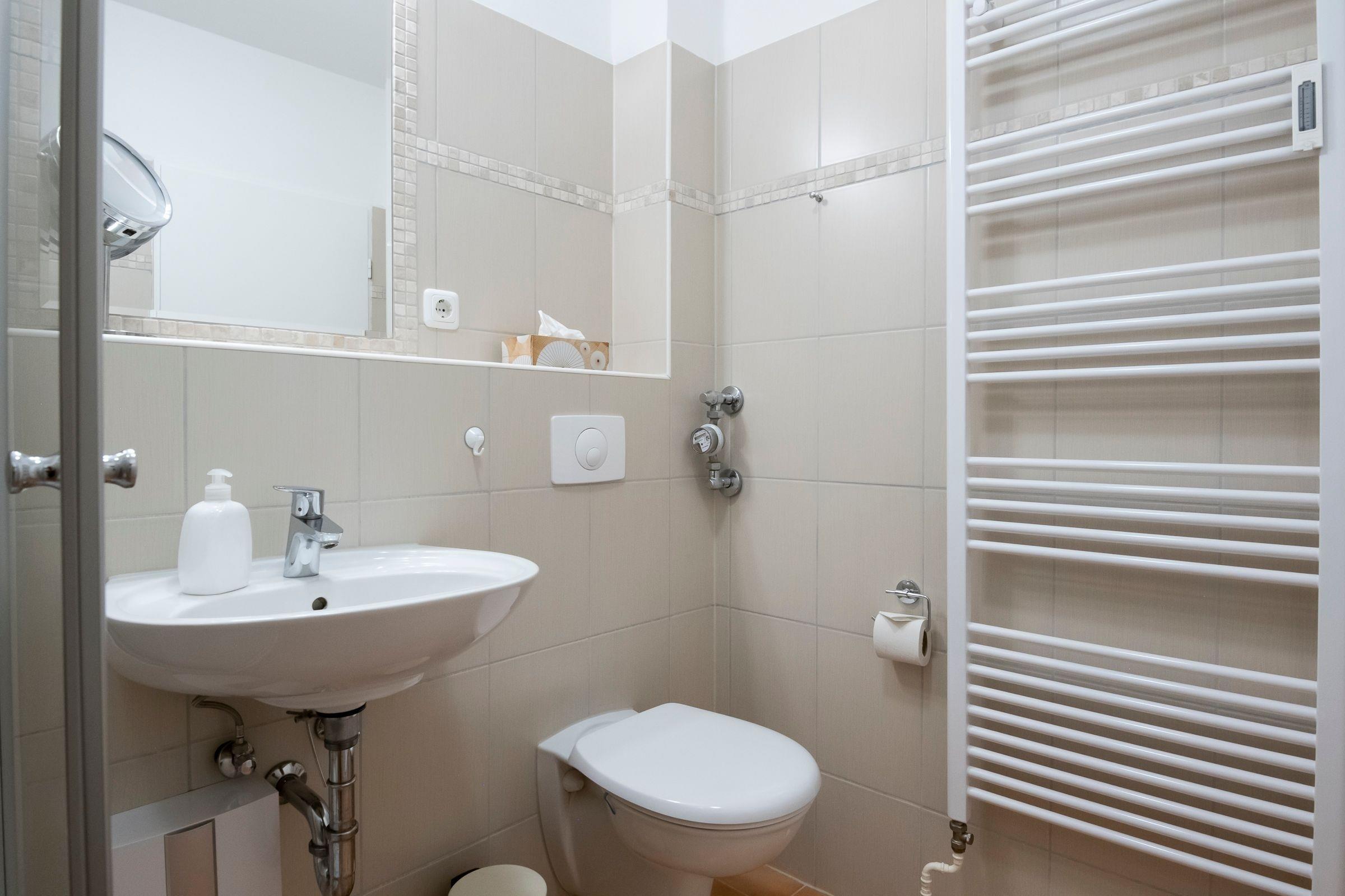 Ihr Auto parken Sie auf dem PKW-Stellplatz in der eigenen Garage (Höhe 1,88 m, Breite 2,20 m). Auch Fahrräder können sicher untergestellt werden. Die im Haus befindliche Gemeinschafts-Waschküche mit Waschmaschinen und Trocknern (Münzbetrieb) steht allen Gästen zur Verfügung, Sauna-Liebhaber können sich über die Gemeinschaftssauna freuen (gegen Gebühr/Münzbetrieb).