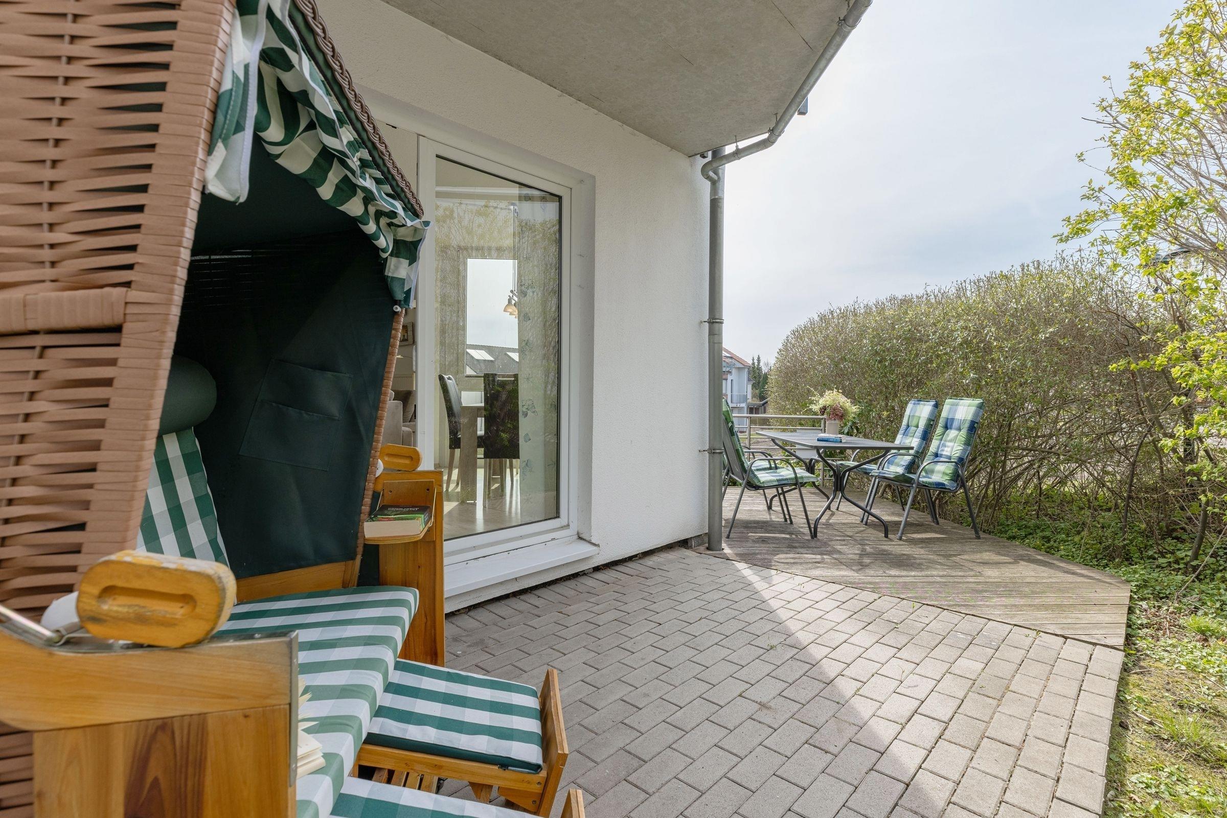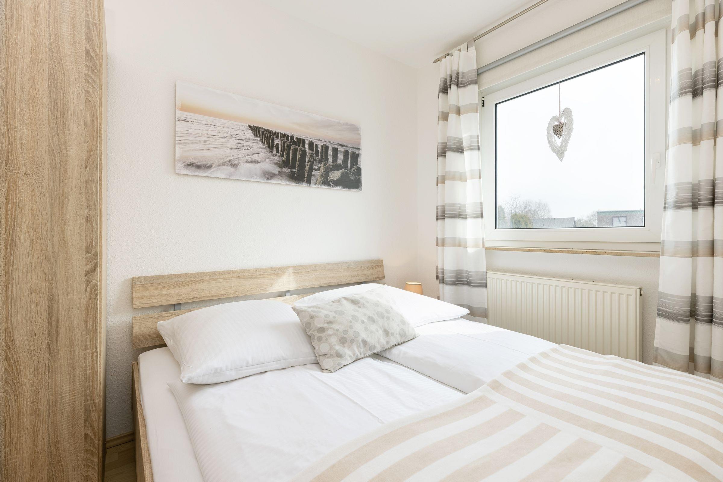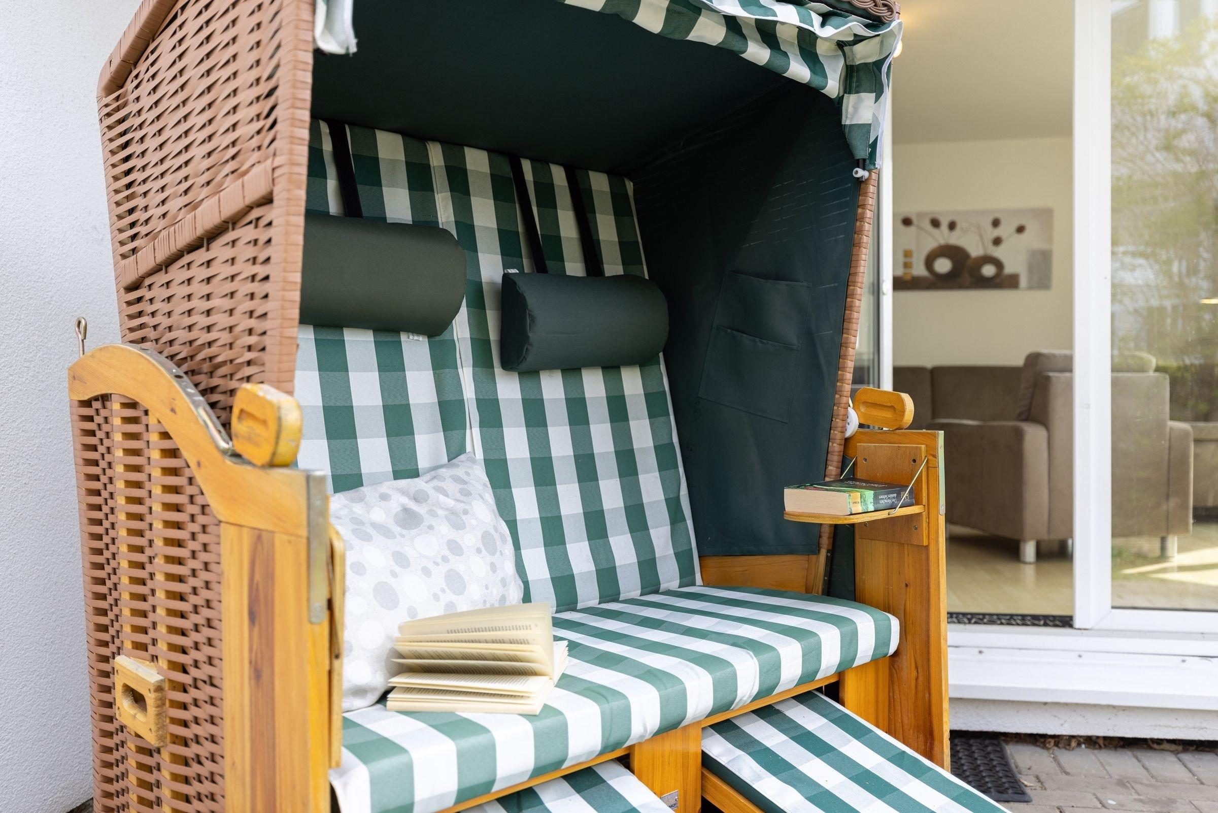 Vom kombinierten Wohn- und Essraum mit Erker und L-förmiger Küchenzeile gelangen Sie direkt auf die möblierte Terrasse mit eigenem Strandkorb. Die Ferienwohnung bietet ein Wohnzimmer, zwei Schlafzimmer (mit je einem Doppelbett á 2x 80x200cm), ein Badezimmer mit Dusche und WC sowie einen Abstellraum. Ein zweiter Fernseher steht Ihnen in einem der Schlafzimmer zur Verfügung. Für einen entspannten Schlaf sind die Schlafzimmer mit Fliegengittern ausgestattet.