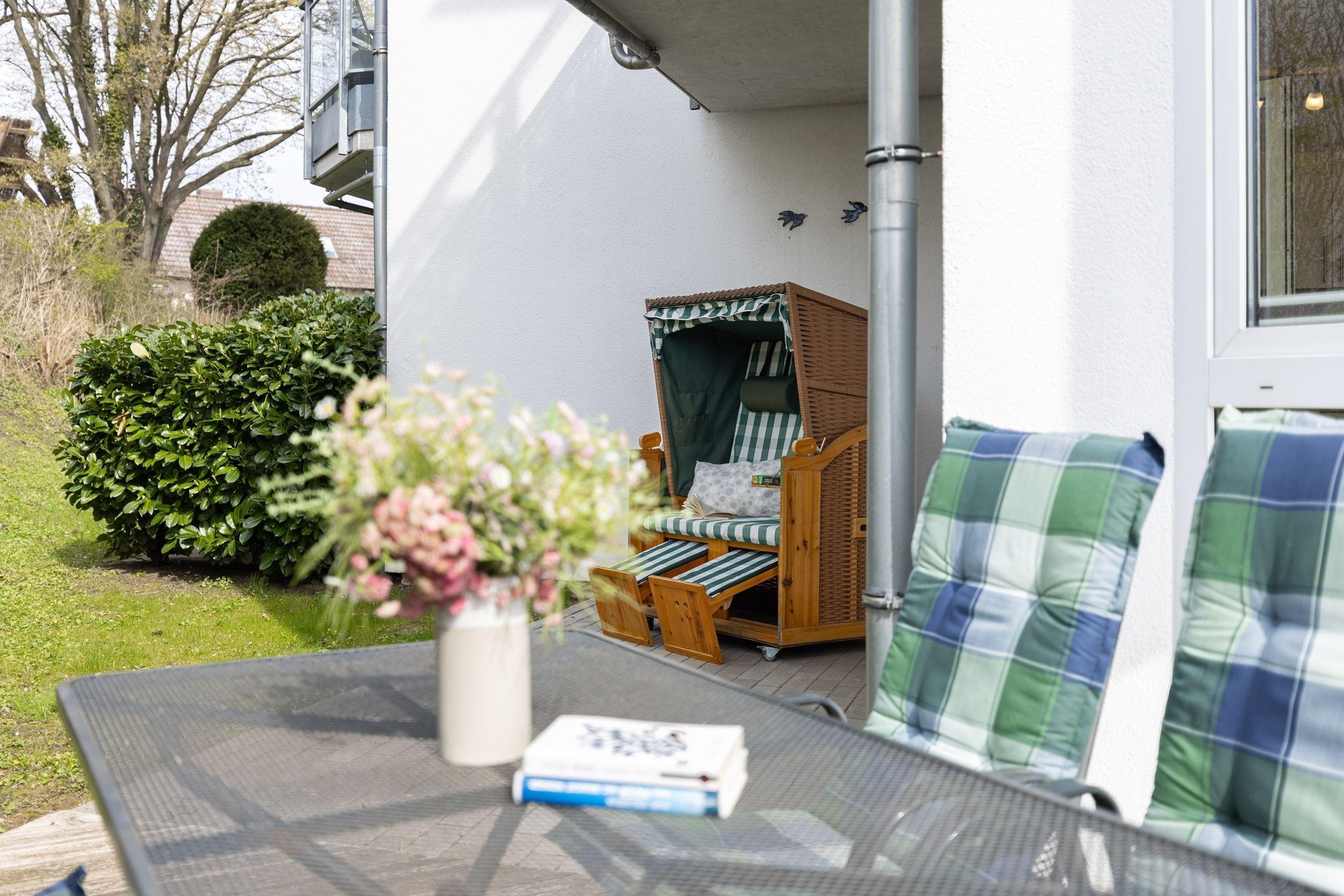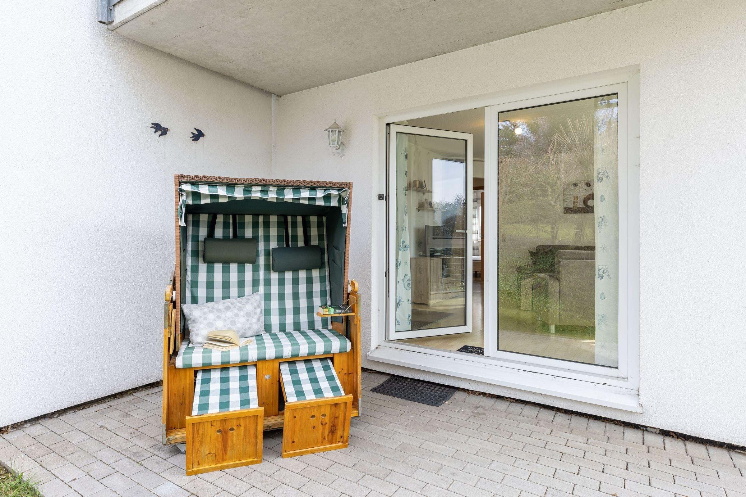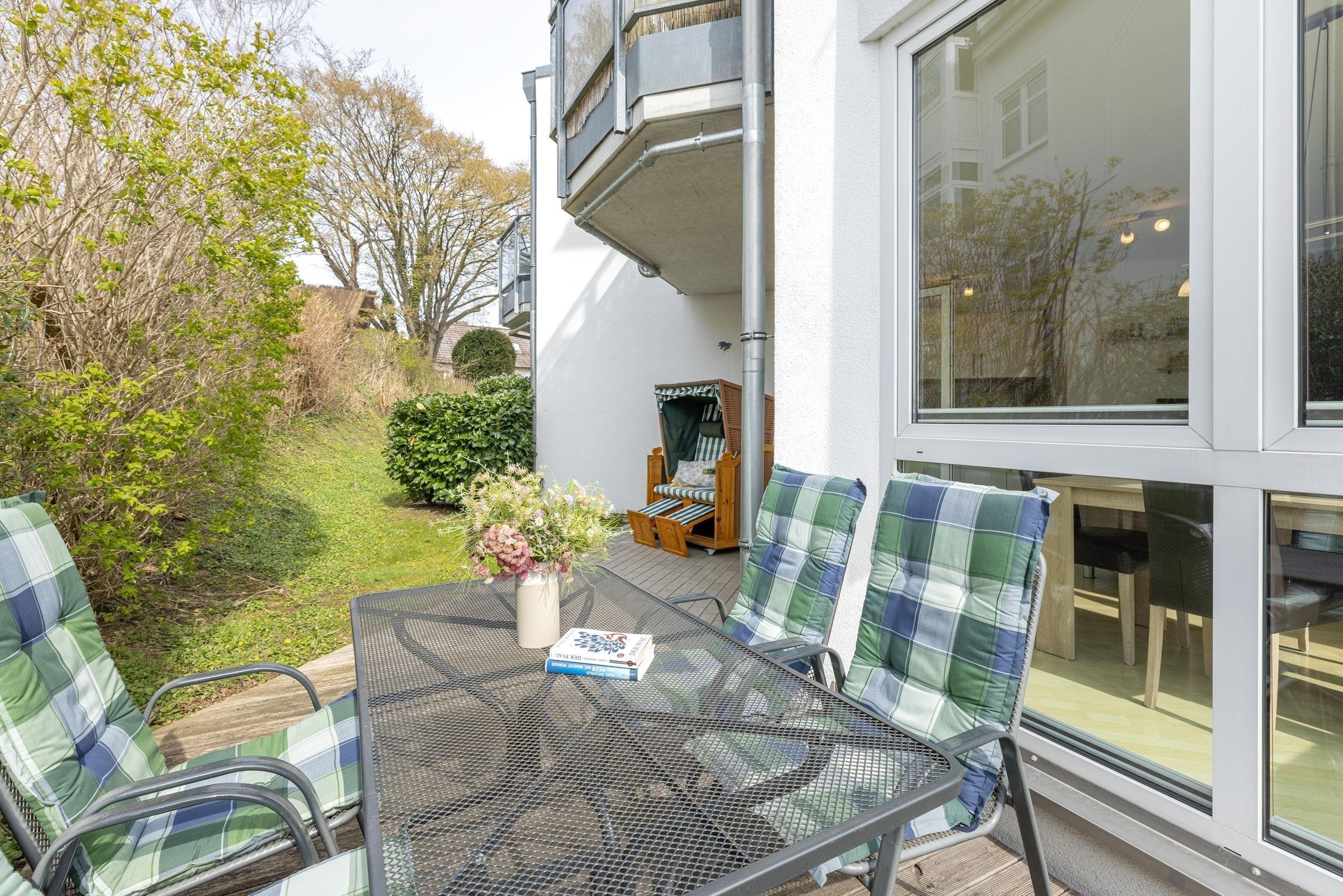 Vom kombinierten Wohn- und Essraum mit Erker und L-förmiger Küchenzeile gelangen Sie direkt auf die möblierte Terrasse mit eigenem Strandkorb. Die Ferienwohnung bietet ein Wohnzimmer, zwei Schlafzimmer (mit je einem Doppelbett á 2x 80x200cm), ein Badezimmer mit Dusche und WC sowie einen Abstellraum. Ein zweiter Fernseher steht Ihnen in einem der Schlafzimmer zur Verfügung. Für einen entspannten Schlaf sind die Schlafzimmer mit Fliegengittern ausgestattet.