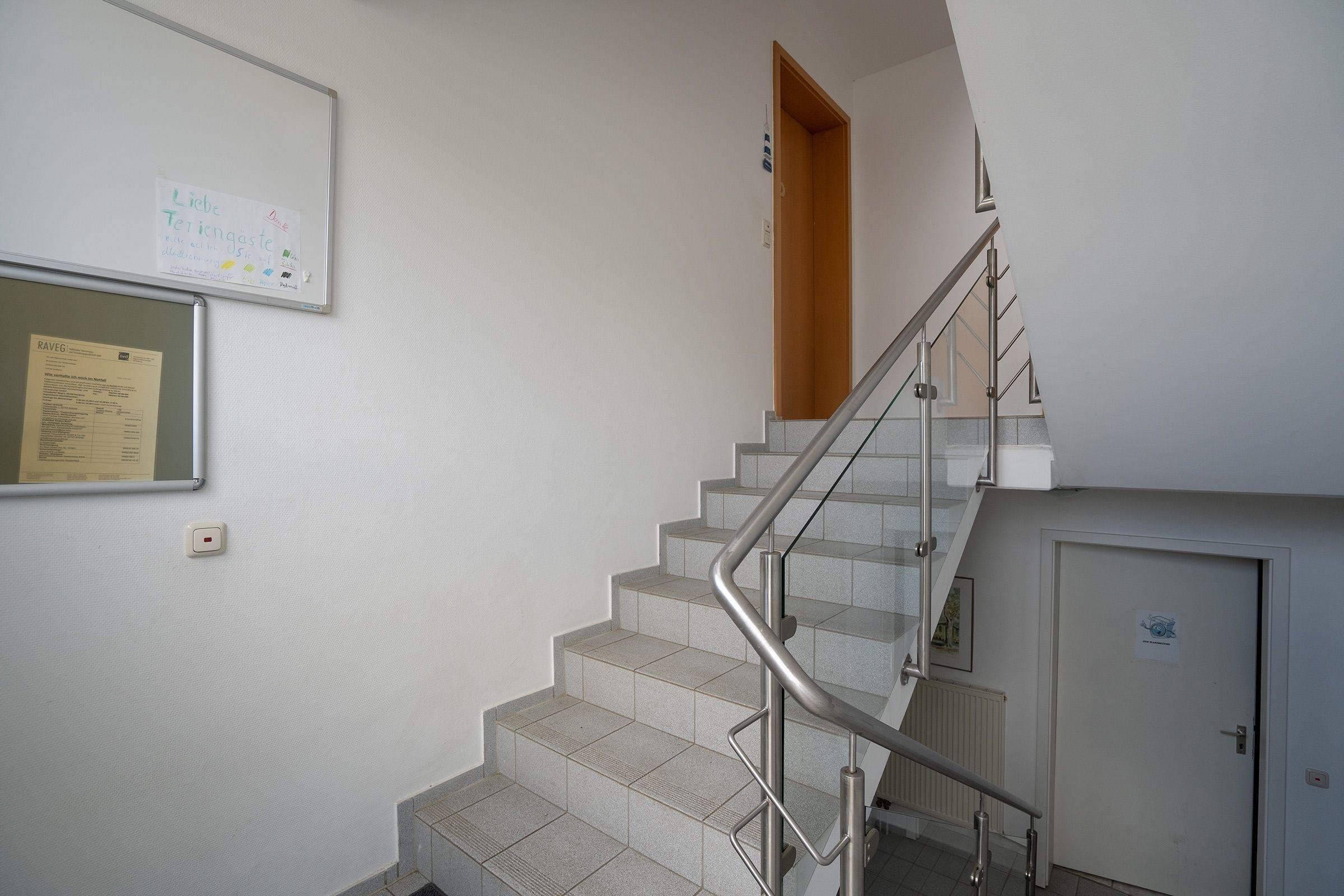 Ein PKW-Außenstellplatz direkt vor der Haustür ist für Sie reserviert. Für mitgebrachte Fahrräder ist ein gemeinschaftlicher Fahrradkeller vorgesehen. Wichtig: Der Fahrradkeller kann nur über eine Treppe (10 Stufen) erreicht werden. Im Keller befindet sich auch ein Gemeinschaftswaschraum mit Waschmaschine und Trockner.