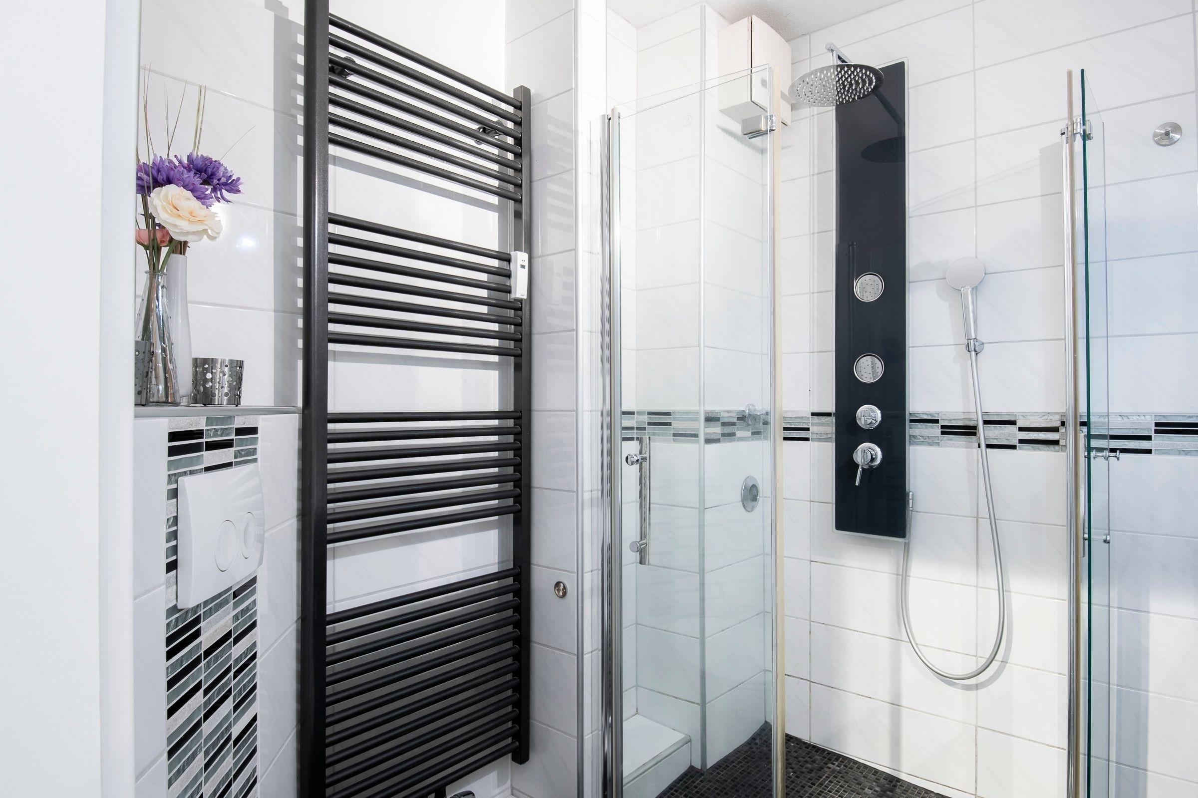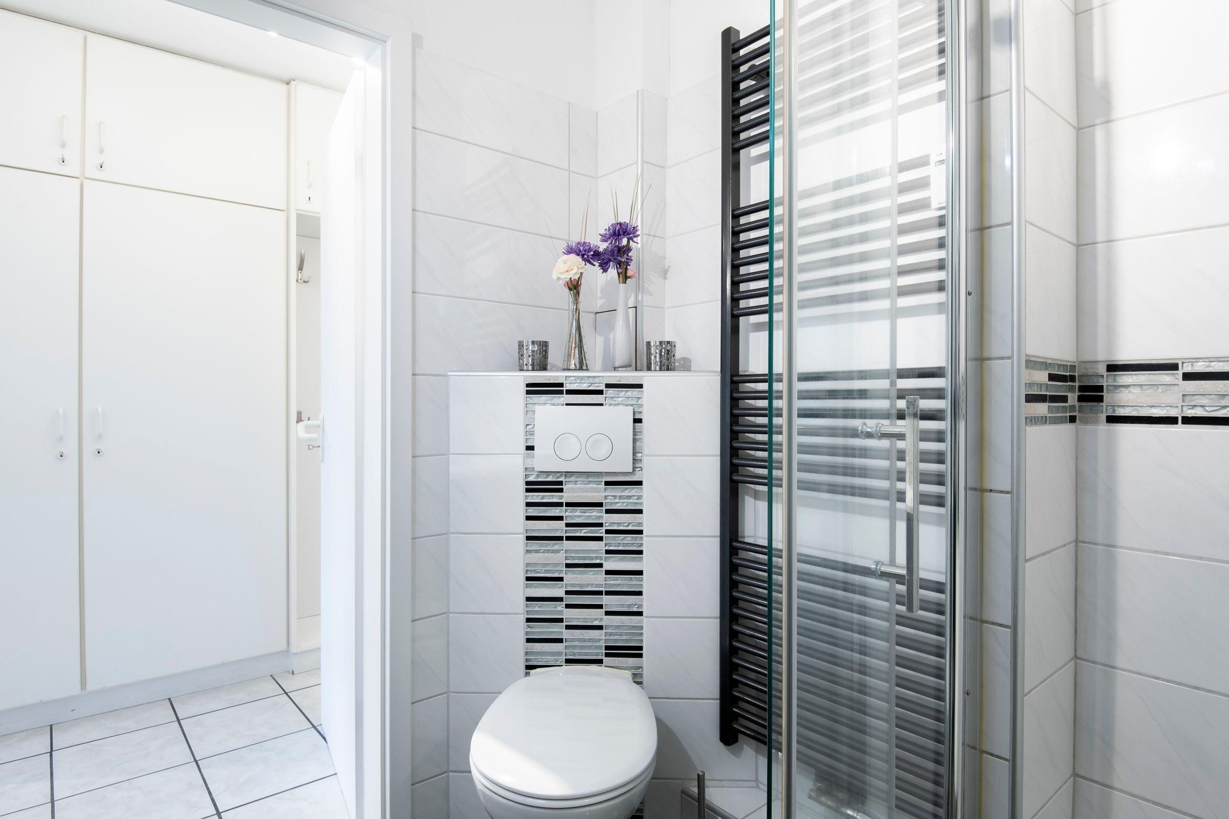 Das Duschbad ist komplett gefliest und mit einem erhöhtem Eck-WC, einer Handtuch-Rippenheizung und einer 90x90 cm Wellnessdusche, mobile Haltegriffe und Duschhocker ausgestattet. Die neue Einbauküche verfügt über alle Annehmlichkeiten, die man im Urlaub benötigt. Über ein Ceranfeld, Backofen, Wasserkocher, Kaffeemaschine, Toaster, Gefrierkombination und einem Geschirrspüler, viele hochwertige Markengeräte - es ist alles vorhanden.