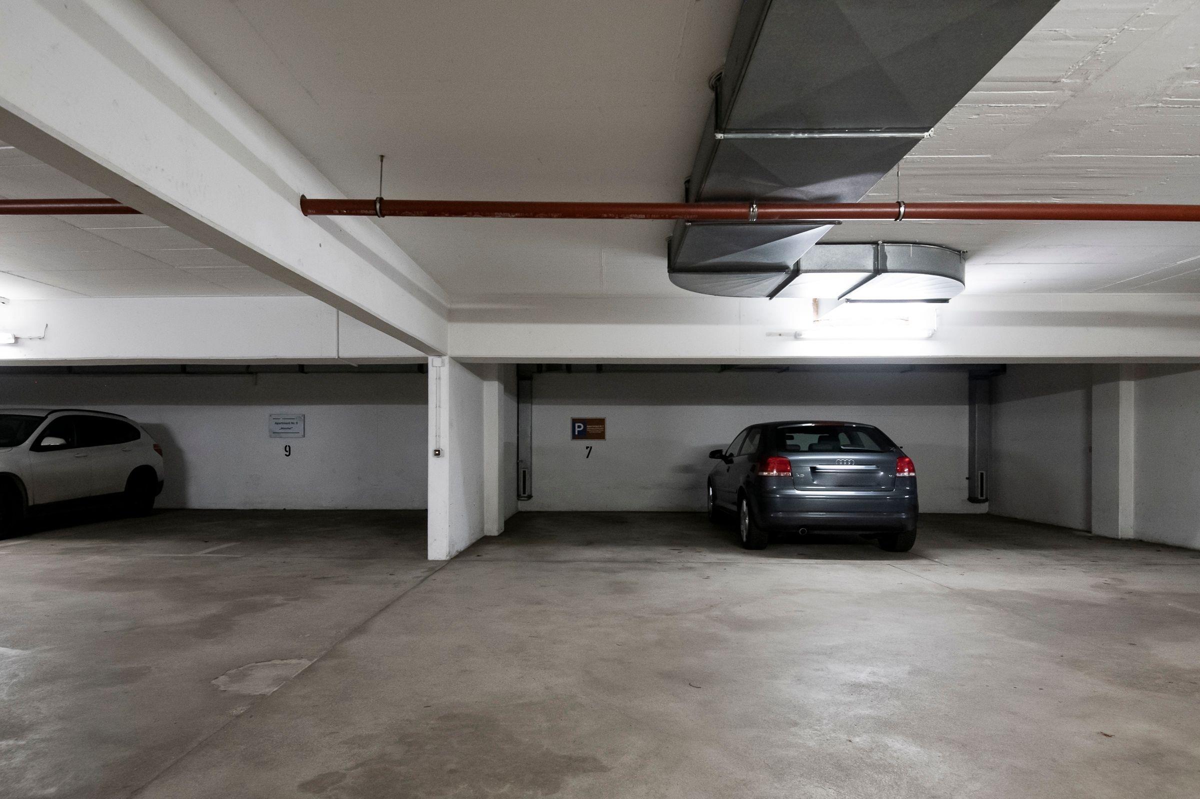 Zur Wohnung gehört ein PKW-Tiefgaragenstellplatz, von dem aus man bequem mit dem Fahrstuhl in das 1. OG gelangt. Zur allgemeinen Benutzung stehen Ihnen im Keller der Wohnanlage ein Fahrradkeller sowie eine Waschmaschine und ein Trockner gegen Gebühr zur Verfügung.