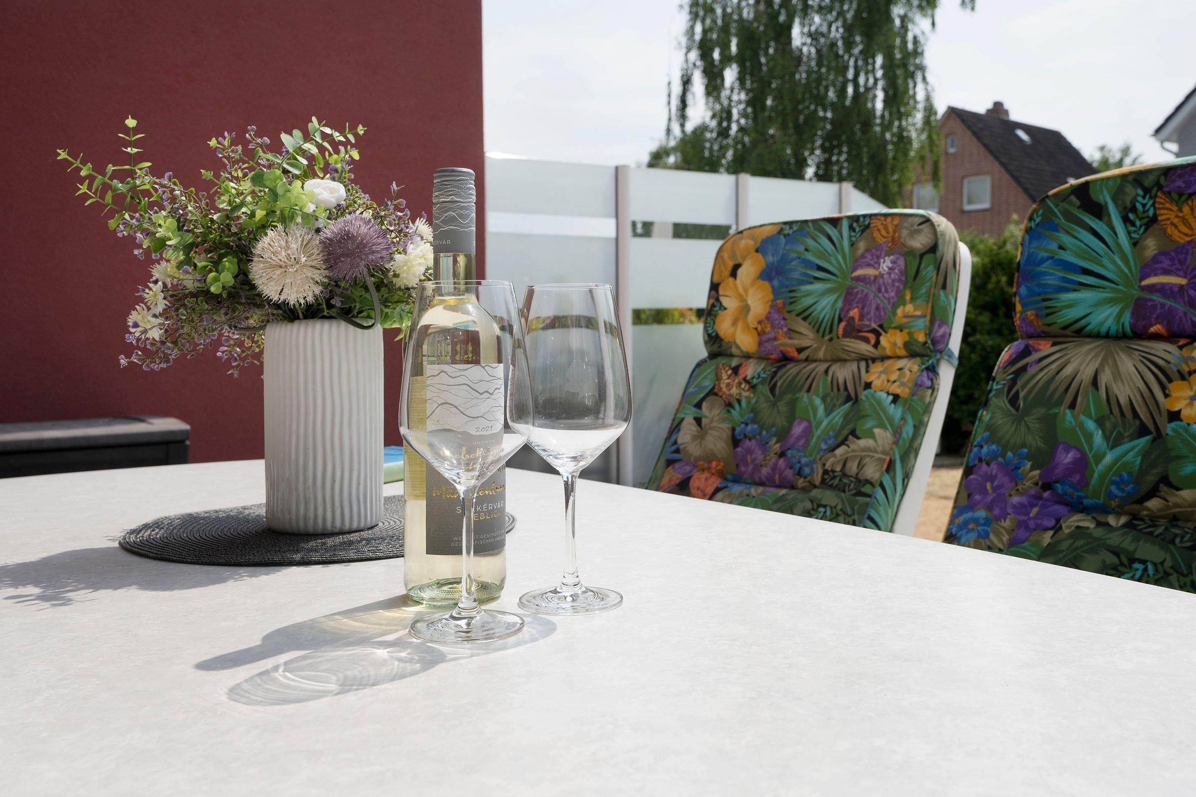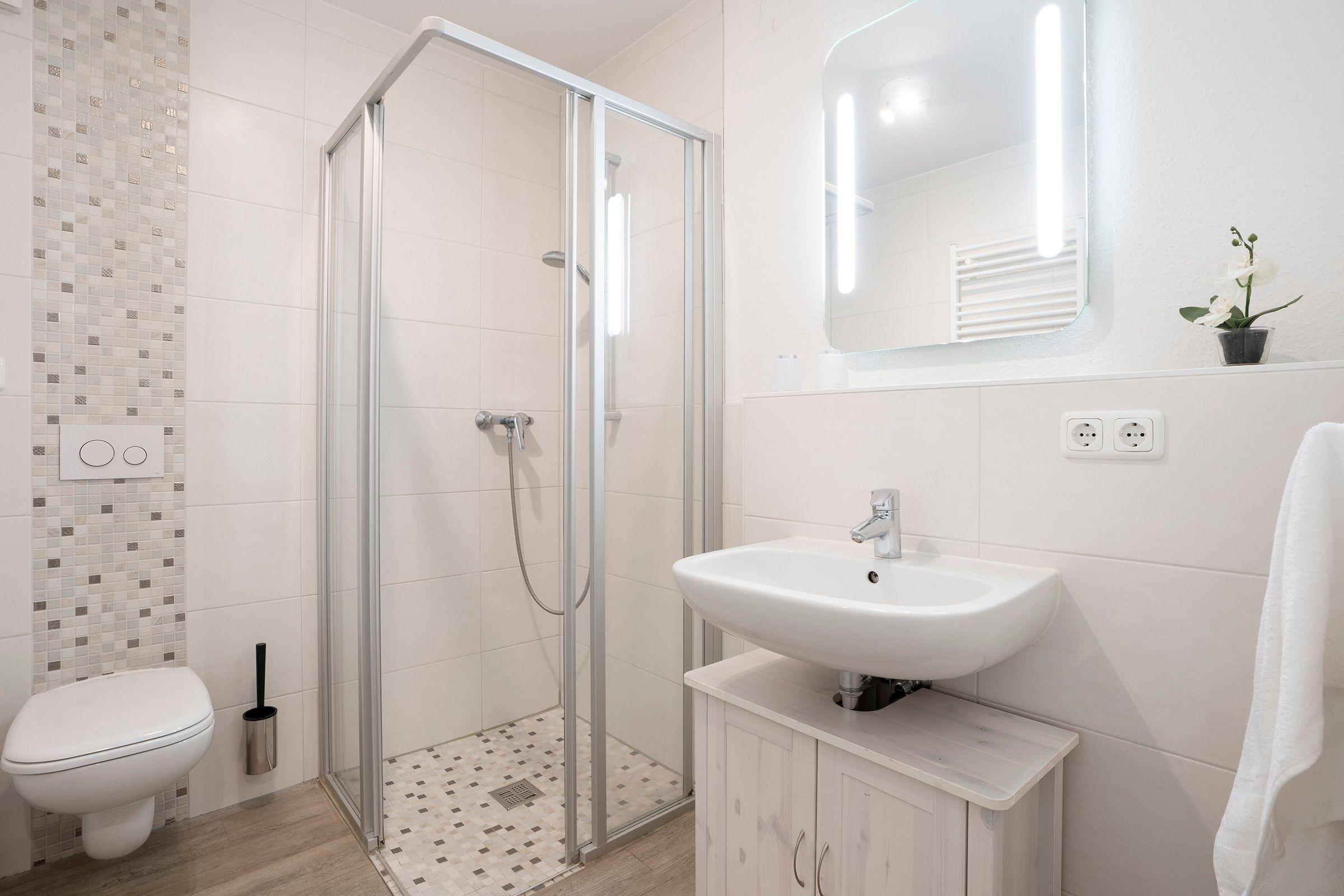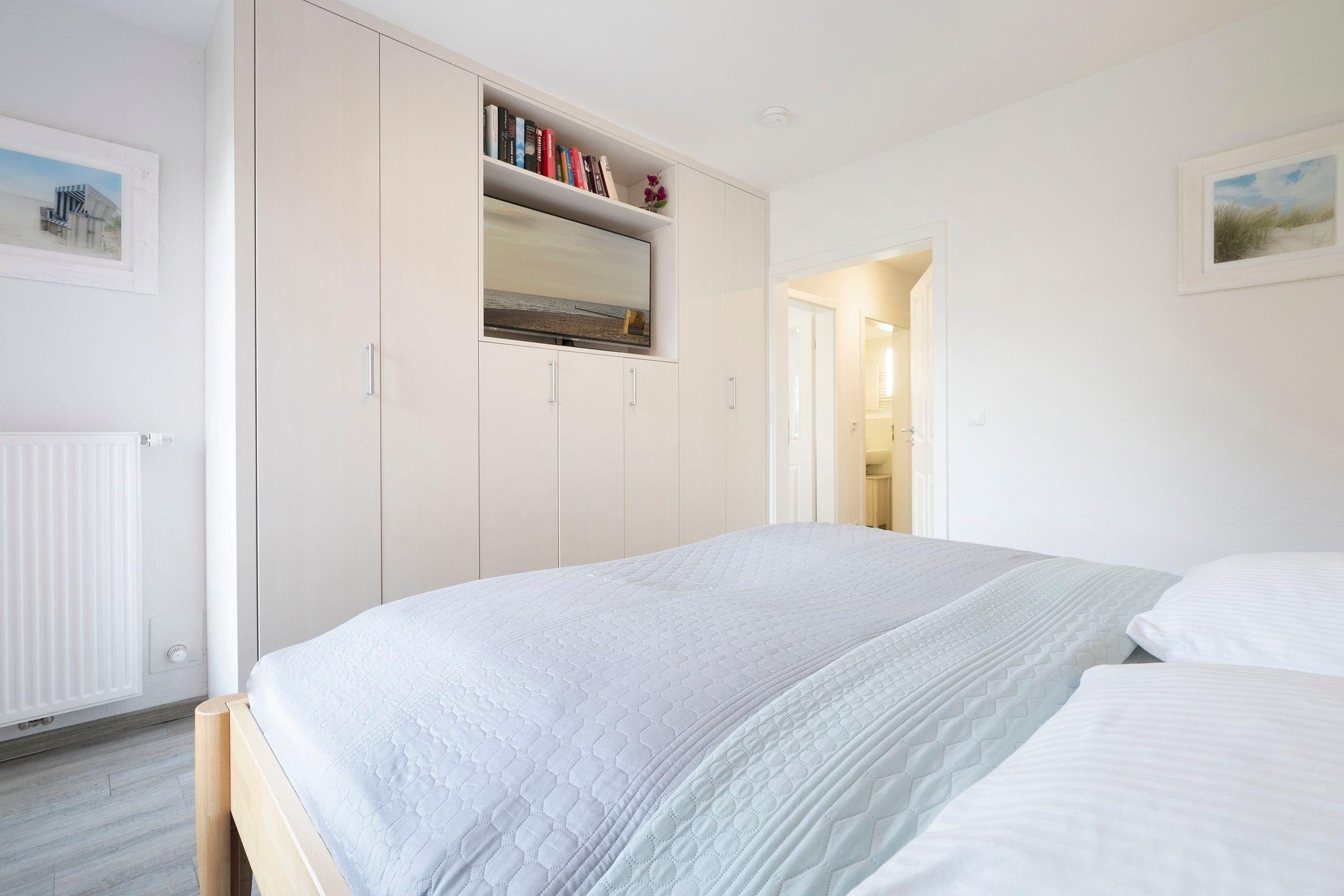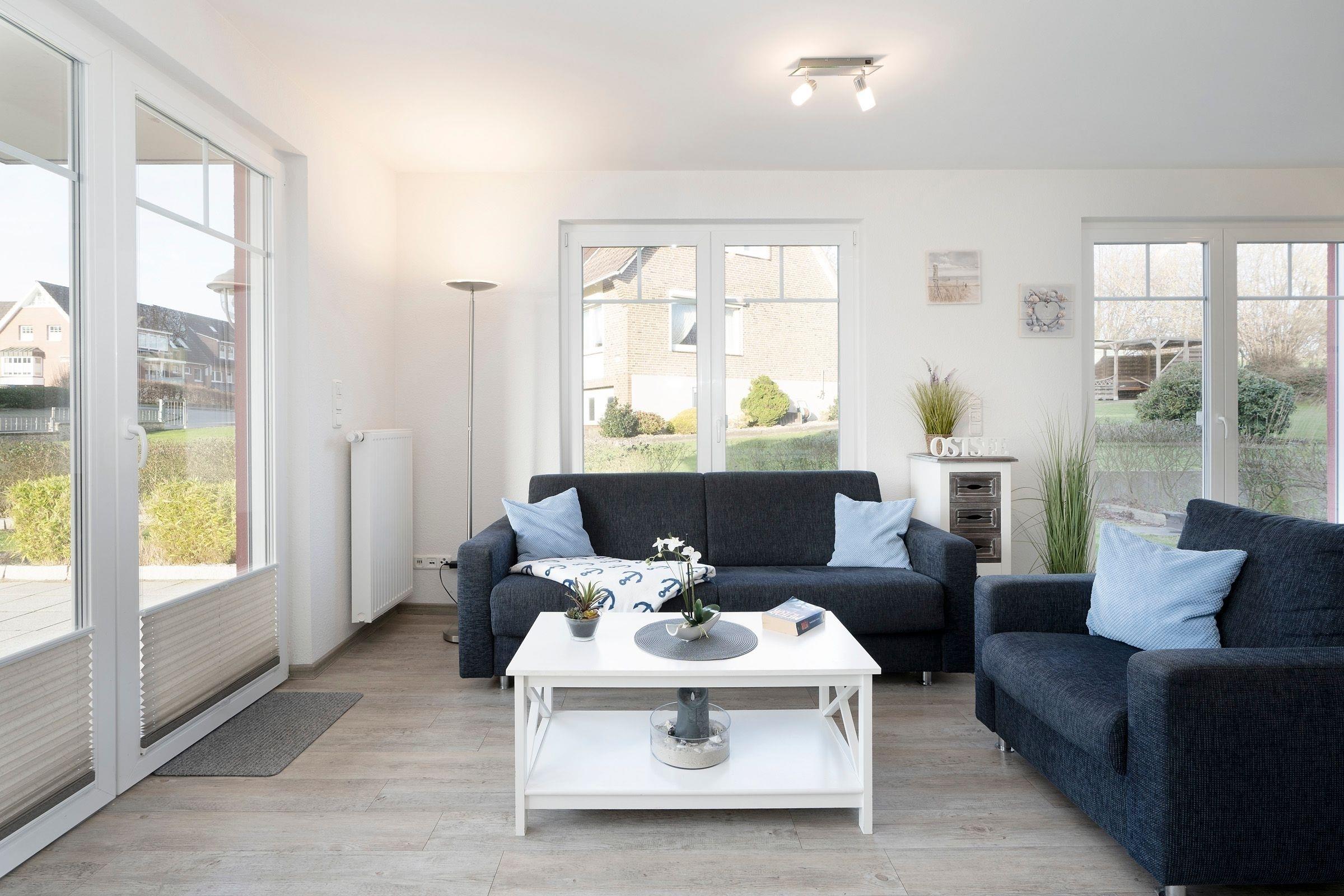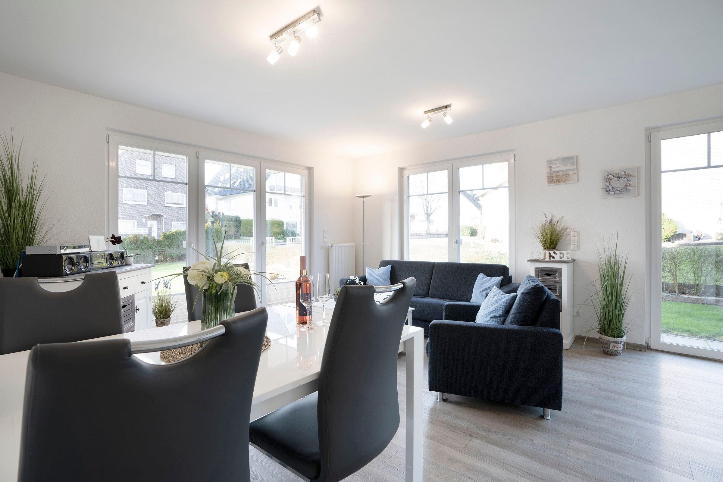 Ihre 2-Zimmer-Ferienwohnung erwartet Sie mit einem modernen, ruhigen Schlafzimmer, das mit einem großen Doppelbett (2x 100x200 cm) und einem Flat-TV ausgestattet ist. Das Wohnzimmer mit zusätzlicher Schlafcouch (160x190 cm) und dem großen 55 Zoll Fernseher sowie die Küche mit 4-Platten Ceranfeld, Spülmaschine und diversen Extras lassen ebenso keine Wünsche offen wie das ansprechende Bad mit ebenerdiger Dusche und Radio. Die großzügige, ca 40 m² große Terrasse ist mit hochwertigen Gartenmöbeln inkl. Liege ausgestattet. In der kompletten Wohnung sorgt eine Fußbodenheizung für wohlige Wärme.