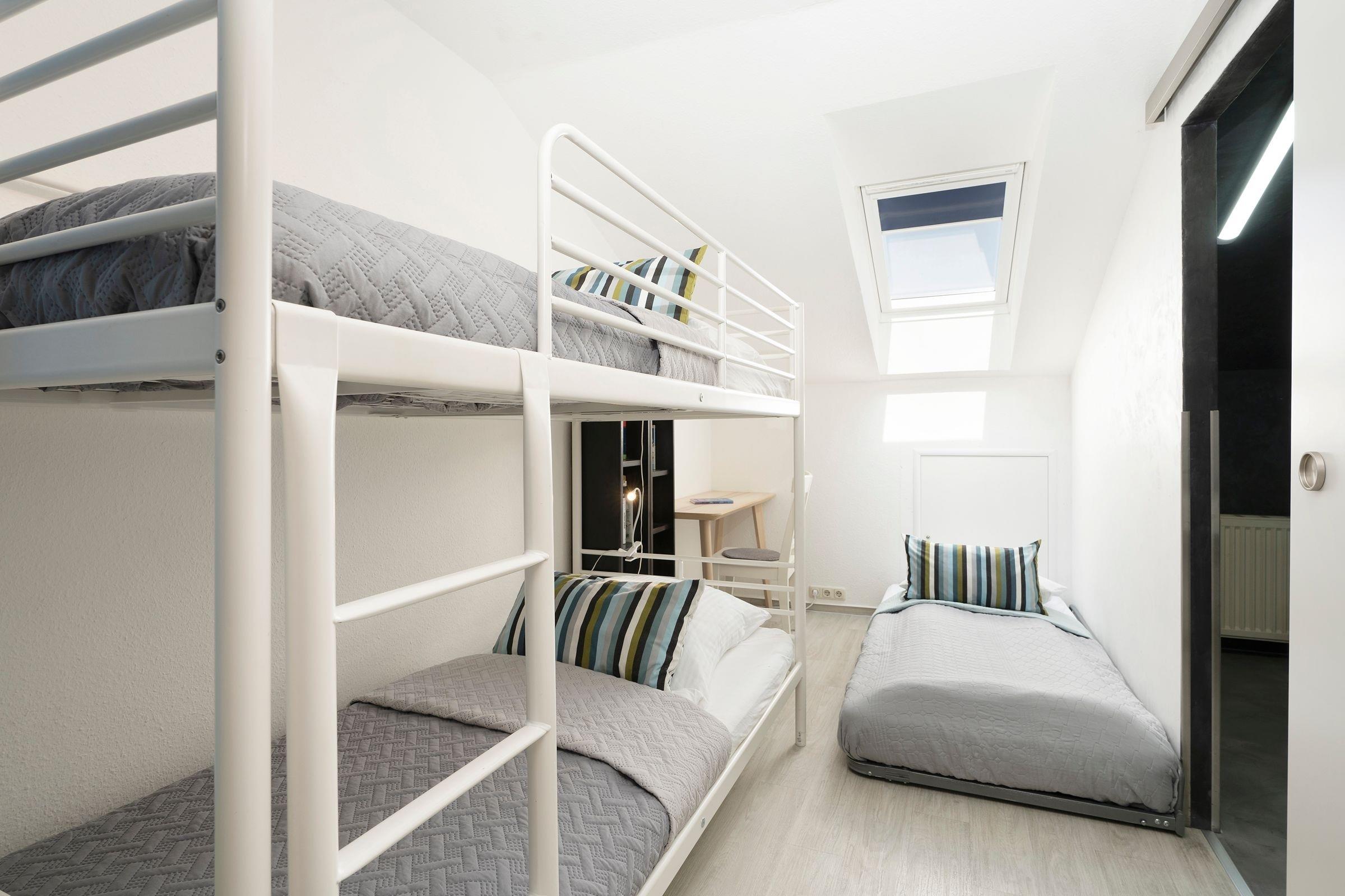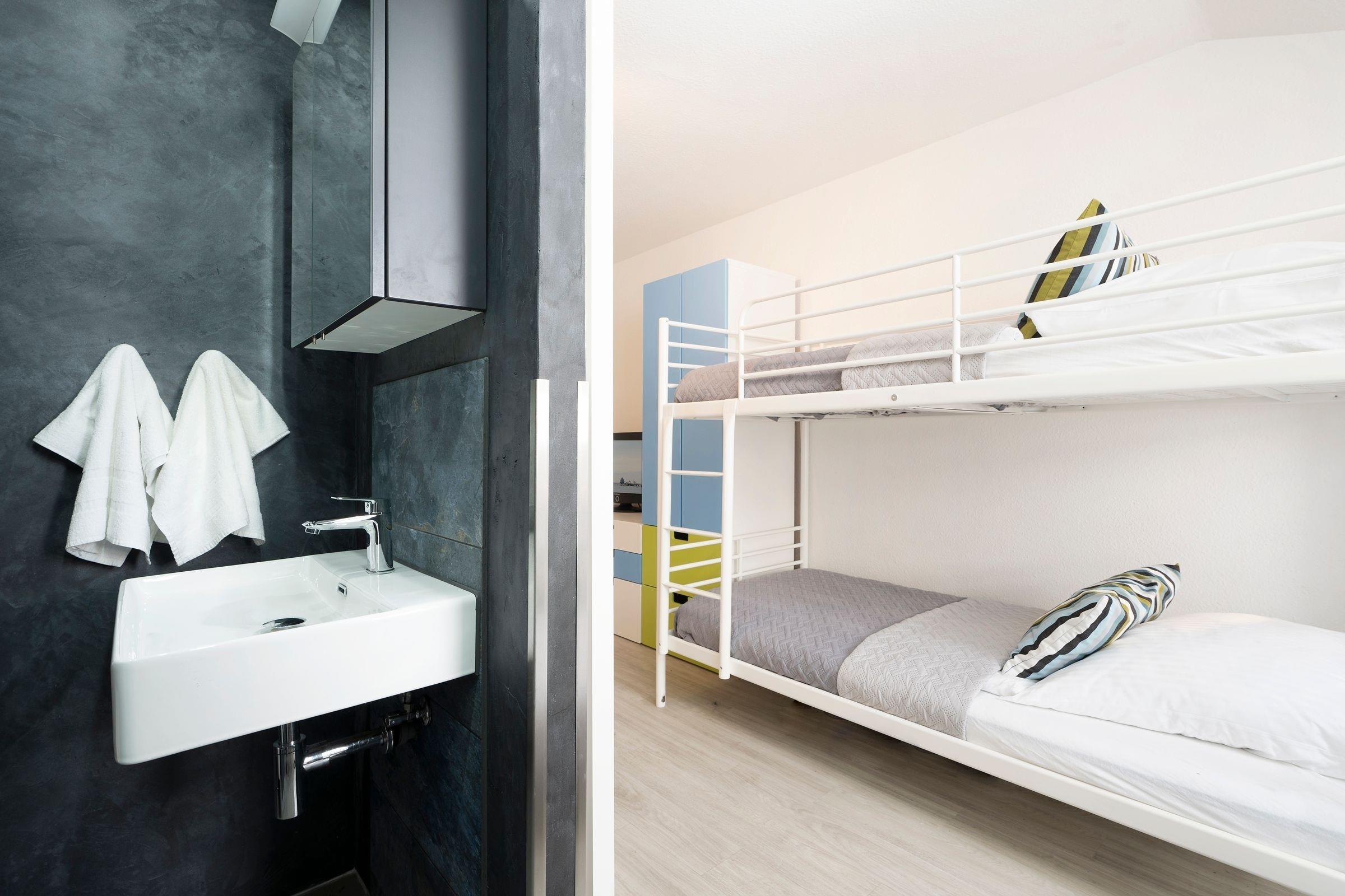 Schlafzimmer 2: 1 Etagenbett (2x 90x195 cm), mit unten ausziehbarem Bett (1x 90x195 cm)