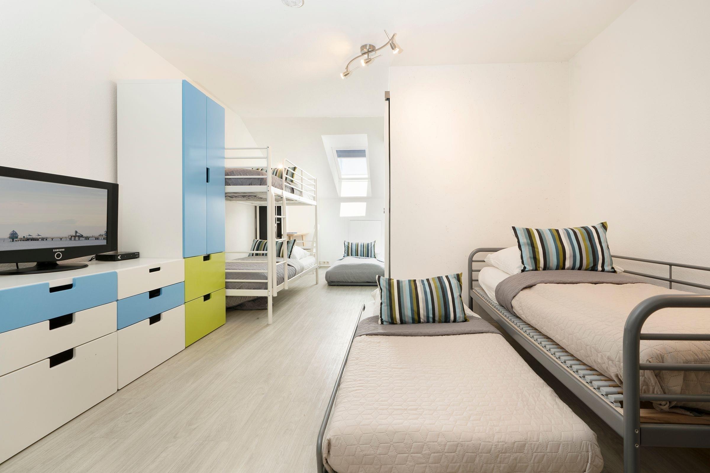 2.OG: Über eine Treppe erreichen Sie ein herrlich geräumiges Kinder-, Spiel-, oder Schlafzimmer mit Schlafmöglichkeiten für bis zu 5 Personen (90x195 cm), sowie einem zweiten Flachbildfernseher. Auf dieser Etage steht ein weiteres Vollbad zur Verfügung. Herzlich Willkommen - jetzt beginnt Ihr Urlaub!