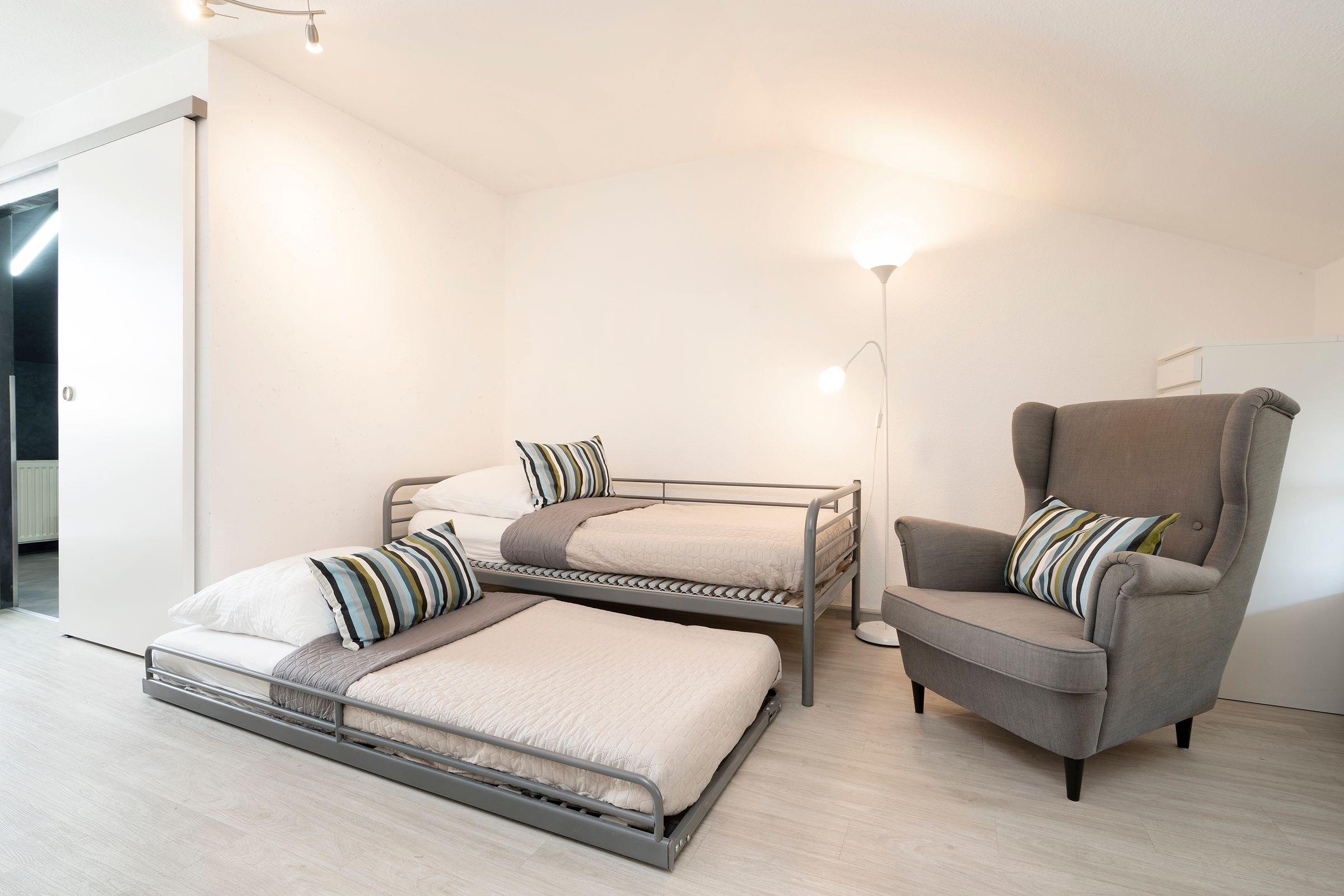 1 Einzelbett mit extra ausziehbaren Bett (2x 90x195 cm), Kleiderschrank, TV