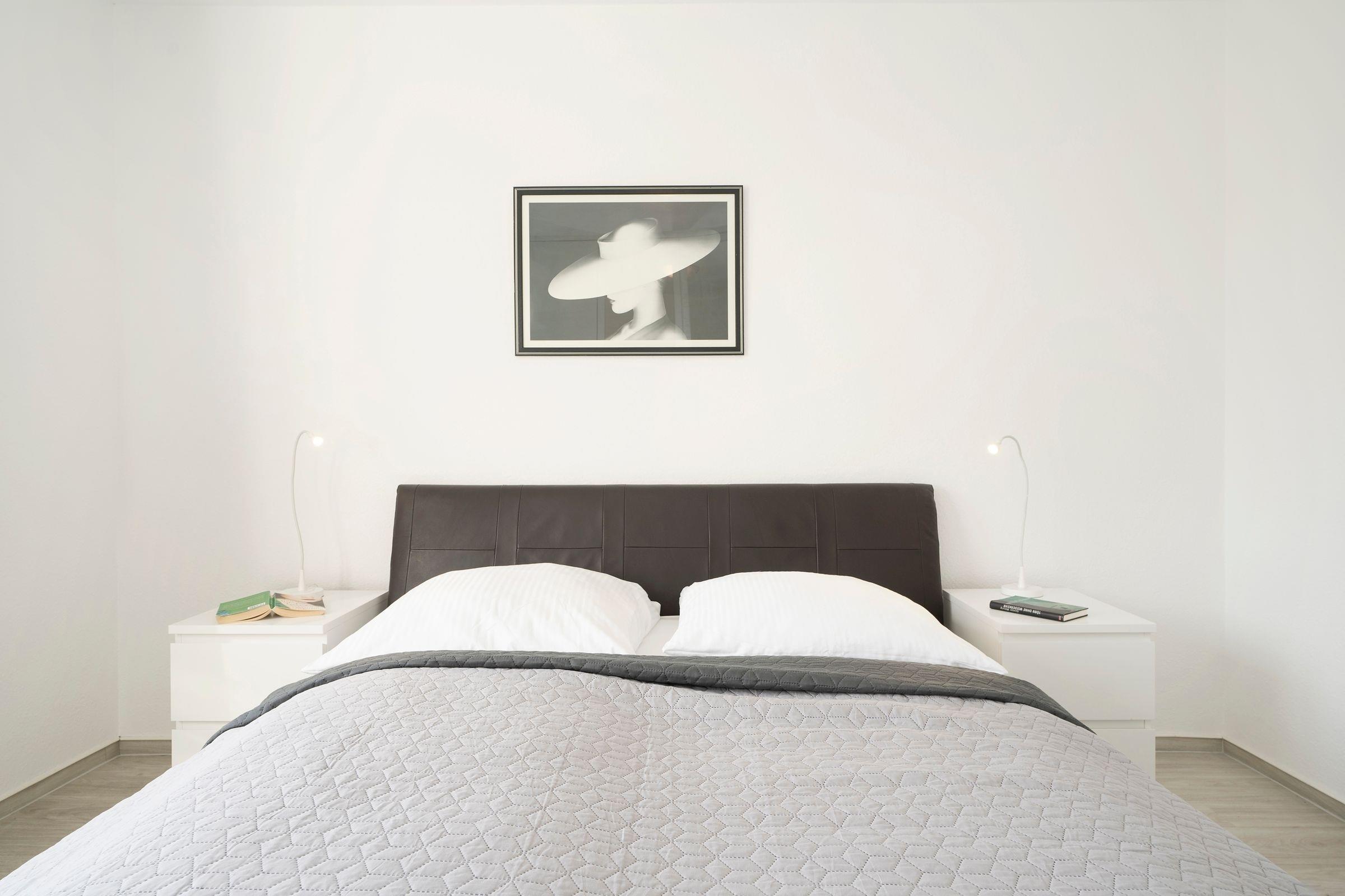Schlafzimmer 1: 1 Doppelbett (160cmx200 cm), Kleiderschrank