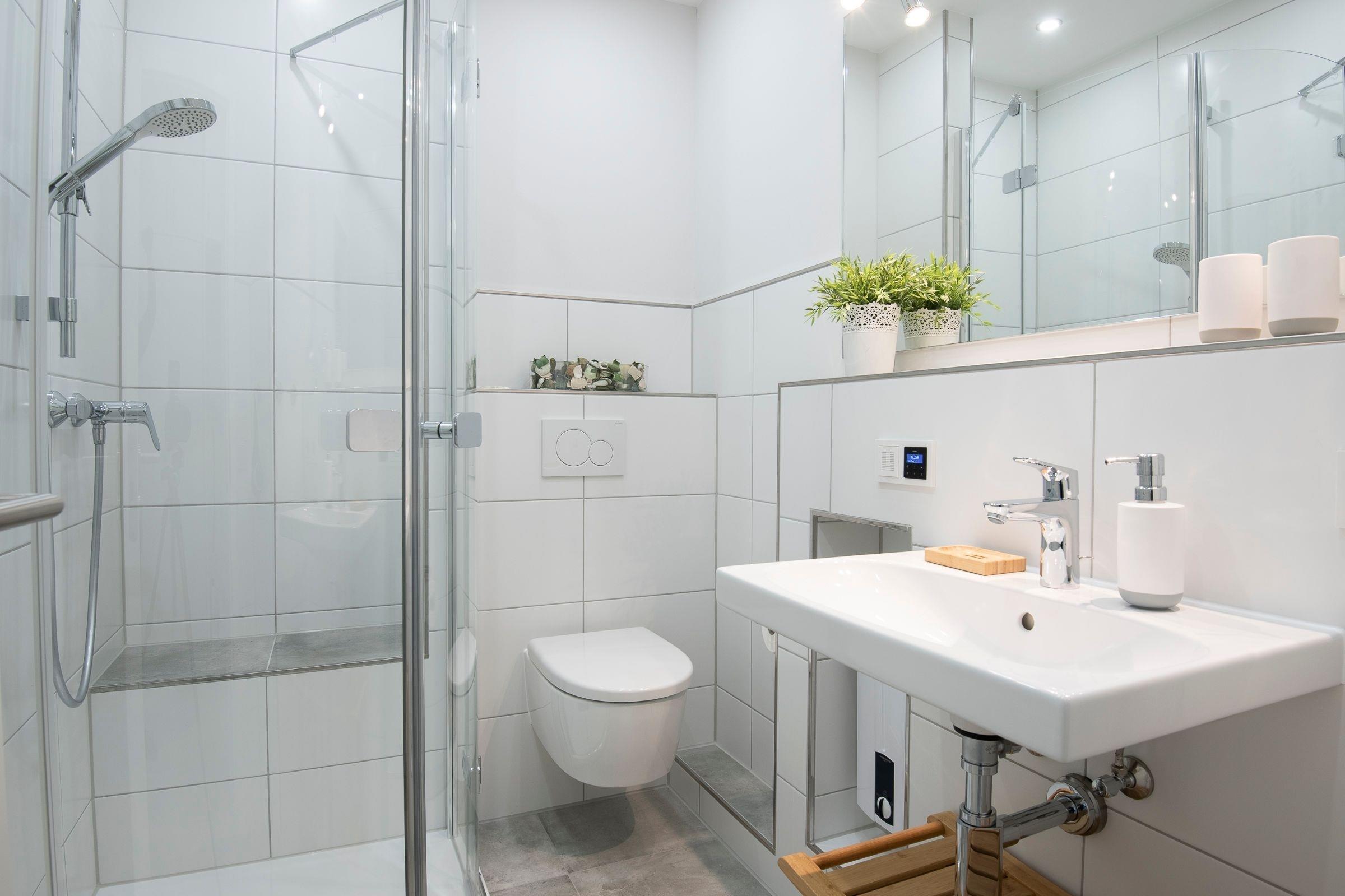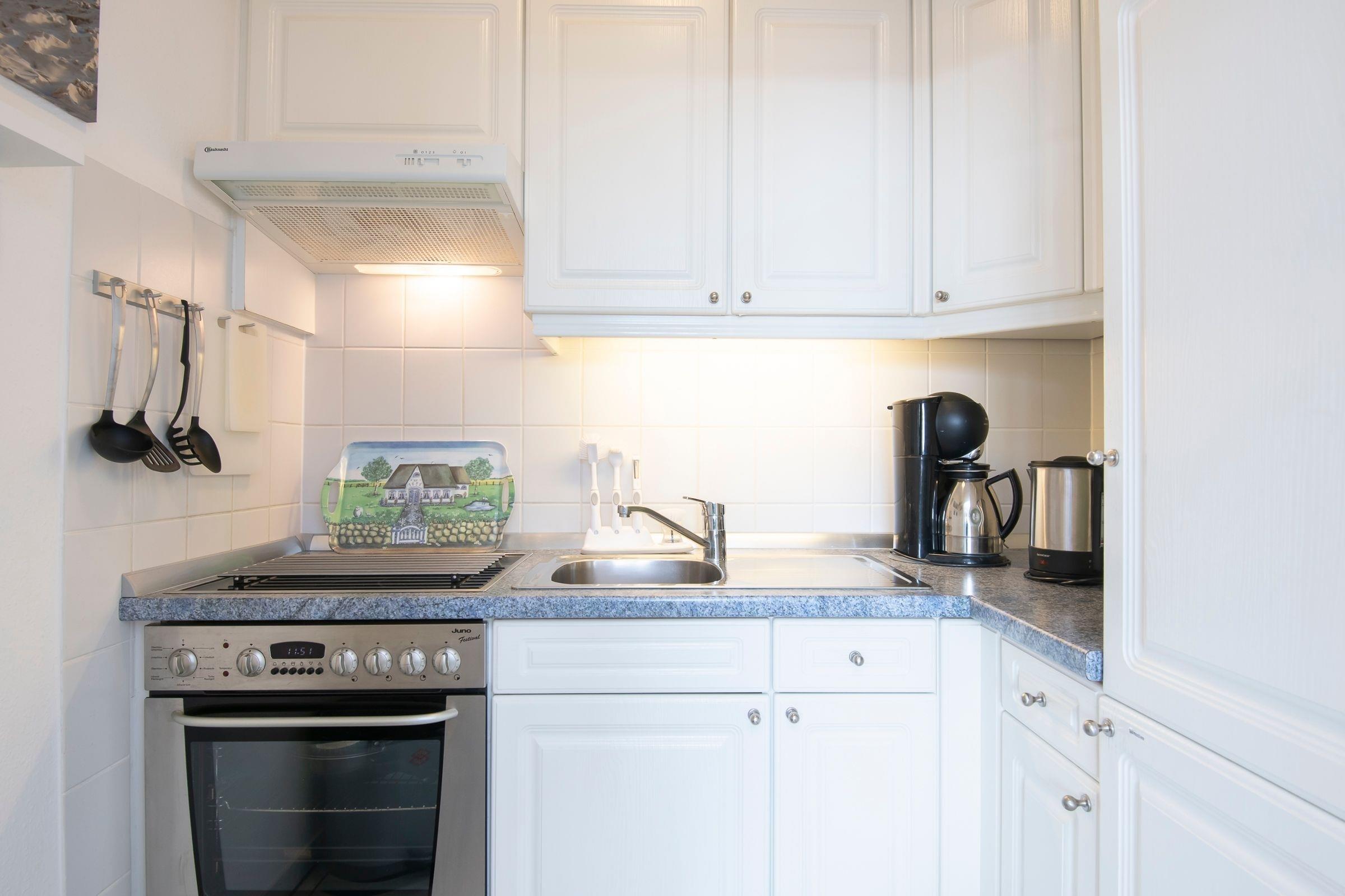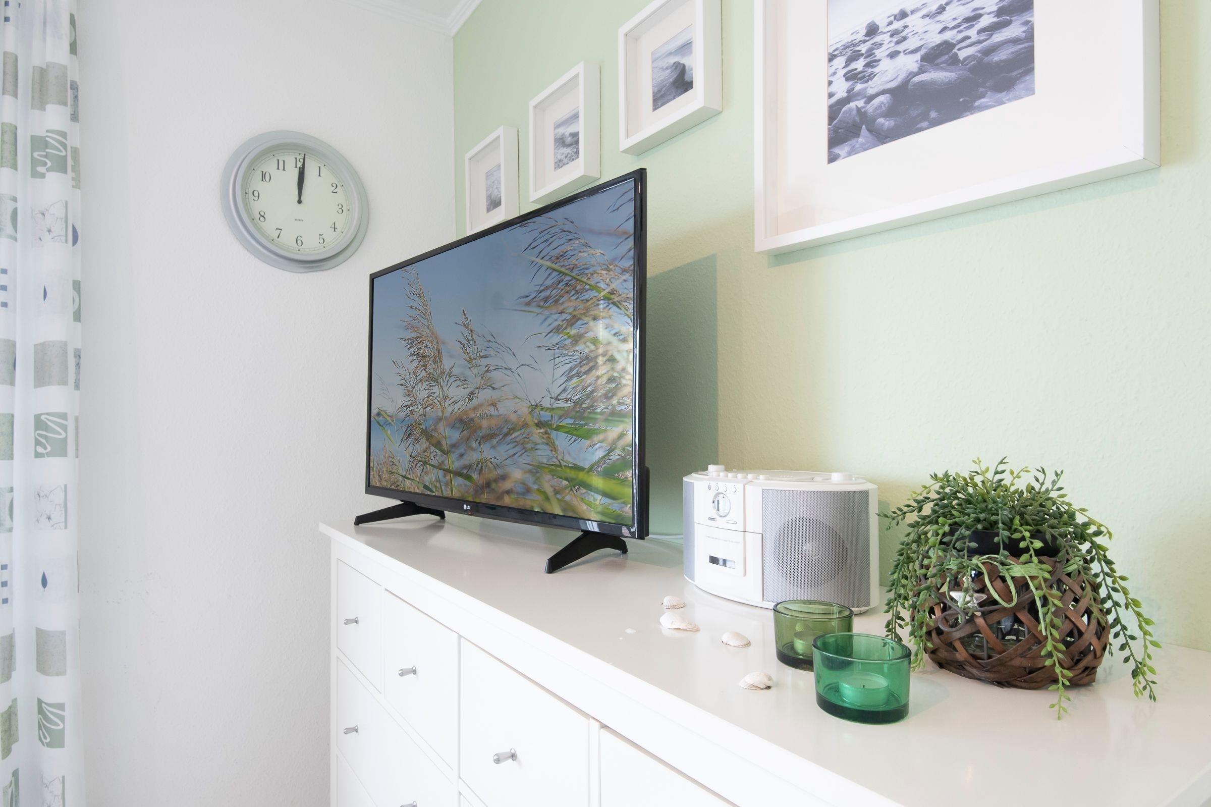 Mit dem Fahrstuhl gelangen Sie bequem in die 2. Etage und erreichen Ihr Urlaubsdomizil. Der Flur führt Sie geradeaus in den Wohn- und Essbereich mit Zugang zum möblierten Balkon. Im Wohnbereich befinden sich eine gemütliche Schlafcouch sowie ein Flachbildfernseher. Ein Esstisch mit ausreichend Platz für 4 Personen ist ebenfalls vorhanden. Die kleine Küche befindet sich in einem Nebenraum zum Wohnbereich und ist z. B. mit einem Induktionsherd, einem Kühlschrank und einem Geschirrspüler gut ausgestattet. Das separate Schlafzimmer mit Fenster wurde mit einem komfortablen Doppelbett (2x 80x200 cm) sowie einem Fernseher eingerichtet. Für Verdunklung in der Nacht sorgen Plissees an den Fenstern. Das innenliegende Badezimmer erwartet Sie mit einer bodengleichen Dusche sowie einem beheizbaren Handtuchhalter.