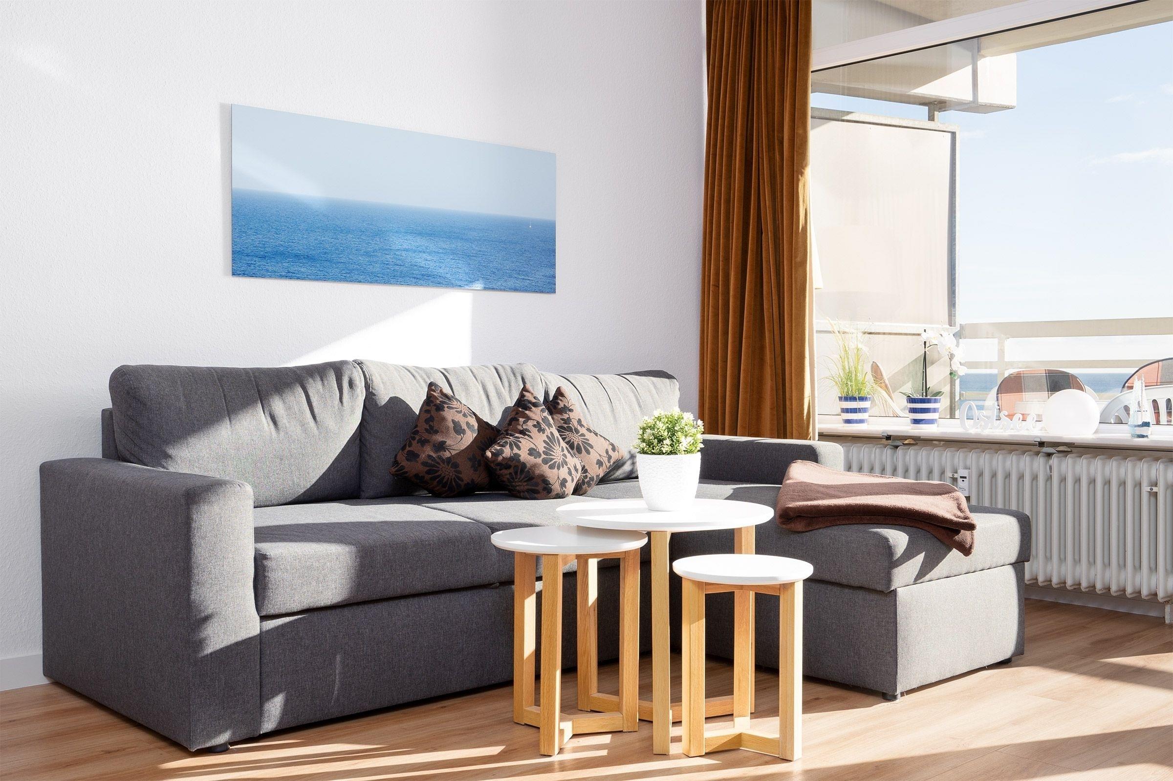 Zur Wohnung gehört ein großer möblierter Balkon, von dem man einen tollen Blick auf die Ostsee und zur Seebrücke hat.