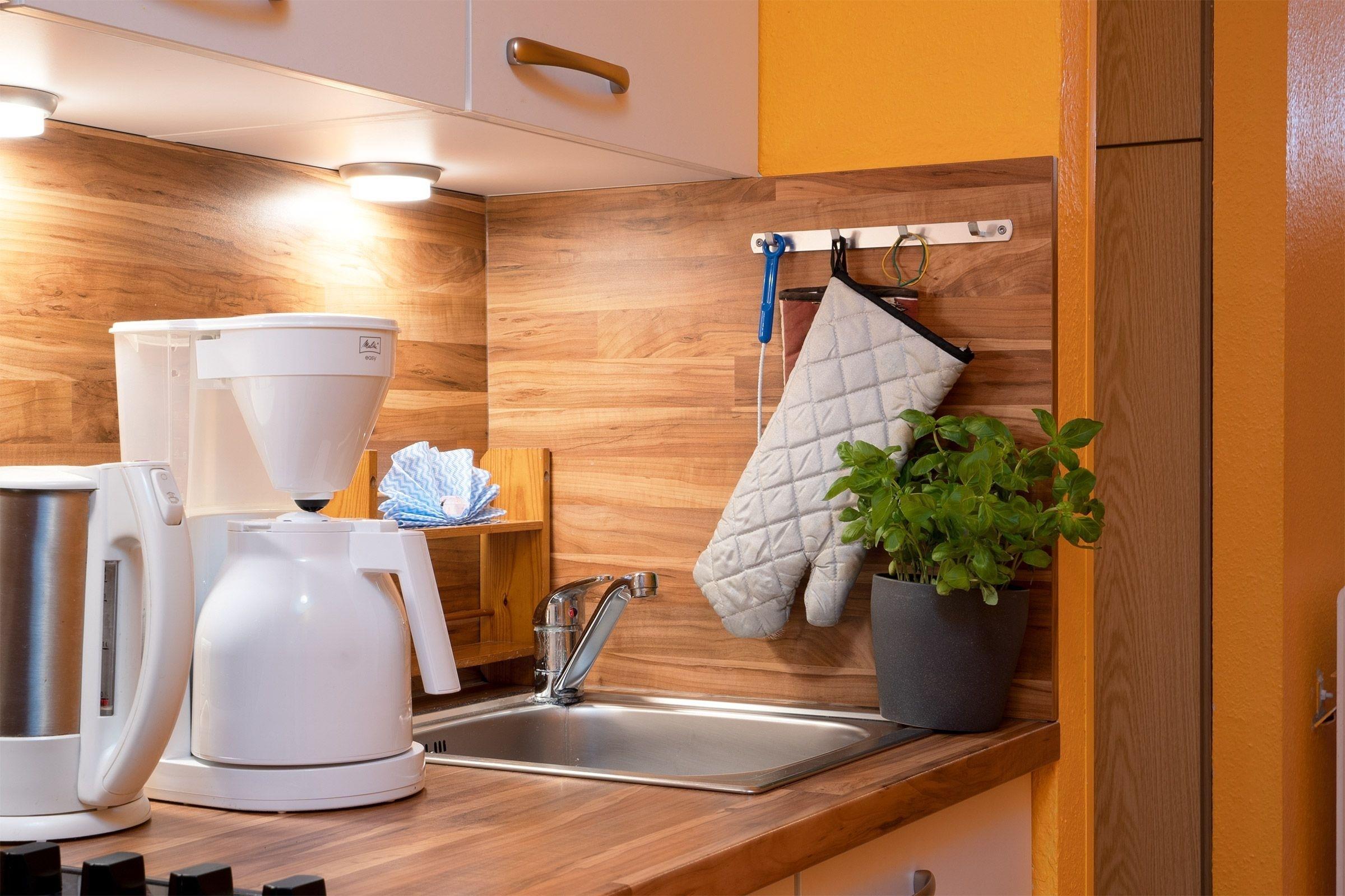 Küchenblock ein Witz, zum kochen kaum geeignet...kein Platz. Toaster und Mikrowelle im Wohnzimmer da kein Platz