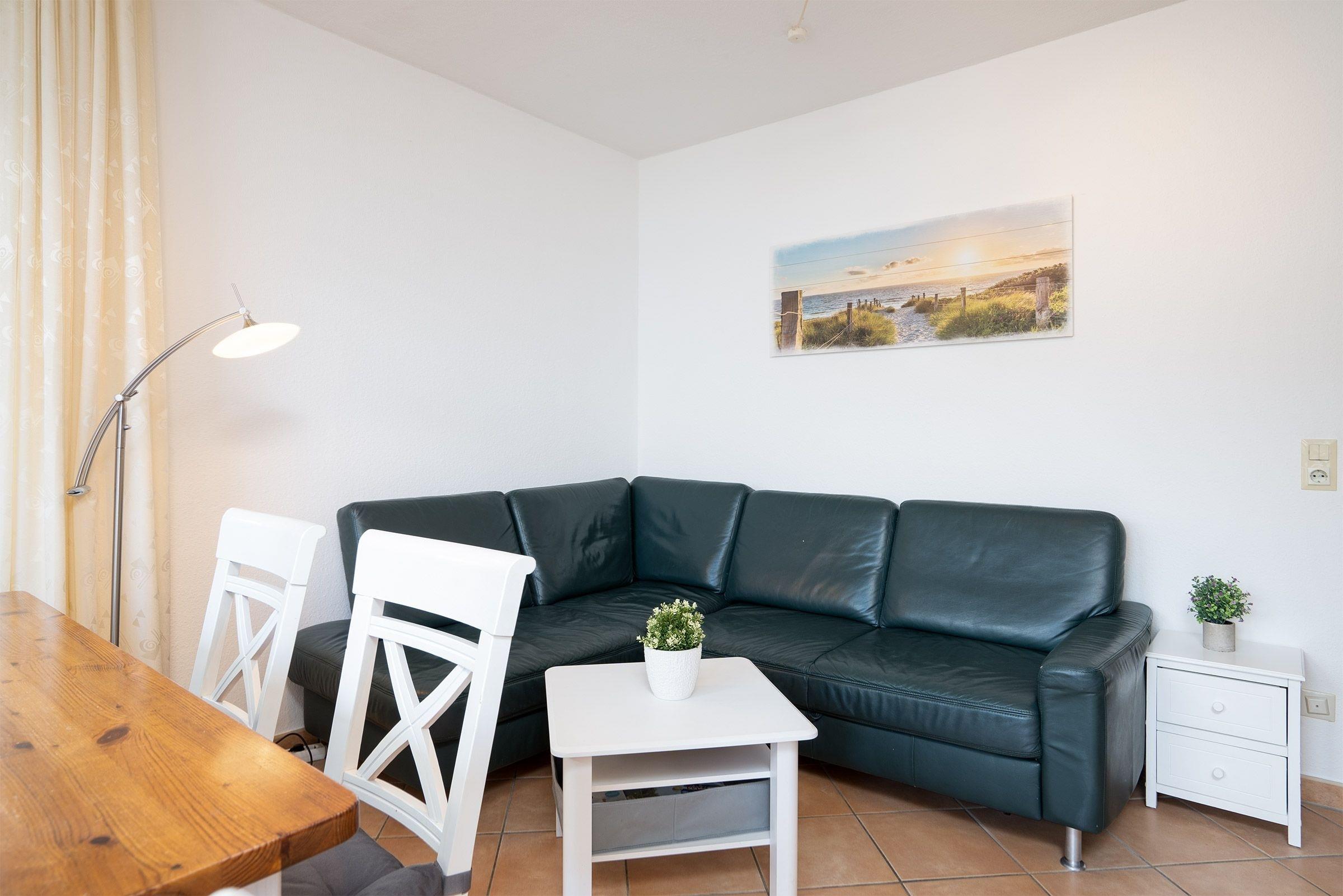 Lassen Sie sich verzaubern von dem grandiosen Meerblick, den Ihnen der möblierte Balkon bietet. Genießen Sie hier Ihre Auszeit bei frischer, gesunder Seeluft. Das geräumige Wohnzimmer verwöhnt Sie mit einer gemütlichen Sofaecke sowie einem Essplatz, ein Flatscreen-TV und ein Radio mit CD-Player sorgen für Unterhaltung. Die gut ausgestattete Küche macht eine Selbstverpflegung leicht. Wie wäre es mit neuen Rezepten der Region? Nach einem erlebnisreichen Urlaubstag sorgt ein Schlafzimmer mit einem Doppelbett (160x200 cm / 2 Matratzen) sowie ein weiteres Schlafzimmer mit zwei Einzelbetten (je 90x200 cm) für angenehme Nachtruhe. Das moderne Duschbad bringt Sie entspannt in den neuen Tag.