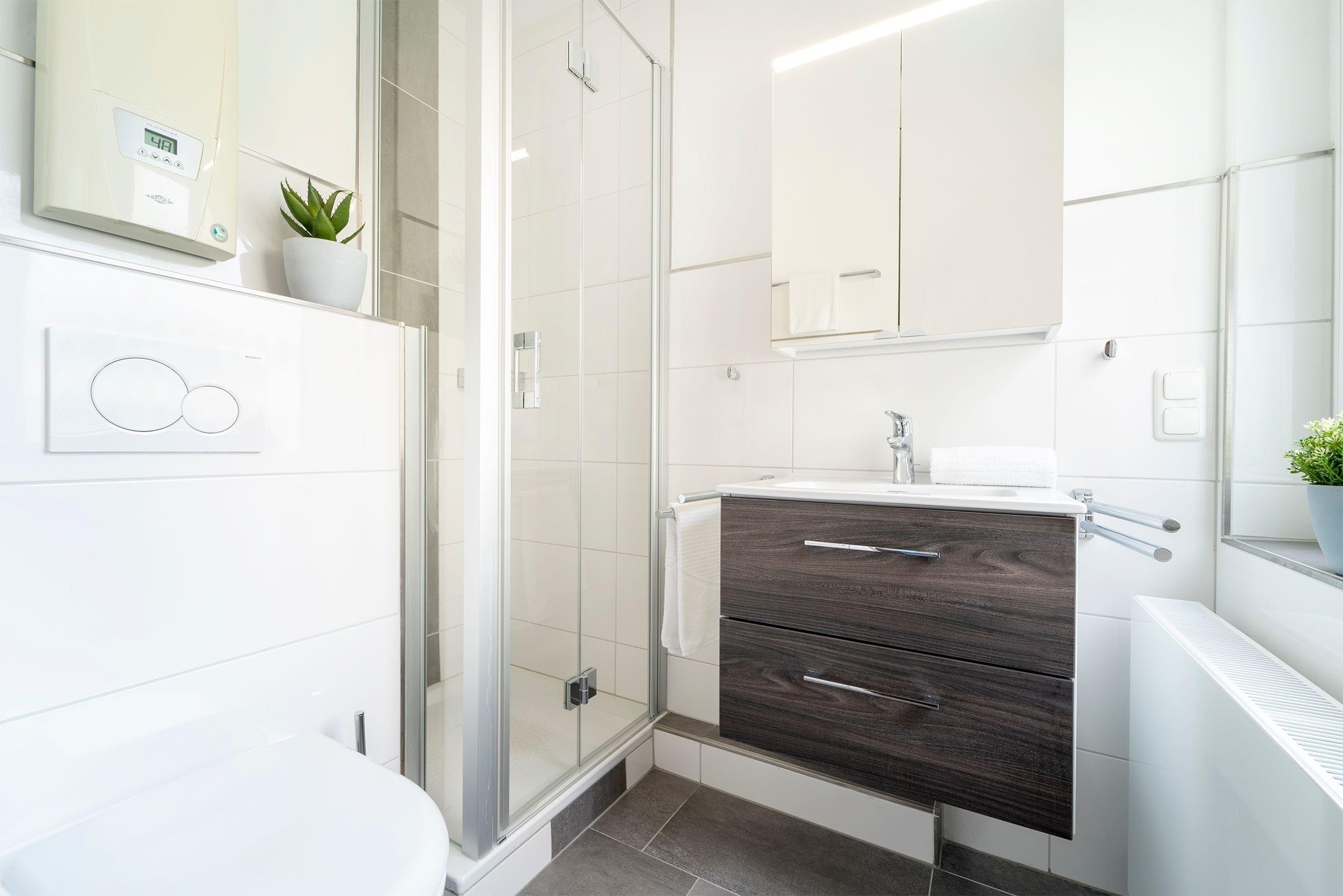 Die Wohnung ist soweit schön bis auf die Dusche da fehlt eine Tür ,