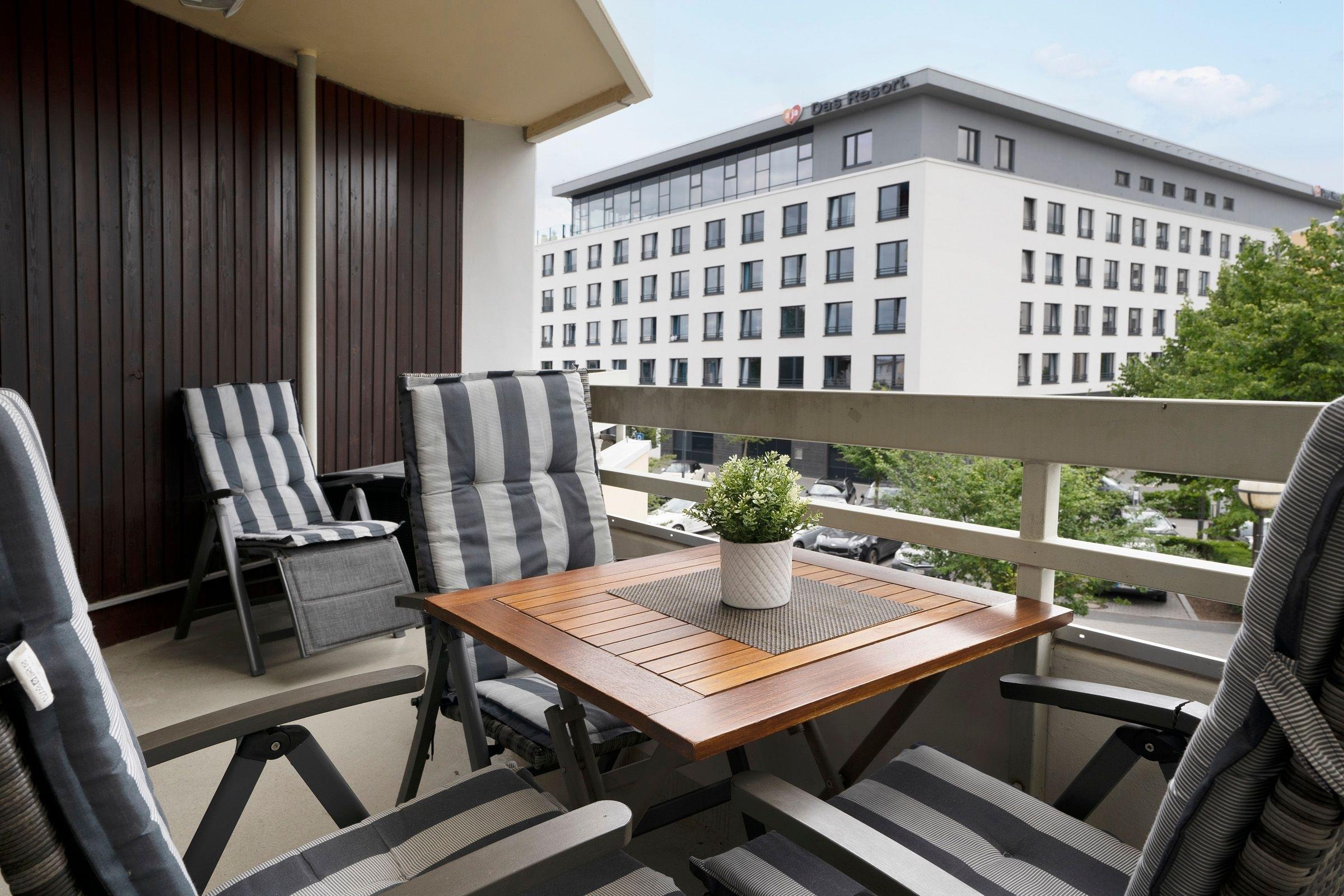 Ihre 3-Zimmer Nichtraucher Ferienwohnung, befindet sich im 3. Obergeschoss mit Balkon mit dem Blick in Richtung Grömitzer Welle mit Wellenbad und Sauna. Mit dem Aufzug gelangen Sie stufenlos in das 3. OG.