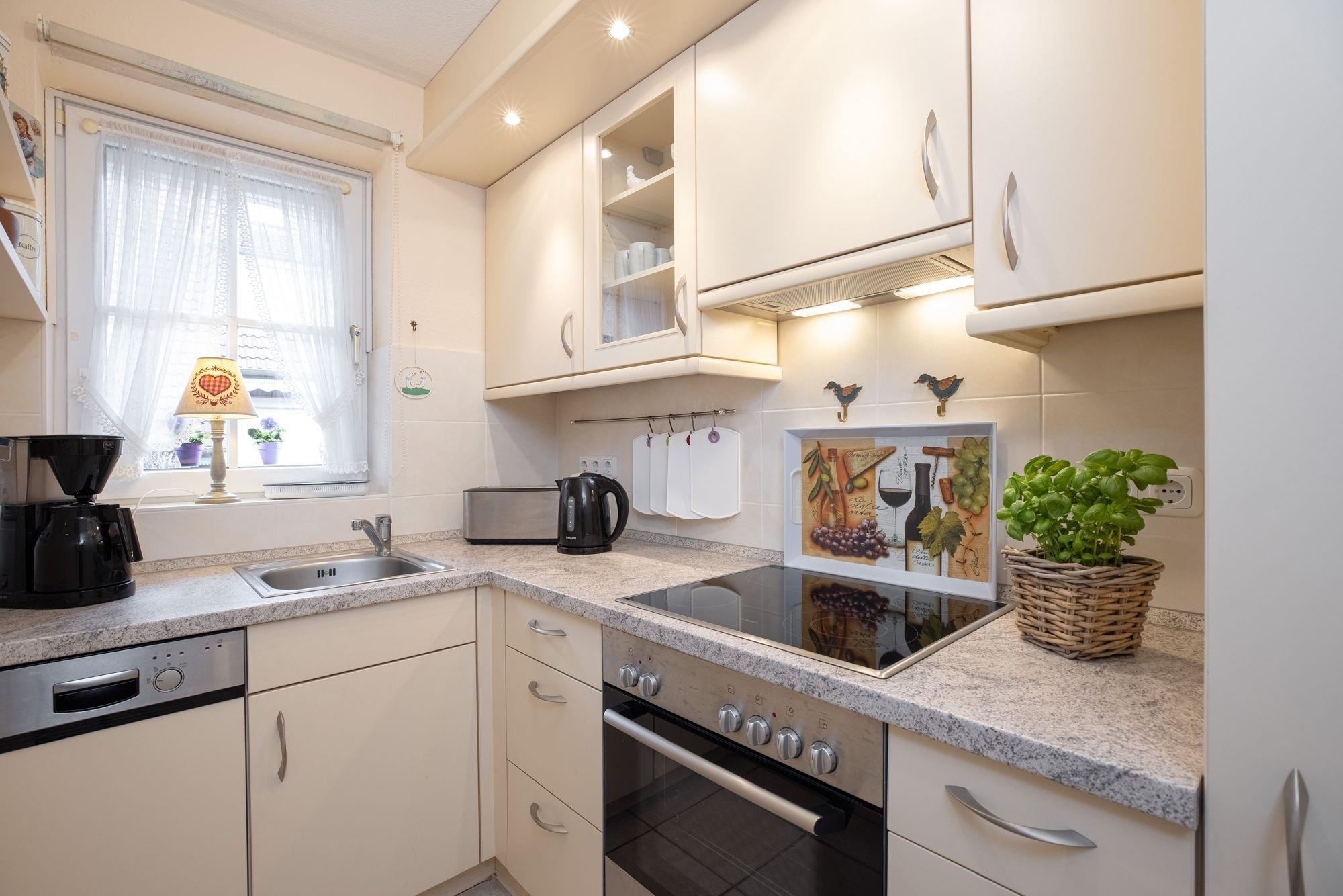 Die separate Küche bietet z. B. folgende Annehmlichkeiten: Ein 4-Platten-Ceranherd, ein Backofen sowie eine Spülmaschine. Des Weiteren befindet sich ein Gäste-WC im Erdgeschoss.
