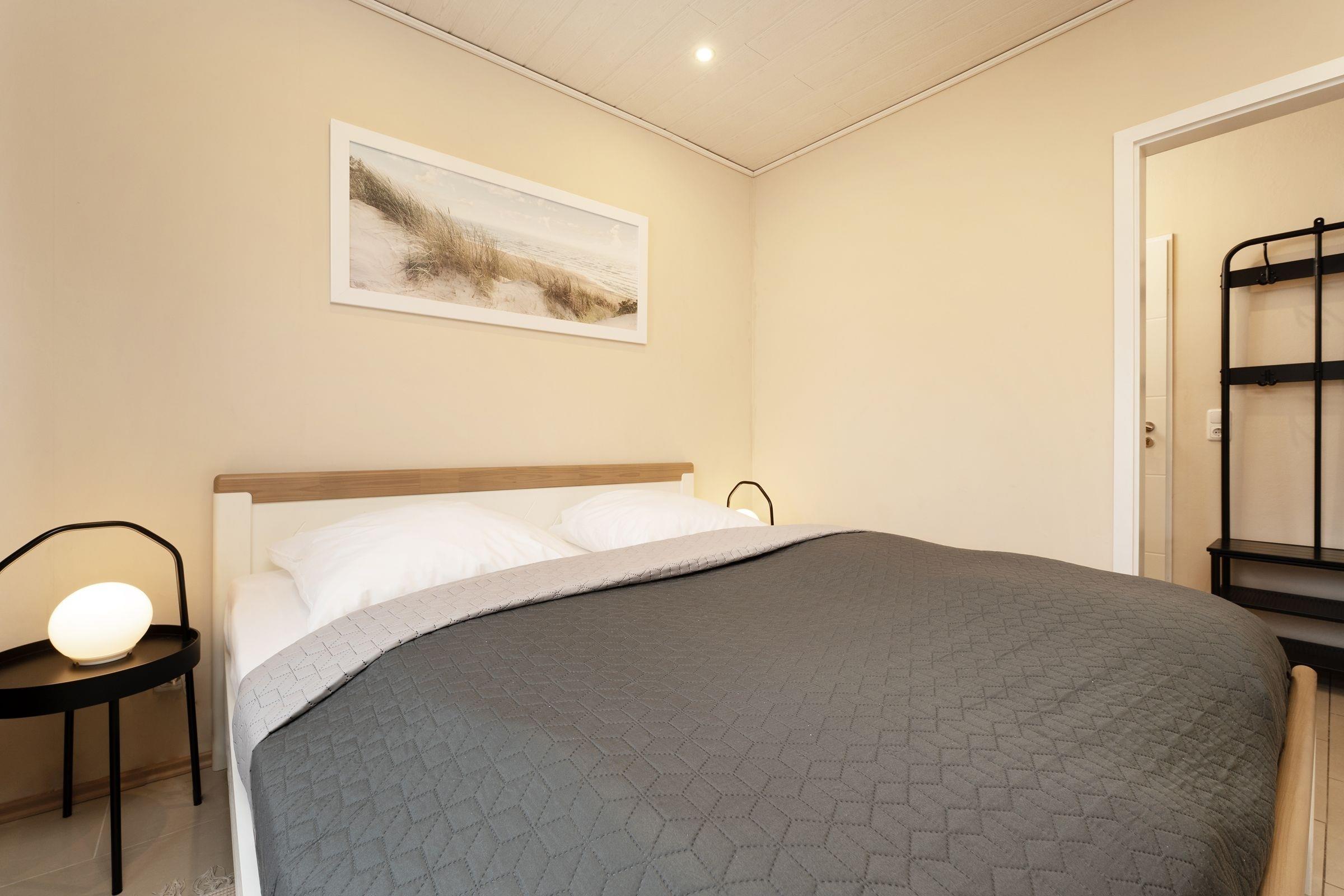 Schlafzimmer: 1 Doppelbett (180x200 cm, durchgehender Topper)