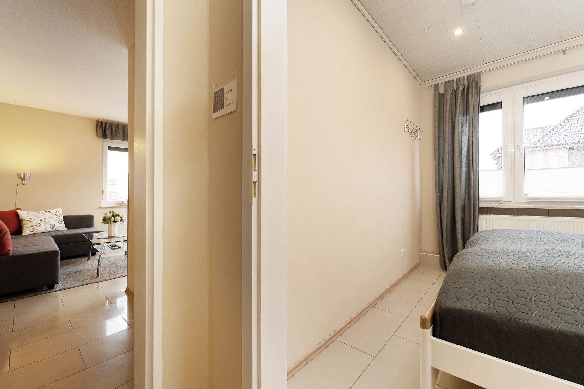 Am Haus ist ein PKW-Außenstellplatz für Sie reserviert. Für mitgebrachte Fahrräder ist ebenfalls eine Abstellmöglichkeit vorhanden. Die Treppe ins 1. Obergeschoss ist etwas steil.