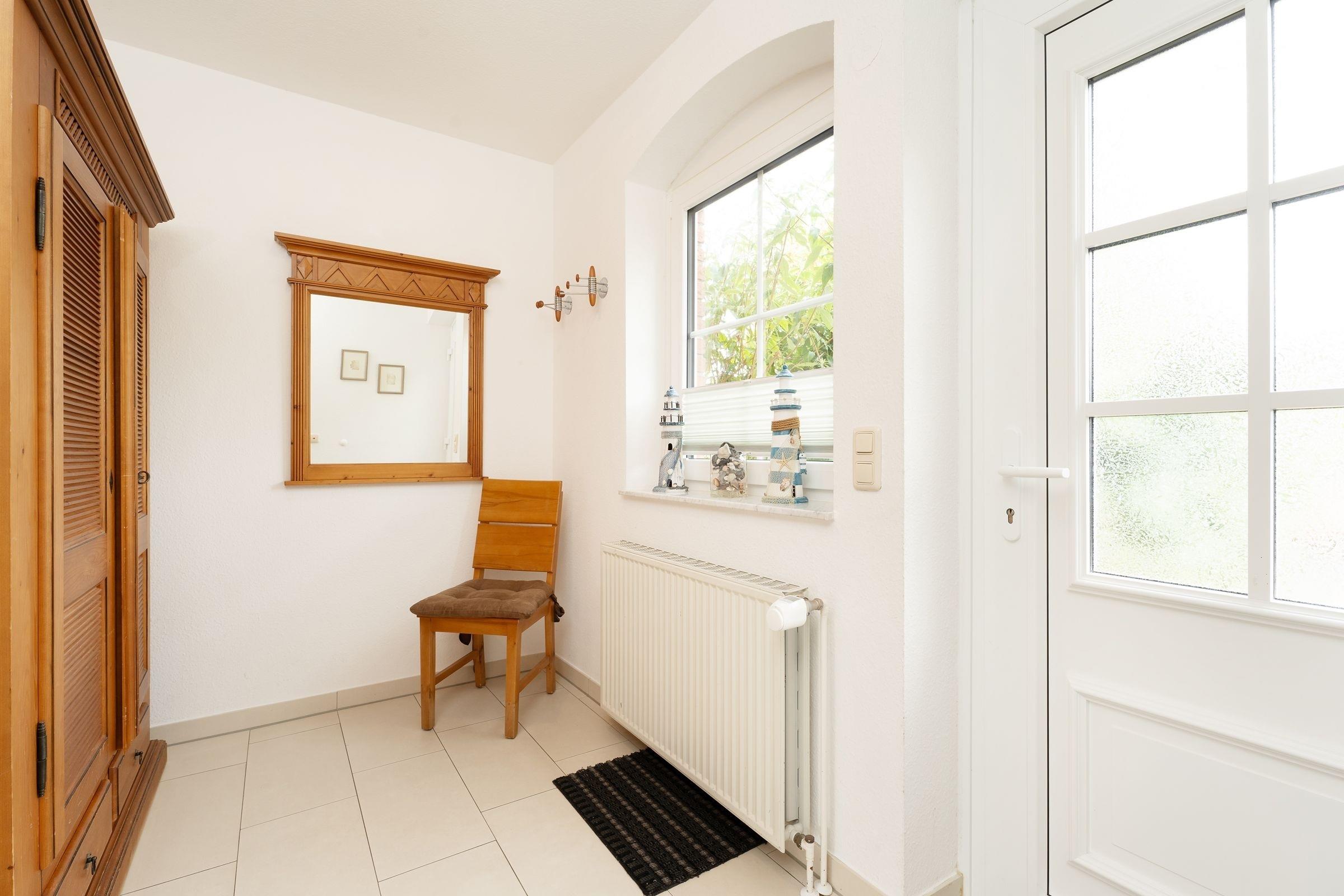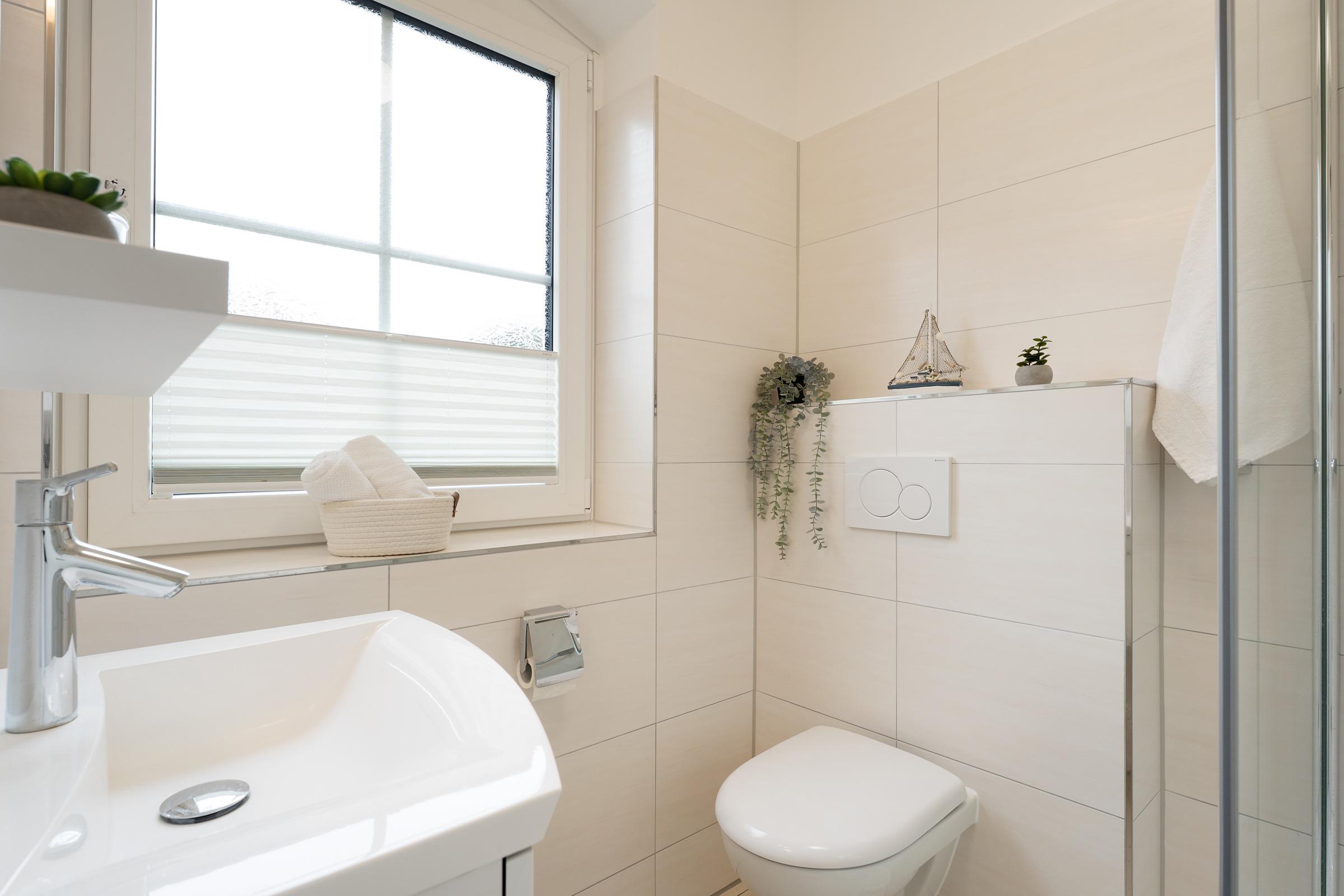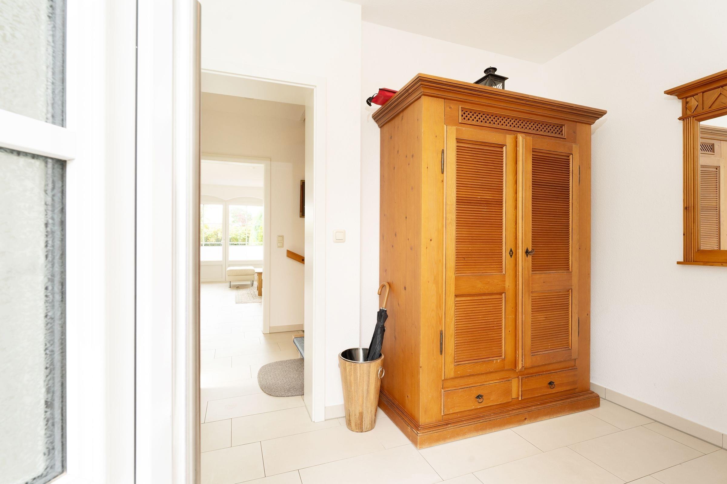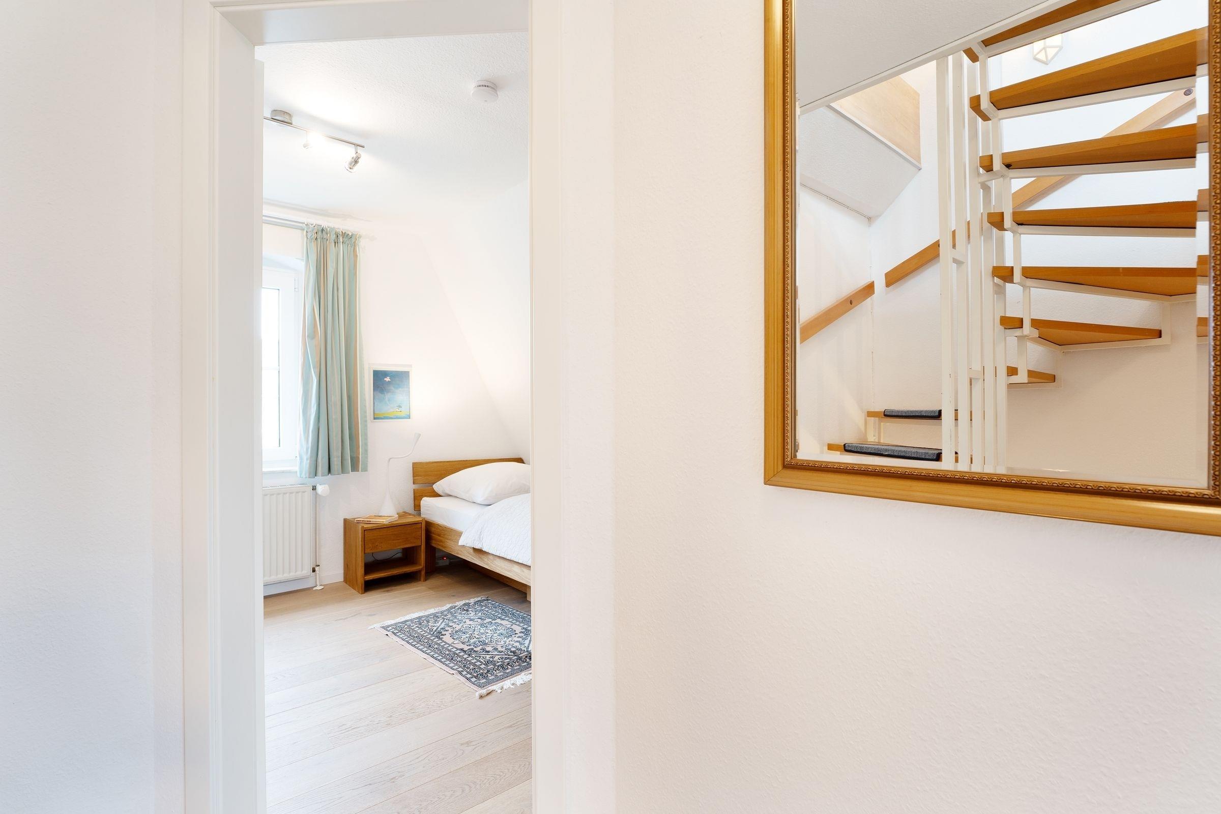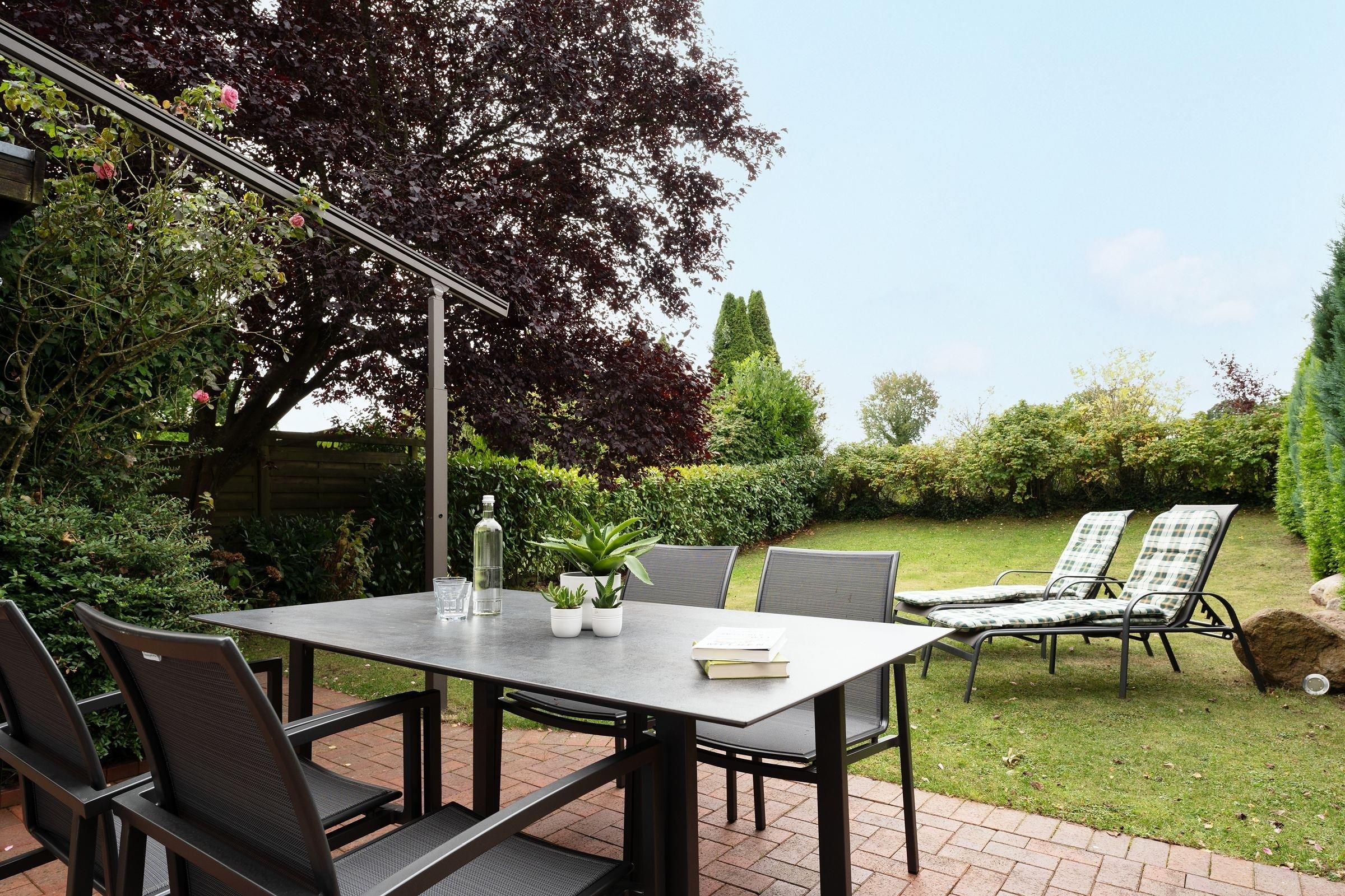 Im Erdgeschoss befindet sich das lichtdurchflutete Wohnzimmer mit moderner, integrierter Küche sowie eine großen Essecke mit sechs Stühlen. Von hier aus haben Sie direkten Zugang zur idyllischen Südwest-Terrasse mit elektrischer Markise (ganztags Sonne) mit entsprechendem Gartenmobiliar. Der große Garten steht Ihnen zur alleinigen Nutzung zur Verfügung. Weiterhin verfügt das Erdgeschoss über ein helles Duschbad. Im 1. Obergeschoss befinden sich zwei Schlafzimmer. Das Elternschlafzimmer bietet neben einem gemütlichen Doppelbett (2x 90x200cm) im Landhausstil einen geräumigen Kleiderschrank für Ihre Urlaubsgarderobe sowie einen zusätzlichen Flachbildfernseher. Ein Schlafzimmer mit zwei Einzelbetten (je 90x200 cm) ist zusätzlich vorhanden. Zudem finden Sie auf dieser Etage ein weiteres Duschbad. Im Dachgeschoss befindet sich ein weiteres Zimmer mit 2 zusätzlichen Schlafmöglichkeiten (je 90x200 cm) für Kinder und einem weiteren Flat-TV mit Blue-Ray und DVD-Player.