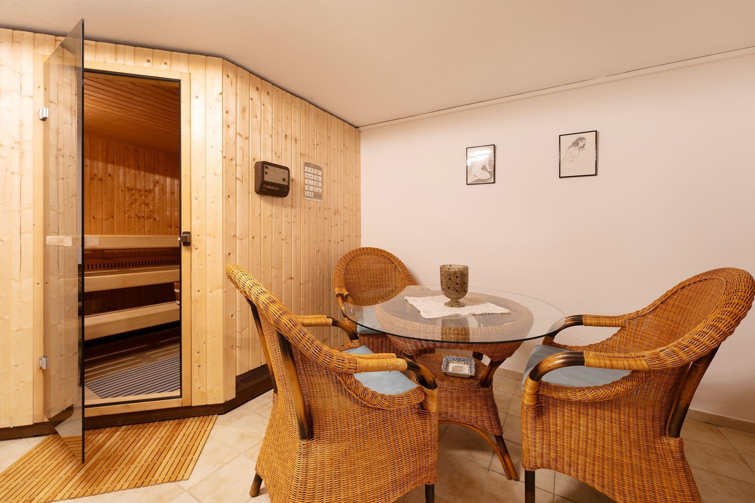 Zwei PKW-Außenstellplätze stehen Ihnen am Haus zur Verfügung. Im Untergeschoss befindet sich eine Sauna zur kostenfreien Nutzung sowie ein Hauswirtschaftsraum mit einer Waschmaschine und einem Trockner. Ebenso gibt es einen kostenfreien WLAN Anschluss. Für die kleinen Gäste steht ein Hochstuhl sowie ein Bollerwagen bereit.