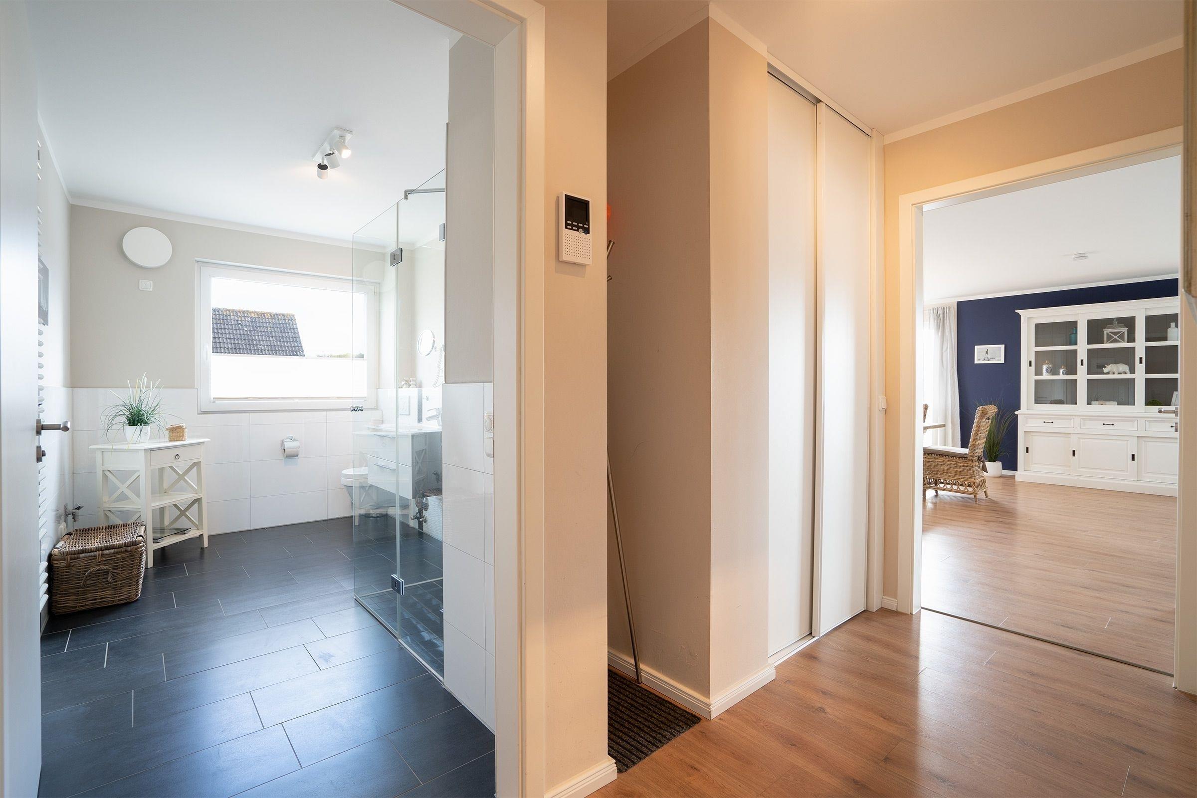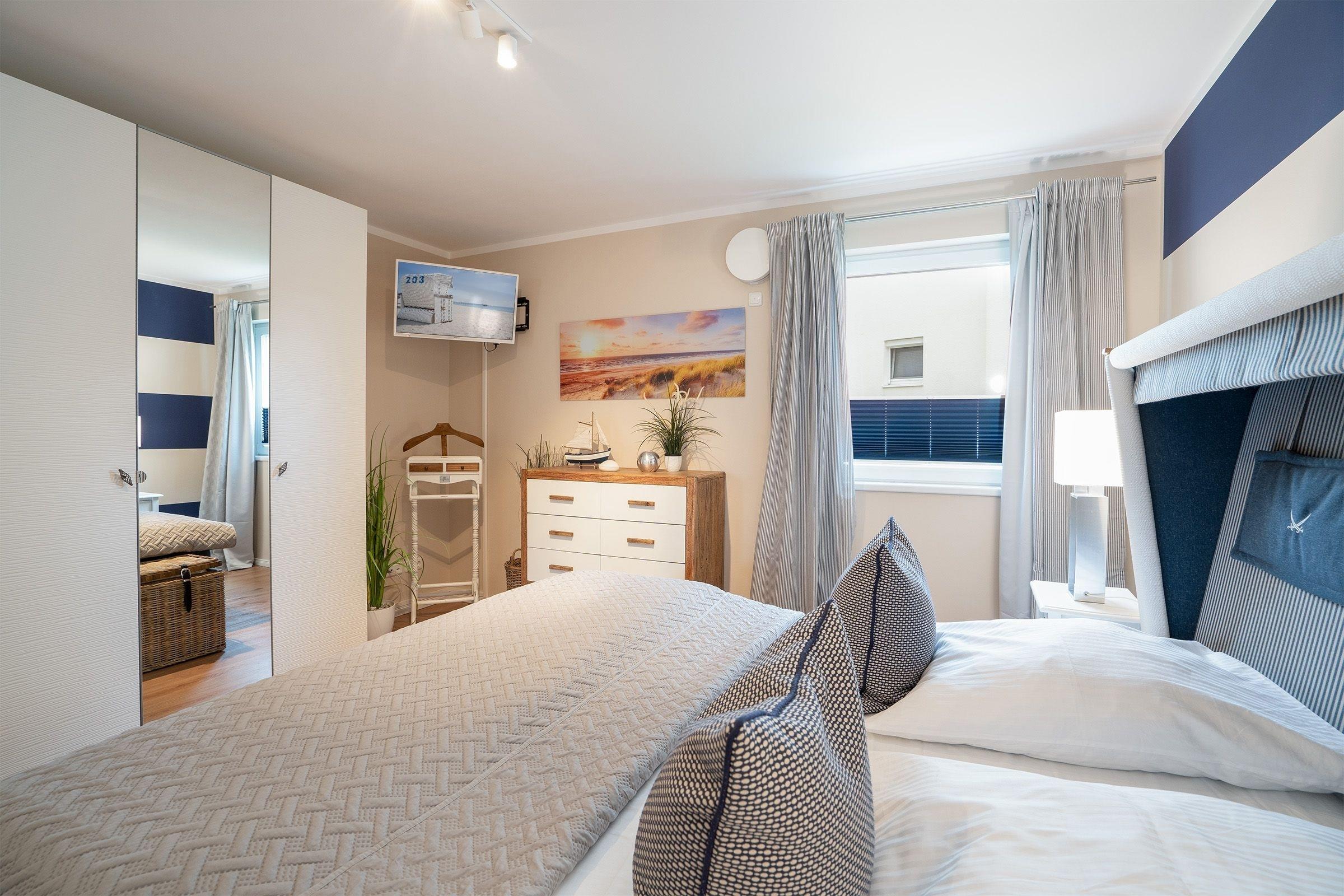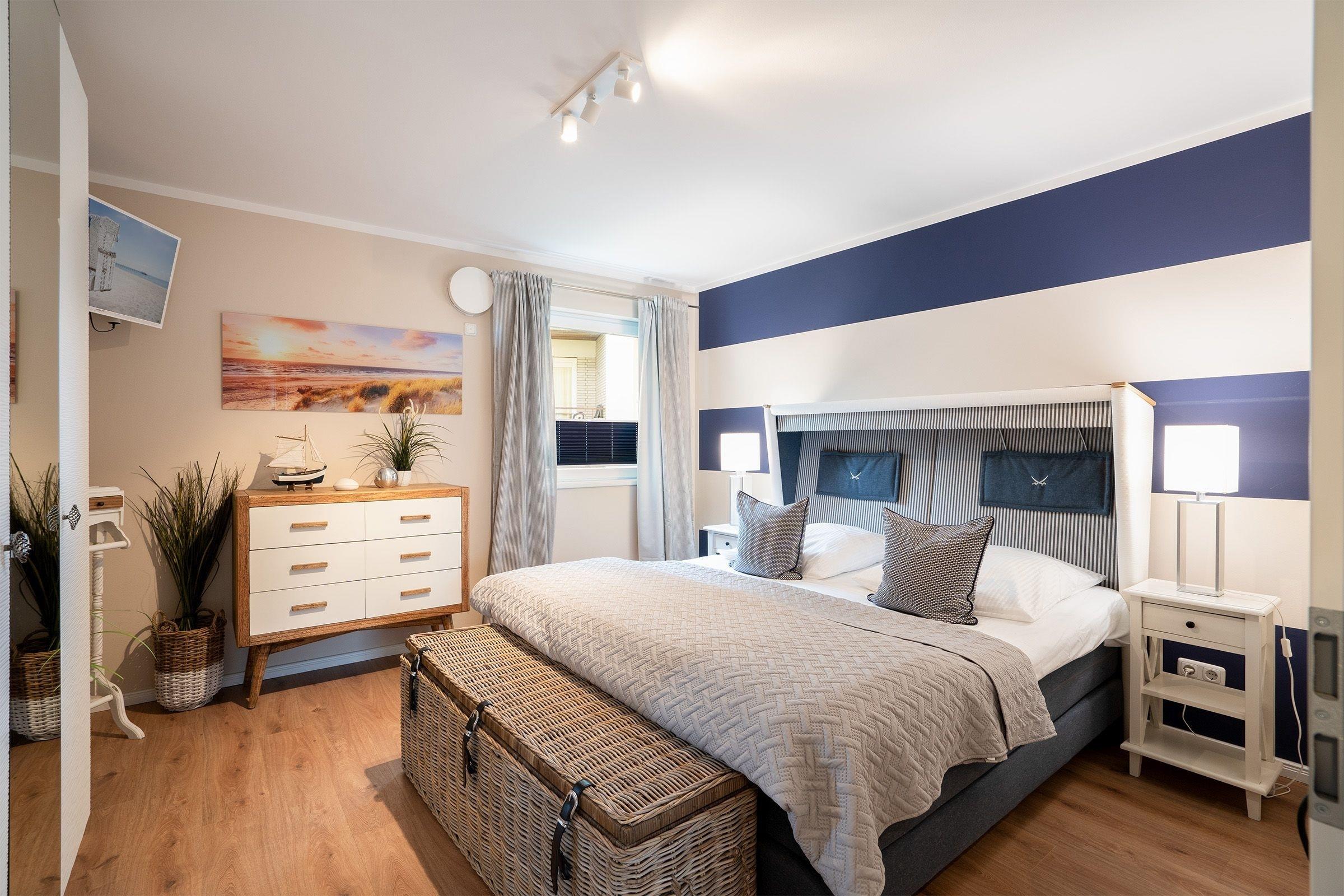 Reichlich Platz bietet diese maritim eingerichtete 3-Zimmer-Ferienwohnung auf ca. 101 m² Wohnfläche für bis zu 4 Erwachsene und 1 Kind. Diese Wohlfühloase ist harmonisch und mit viel Liebe zum Detail eingerichtet. Dieses Feriendomizil ist barrierearm und eignet sich daher ebenfalls für Menschen mit Bewegungseinschränkungen.