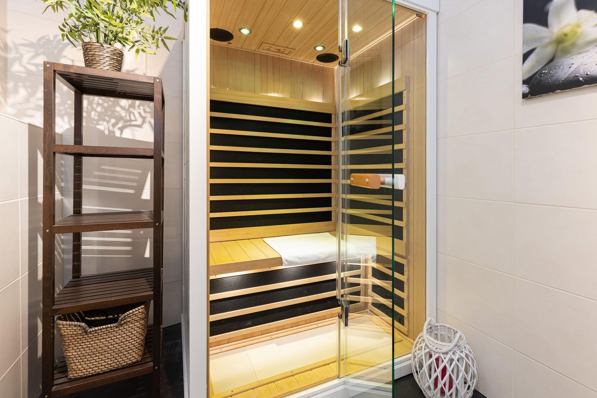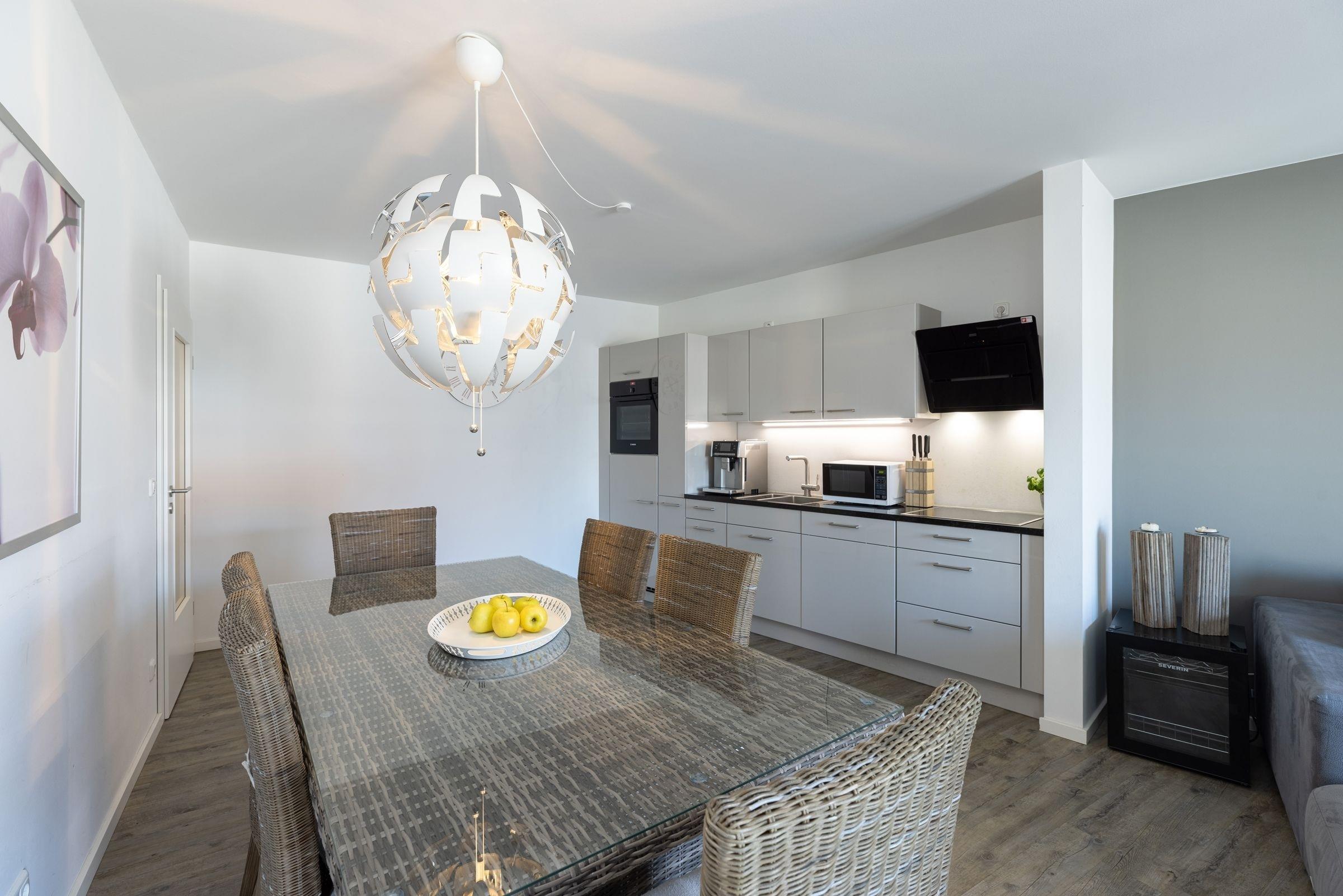 Freuen Sie sich auf ein modernes Wohnzimmer mit direktem Zugang zum Balkon mit Südostausrichtung und gemütlicher Sitzgruppe, eine üppig ausgestattete integrierte Küche mit Essplatz sowie über zwei separate Schlafzimmer, eines mit Doppelbett (180x200 cm), das andere mit zwei Einzelbetten (je 100x200 cm). Das innenliegende Wohlfühlbad erwartet Sie mit einer Infrarotkabine mit integrierter Dampfduschen-Funktion. Das Wohnzimmer und die beiden Schlafzimmer sind jeweils mit einem eigenen Flachbild-TV ausgestattet - hier ist auch an Regentagen für gute Unterhaltung gesorgt.