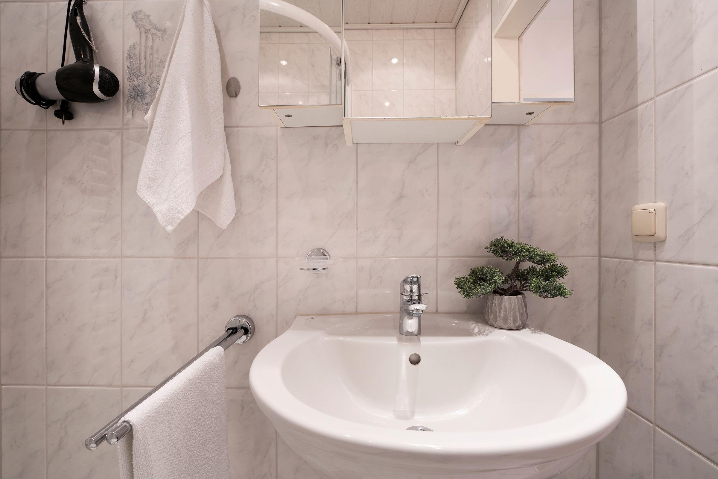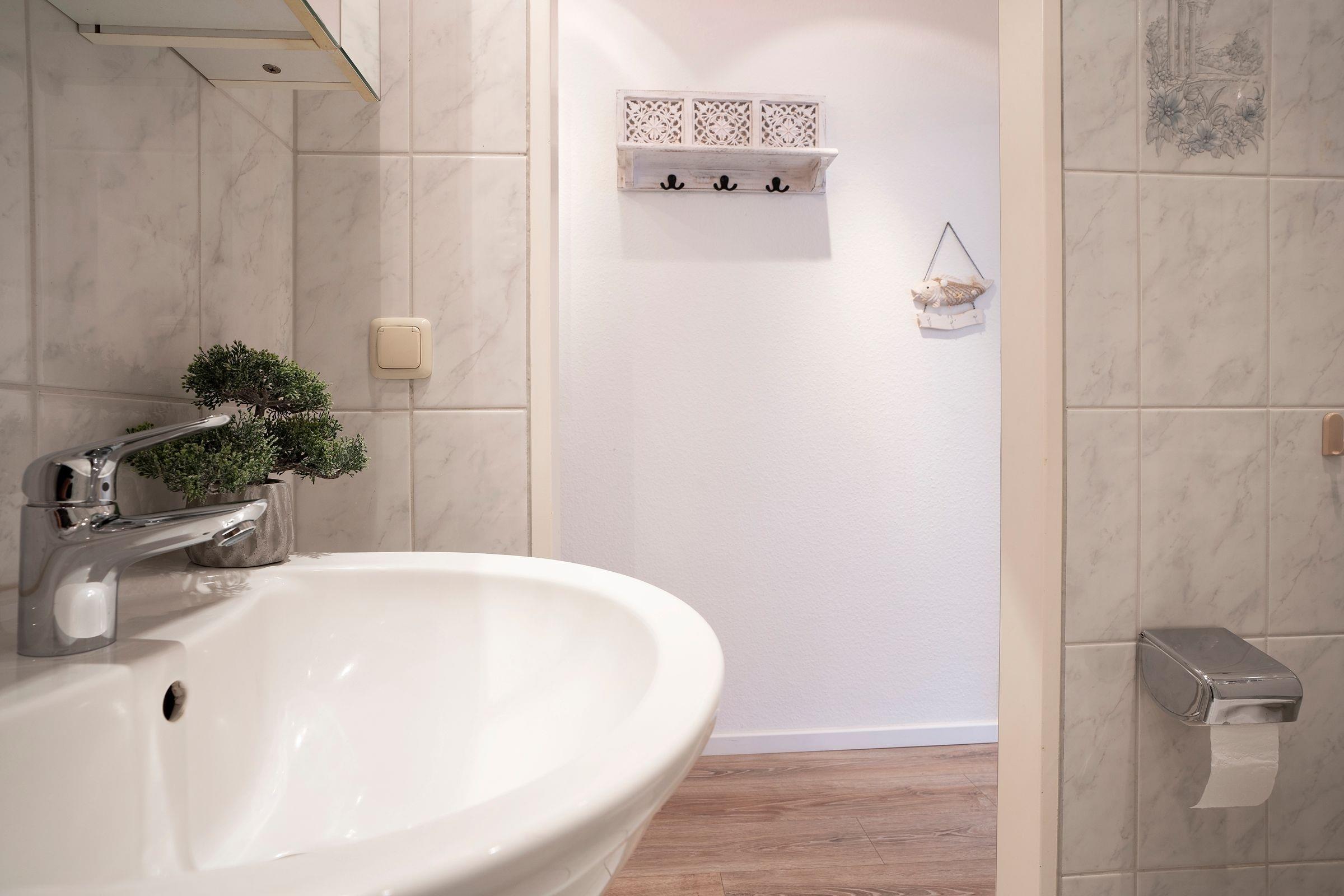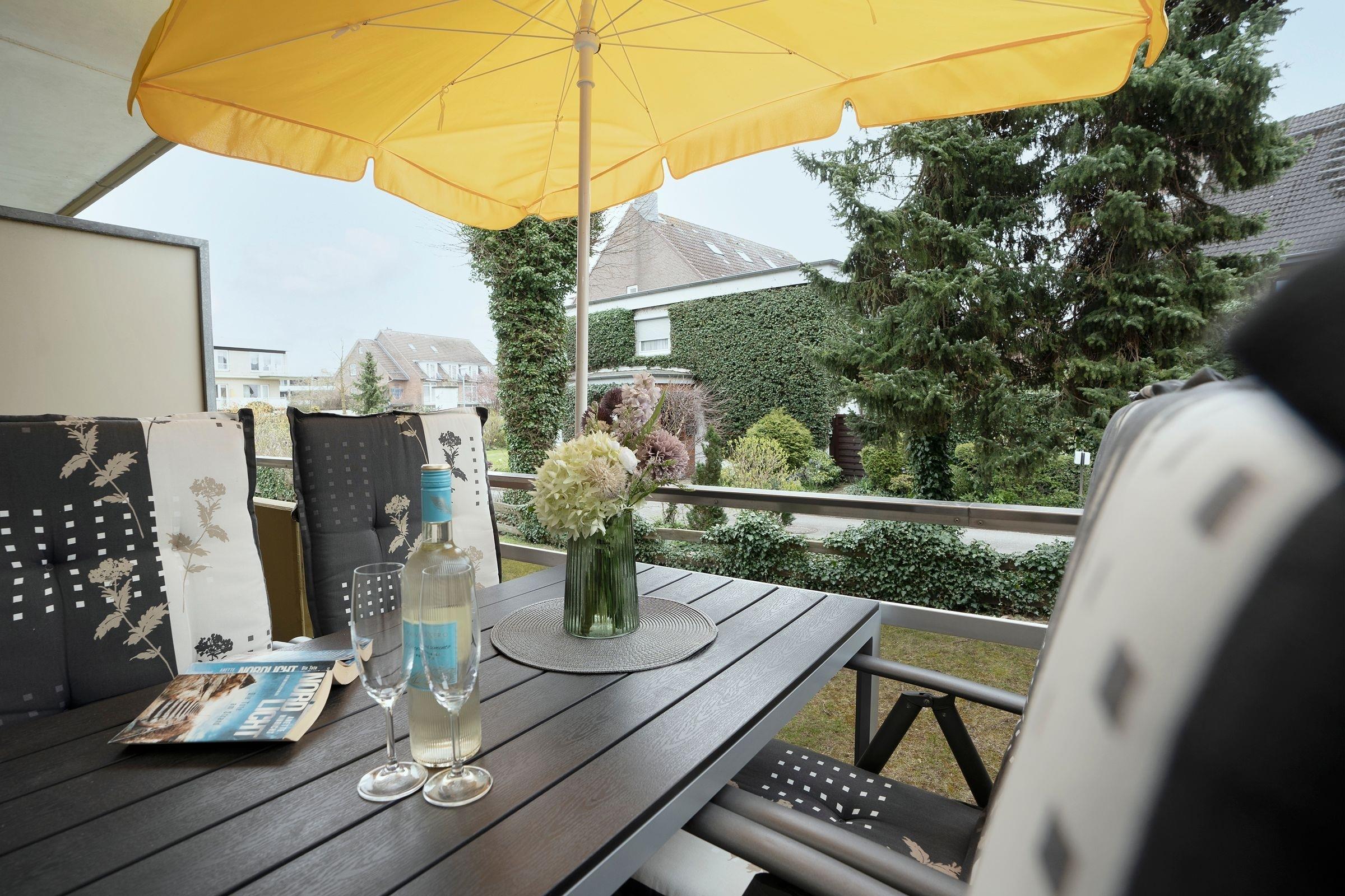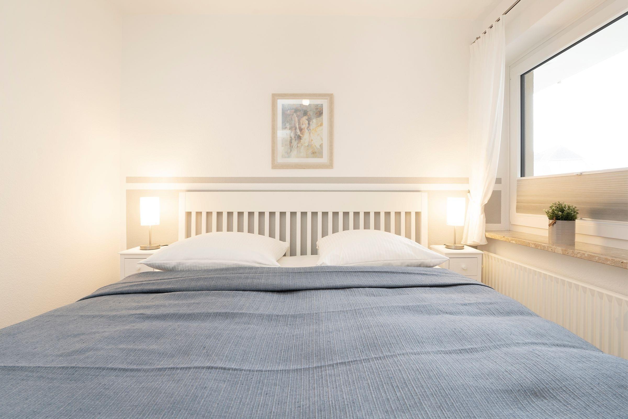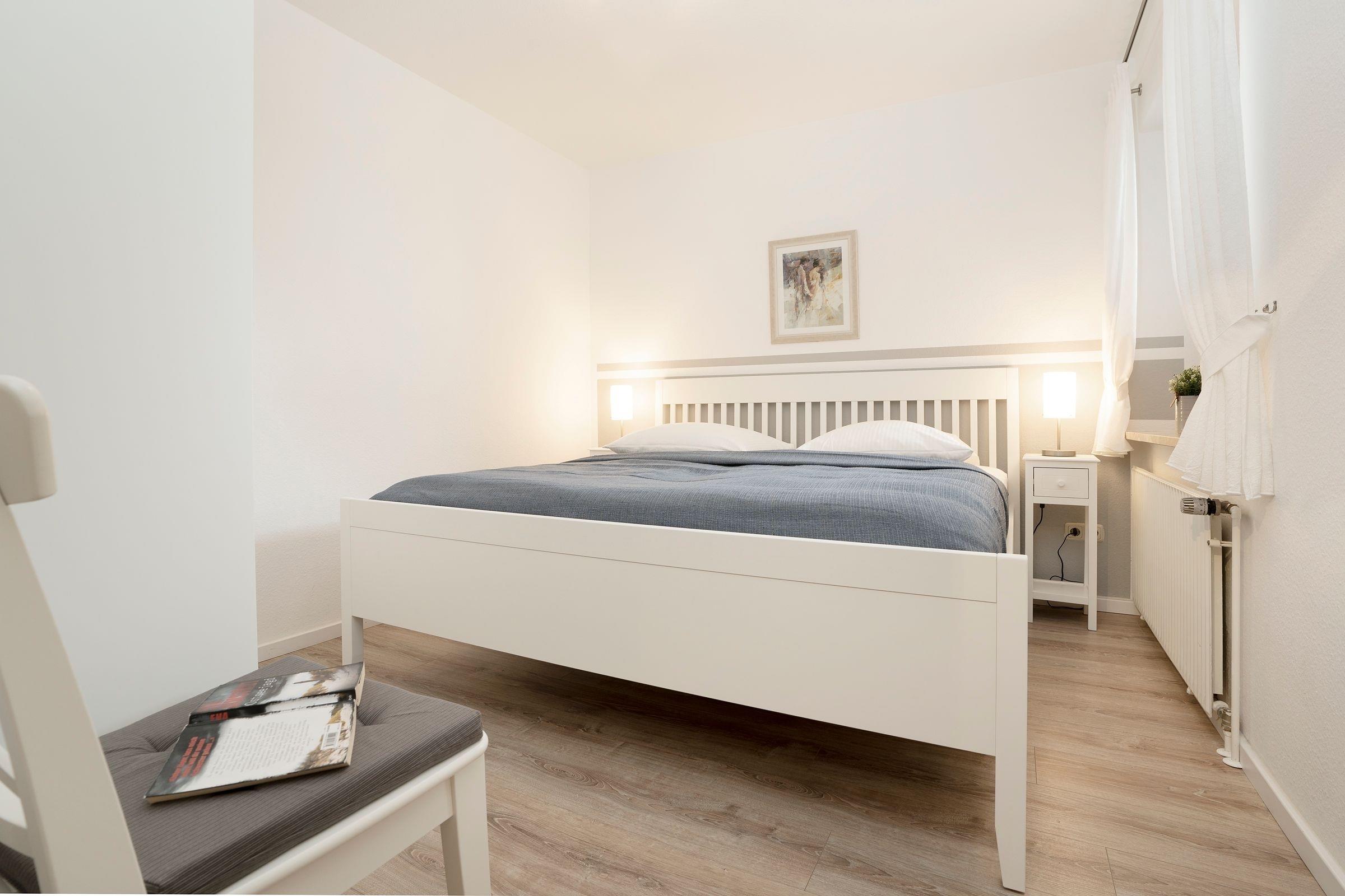 Es steht Ihnen eine Küche mit folgender Ausstattung zur Verfügung: Ceranfeldherd, Spülmaschine, Mikrowelle, Kühlschrank mit Gefrierfach und natürlich Kaffeemaschine, Toaster und Wasserkocher. Das Schlafzimmer ist ausgestattet mit einem Doppelbett (2x 90x200 cm) und großem Kleiderschrank, Nachtschränkchen mit Beleuchtung. Eine Ablage für Kleidung ist vorhanden. Das neuwertige Bad verfügt über Dusche/WC, beheizbaren Handtuchhalter und Waschbecken. Ein sonniger Balkon mit Relaxstühlen befindet sich vor dem Wohnzimmer - perfekt für ein Frühstück! Ebenso können Sie hier kostenfrei das WLAN nutzen.