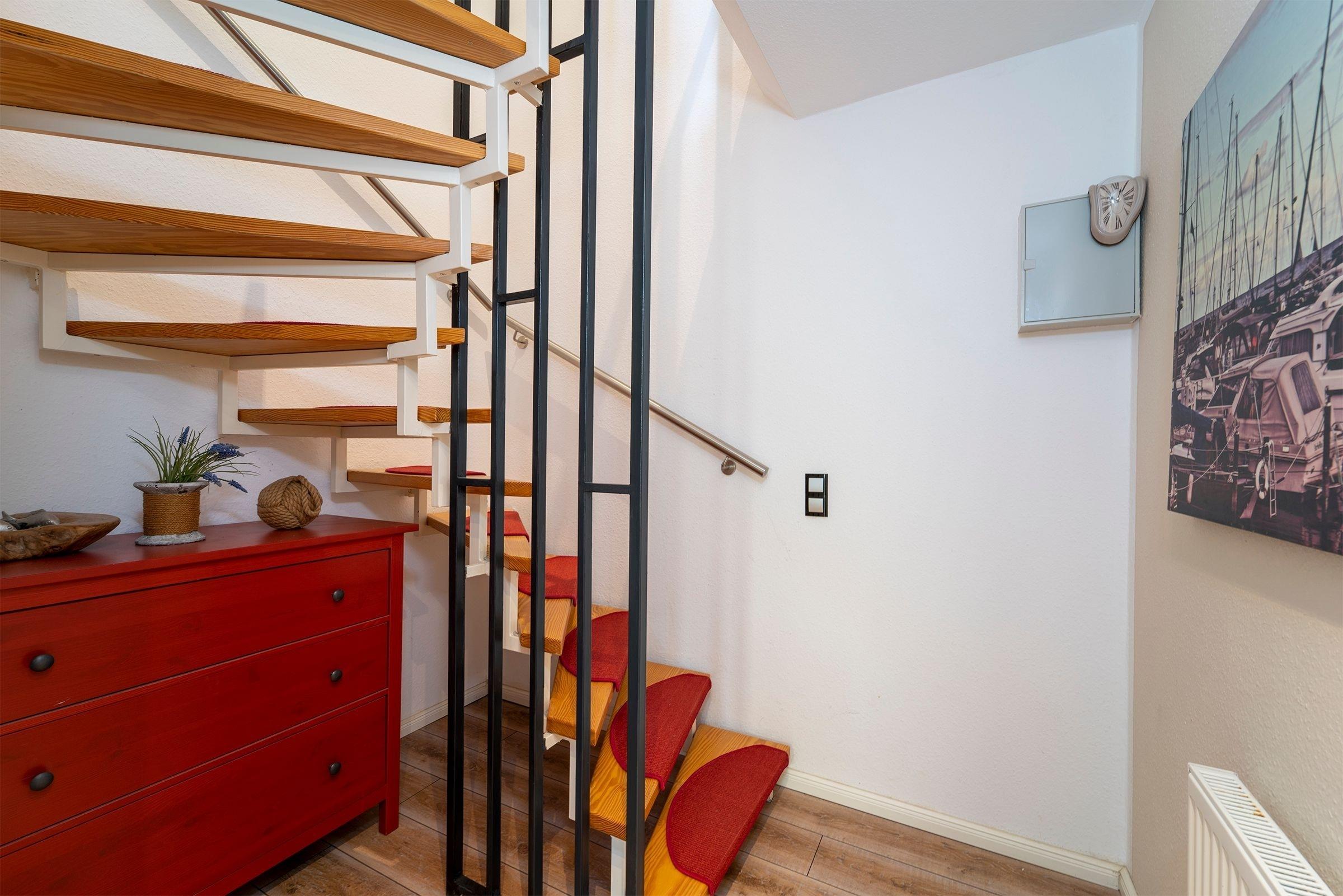 Ein PKW-Außenstellplatz ist für Sie direkt am Haus reserviert. Die Nutzung der Waschmaschine und des Trockners sind im Mietpreis inbegriffen. Für die kleinen Gäste steht ein Hochstuhl bereit, ein Treppenschutzgitter sorgt für die Sicherheit.