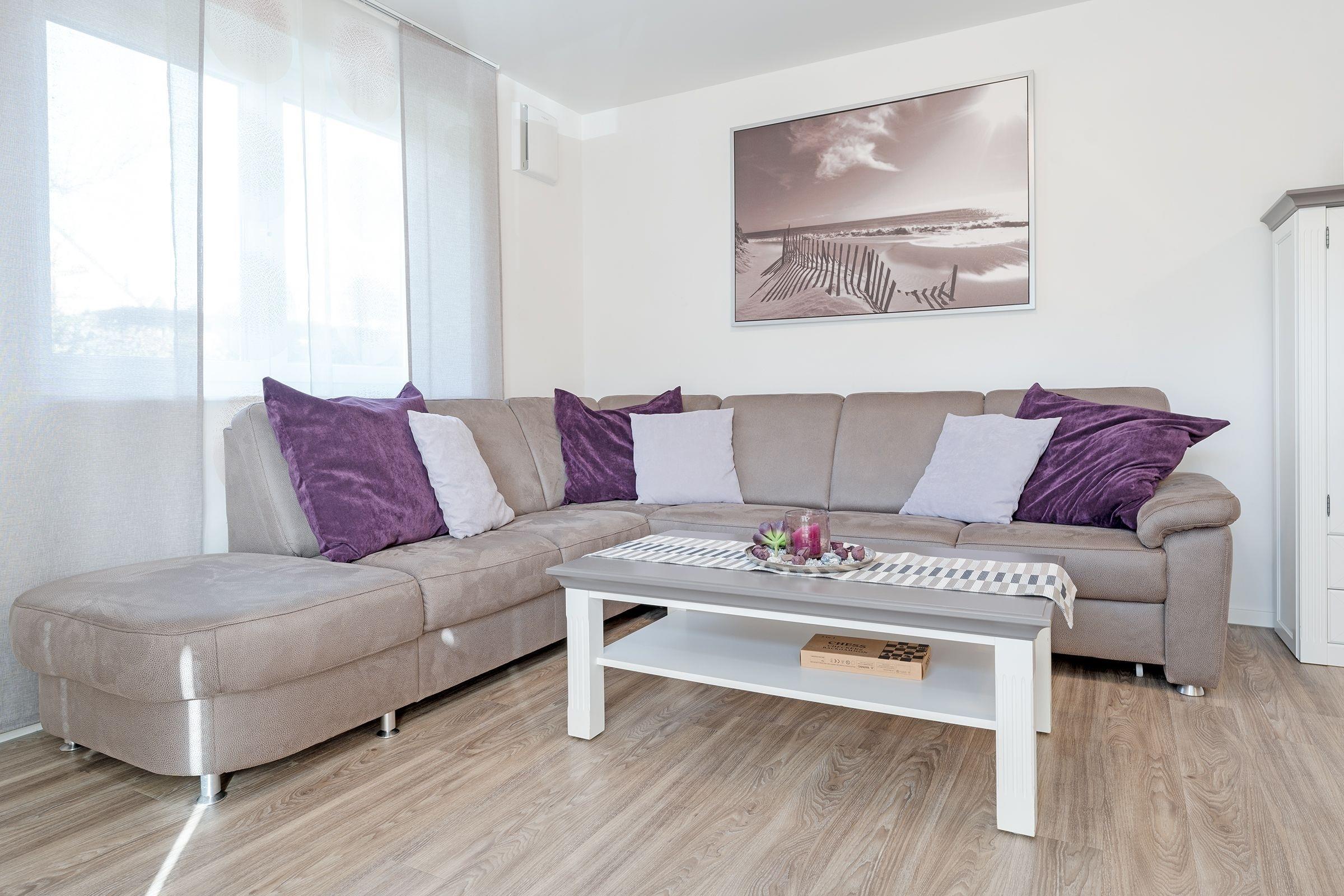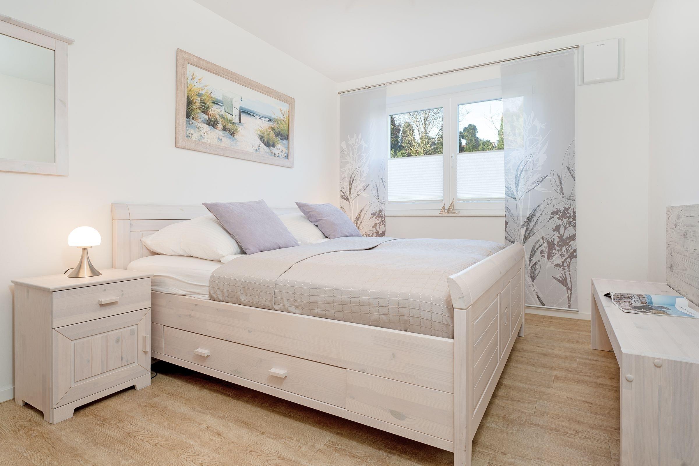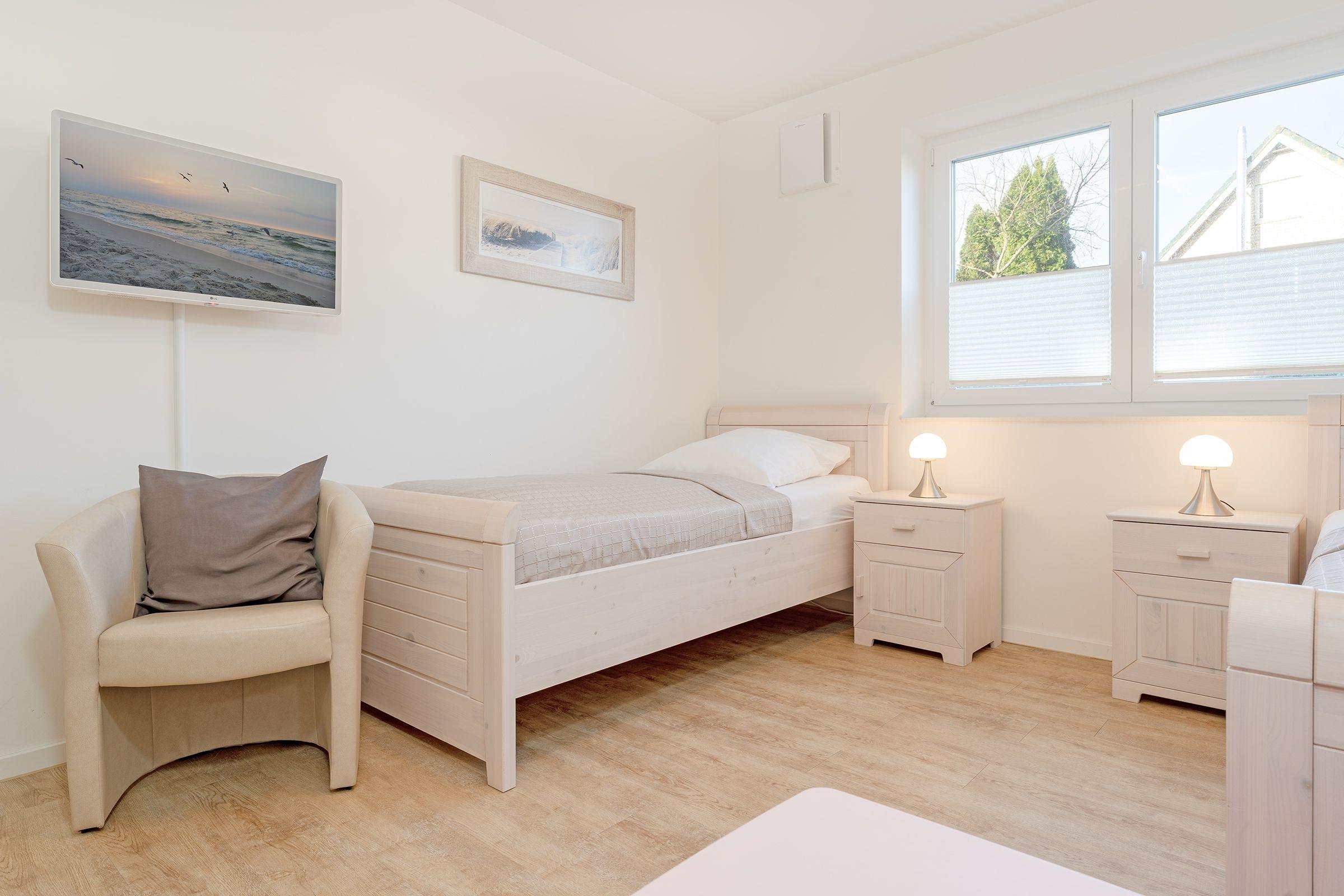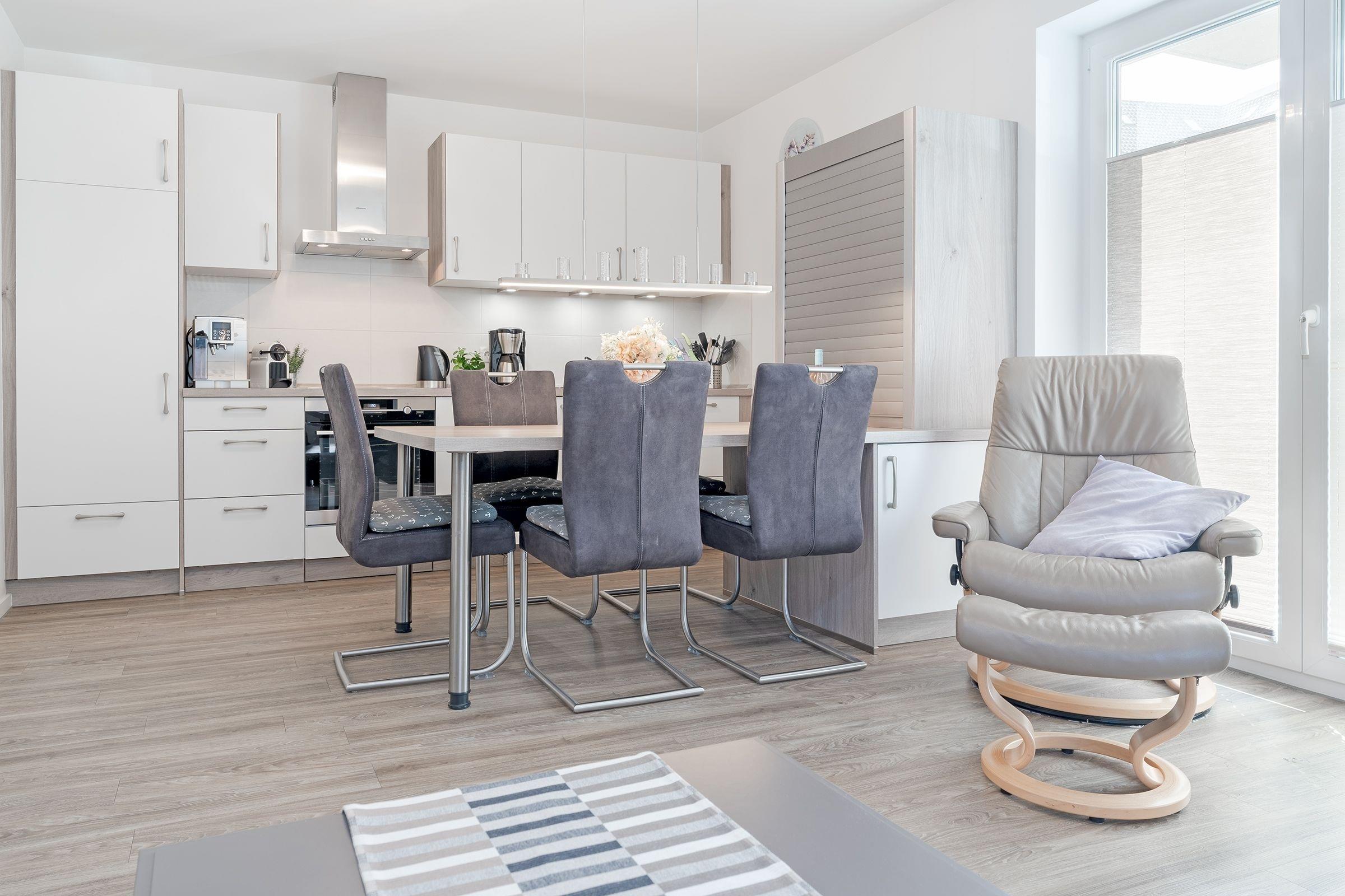 Eine der wohl schönsten und wertigsten Möglichkeiten, Ihren Urlaub mit Niveau zu verbringen! Sie werden sich vom ersten Moment an wie zu Hause fühlen. Alles ist harmonisch aufeinander abgestimmt und mit viel Liebe zum Detail eingerichtet. Einen besonders hohen Wohlfühlfaktor verspricht das geschmackvoll eingerichtete Wohn- und Esszimmer mit Smart-TV, einer Wii-Spielekonsole und einer komfortablen hochwertigen Schlafcouch (123 x 221 cm). Es gibt einen direkten Zugang zur großen möblierten Terrasse mit West-Ausrichtung. Die moderne, gut ausgestattete Küche begeistert mit vielen Extras wie einer Kaffee-Kapselmaschine (Nespresso). Im kuscheligen Schlafraum mit einem Doppelbett (2x 90x200 cm) lässt es sich gemütlich machen. Ein weiterer Schlafraum hat 2 Einzelbetten (je 90x200 cm). Das helle, großzügige Bad verfügt über eine ebenerdige Dusche, eine Badewanne sowie Fußbodenheizung und eine Waschmaschine.
