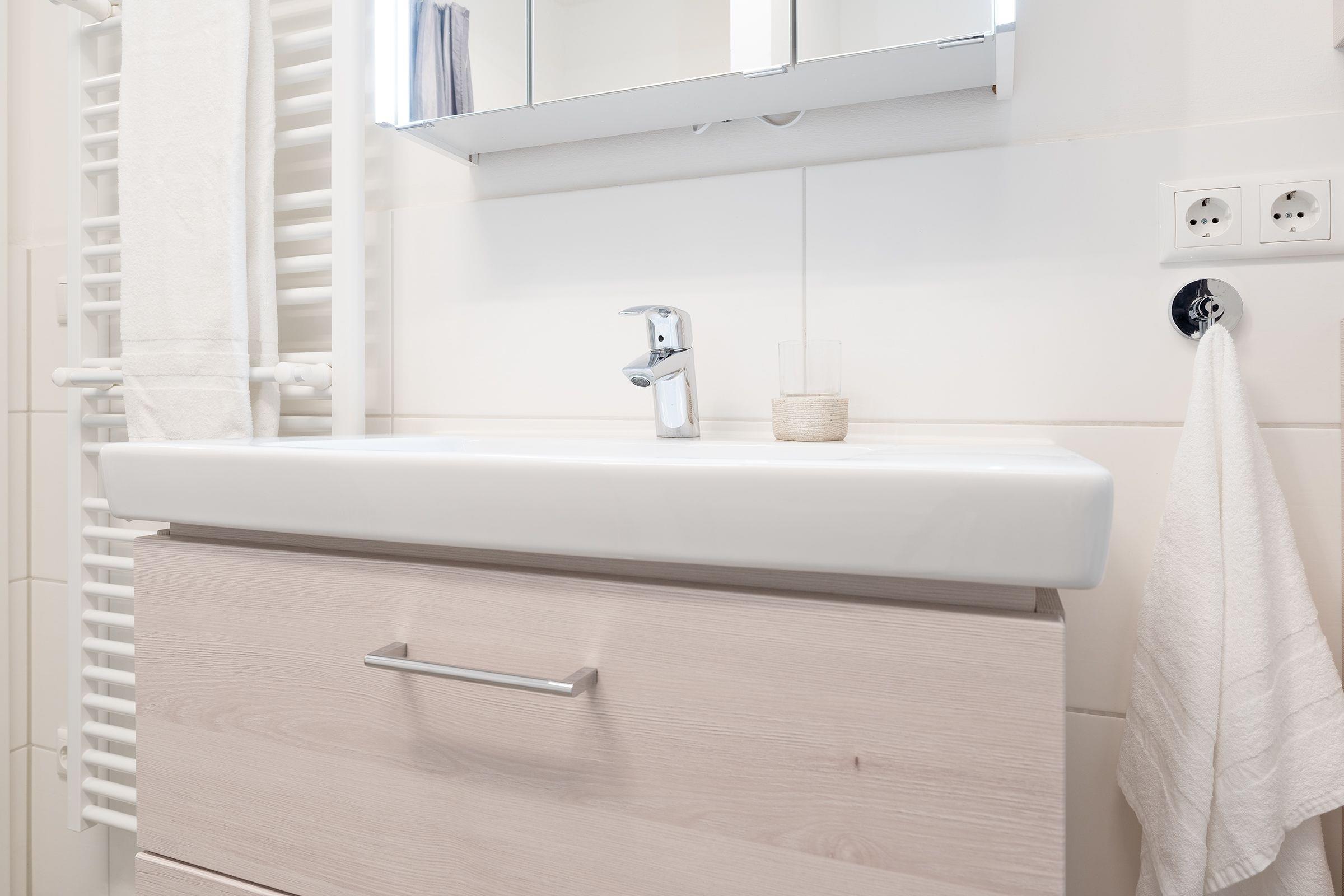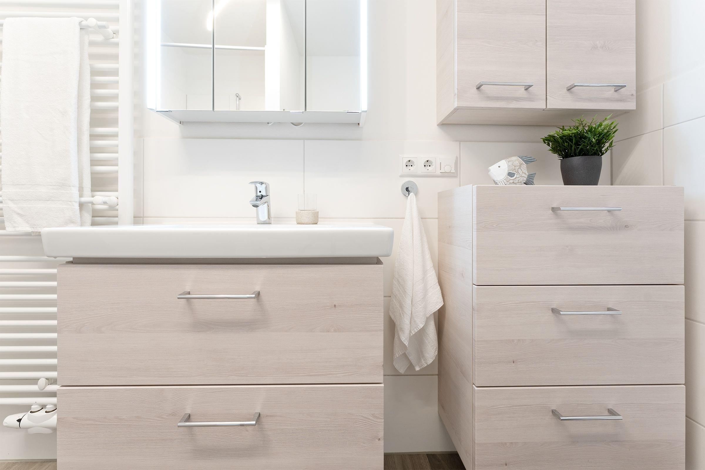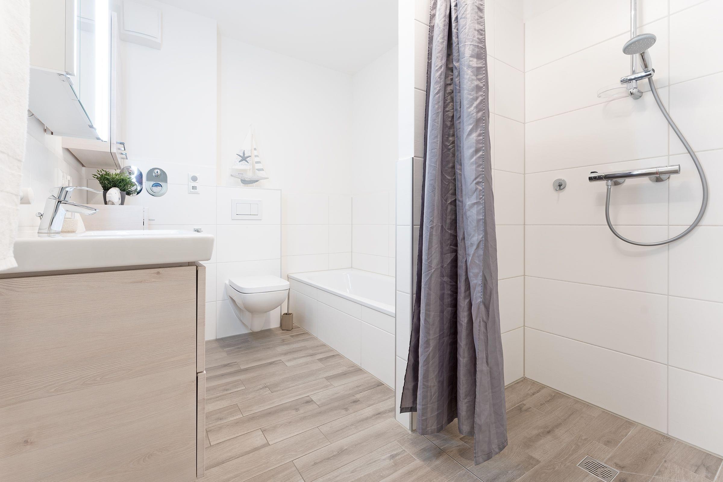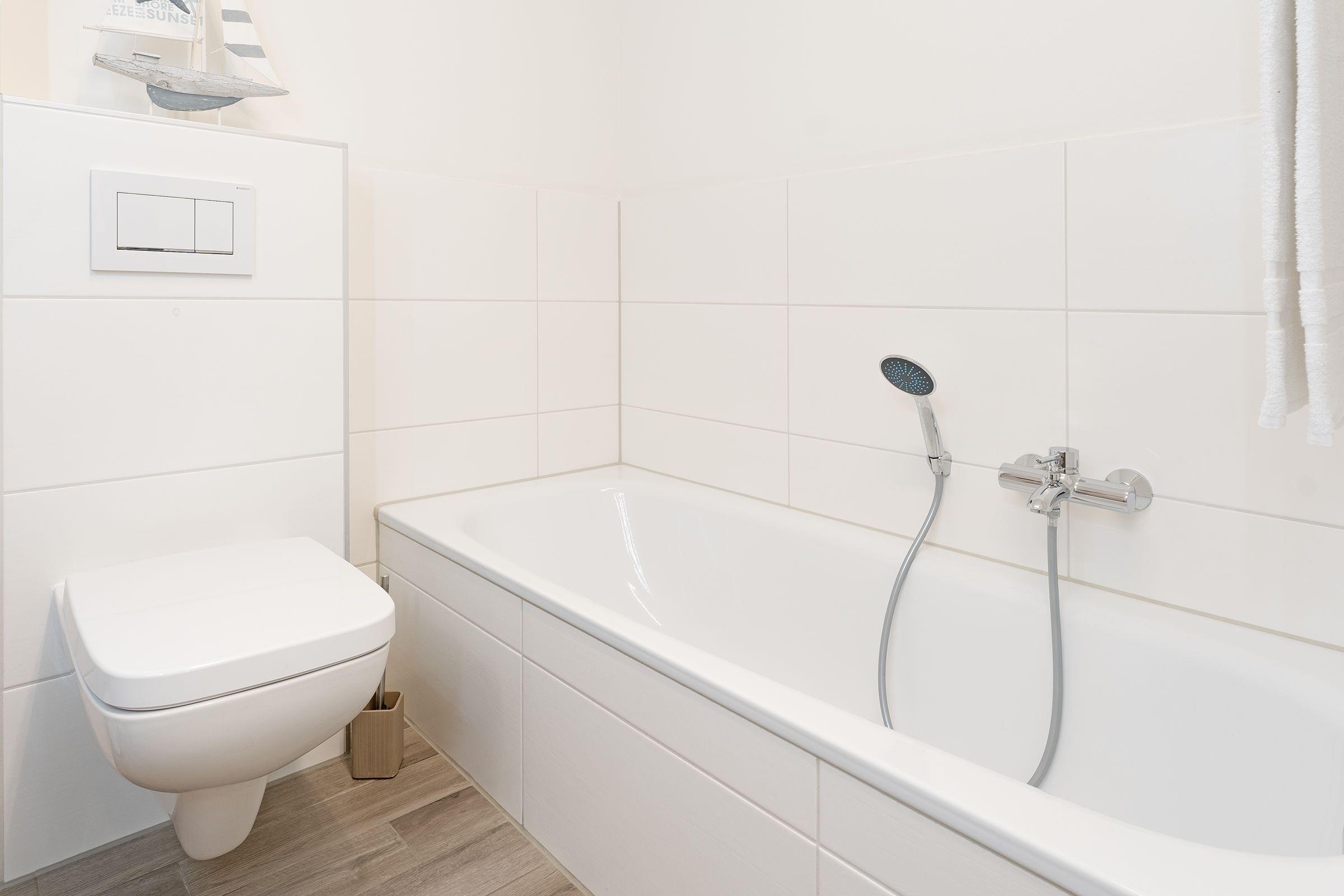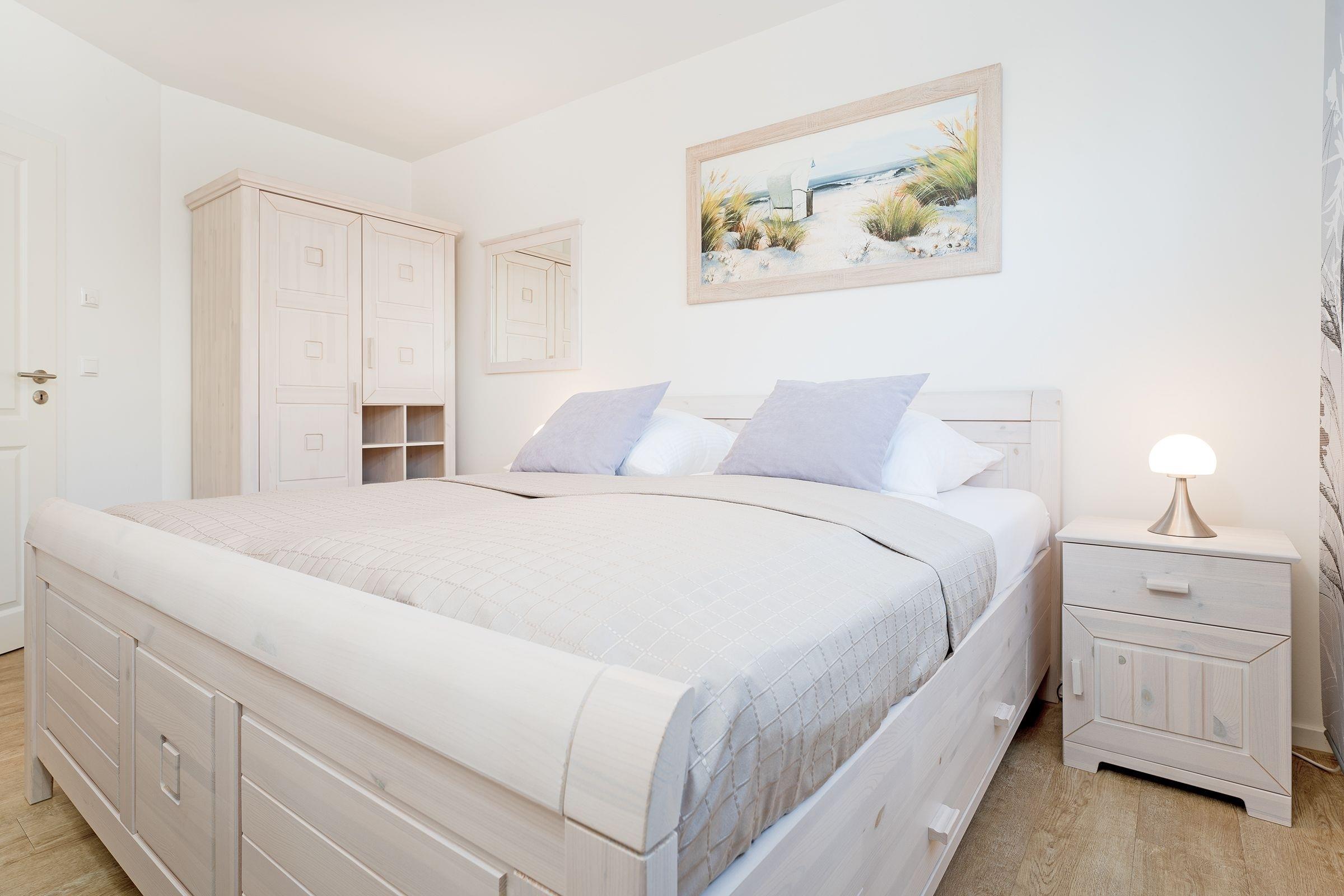 Eine der wohl schönsten und wertigsten Möglichkeiten, Ihren Urlaub mit Niveau zu verbringen! Sie werden sich vom ersten Moment an wie zu Hause fühlen. Alles ist harmonisch aufeinander abgestimmt und mit viel Liebe zum Detail eingerichtet. Einen besonders hohen Wohlfühlfaktor verspricht das geschmackvoll eingerichtete Wohn- und Esszimmer mit Smart-TV, einer Wii-Spielekonsole und einer komfortablen hochwertigen Schlafcouch (123 x 221 cm). Es gibt einen direkten Zugang zur großen möblierten Terrasse mit West-Ausrichtung. Die moderne, gut ausgestattete Küche begeistert mit vielen Extras wie einer Kaffee-Kapselmaschine (Nespresso). Im kuscheligen Schlafraum mit einem Doppelbett (2x 90x200 cm) lässt es sich gemütlich machen. Ein weiterer Schlafraum hat 2 Einzelbetten (je 90x200 cm). Das helle, großzügige Bad verfügt über eine ebenerdige Dusche, eine Badewanne sowie Fußbodenheizung und eine Waschmaschine.