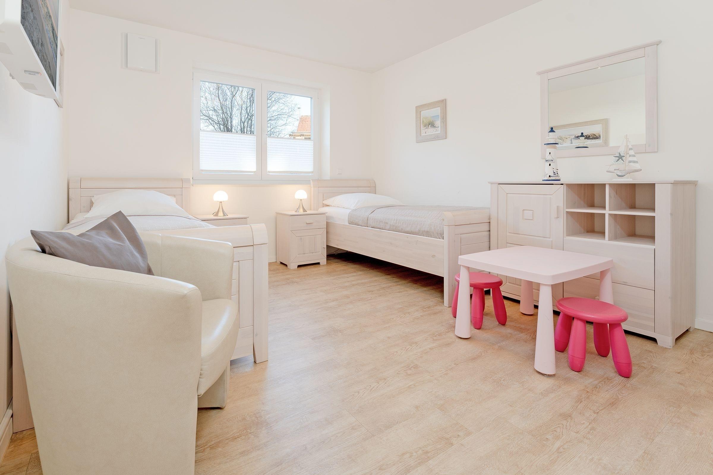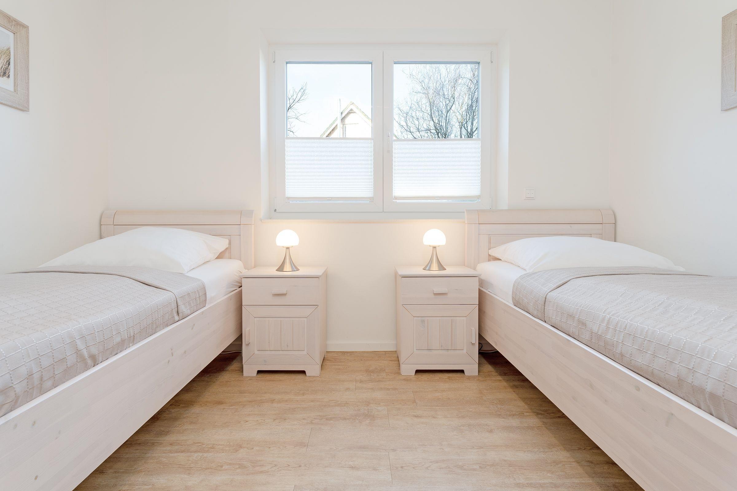 Schlafzimmer 1: 2 Einzelbetten (90x200 cm), Kleiderschrank