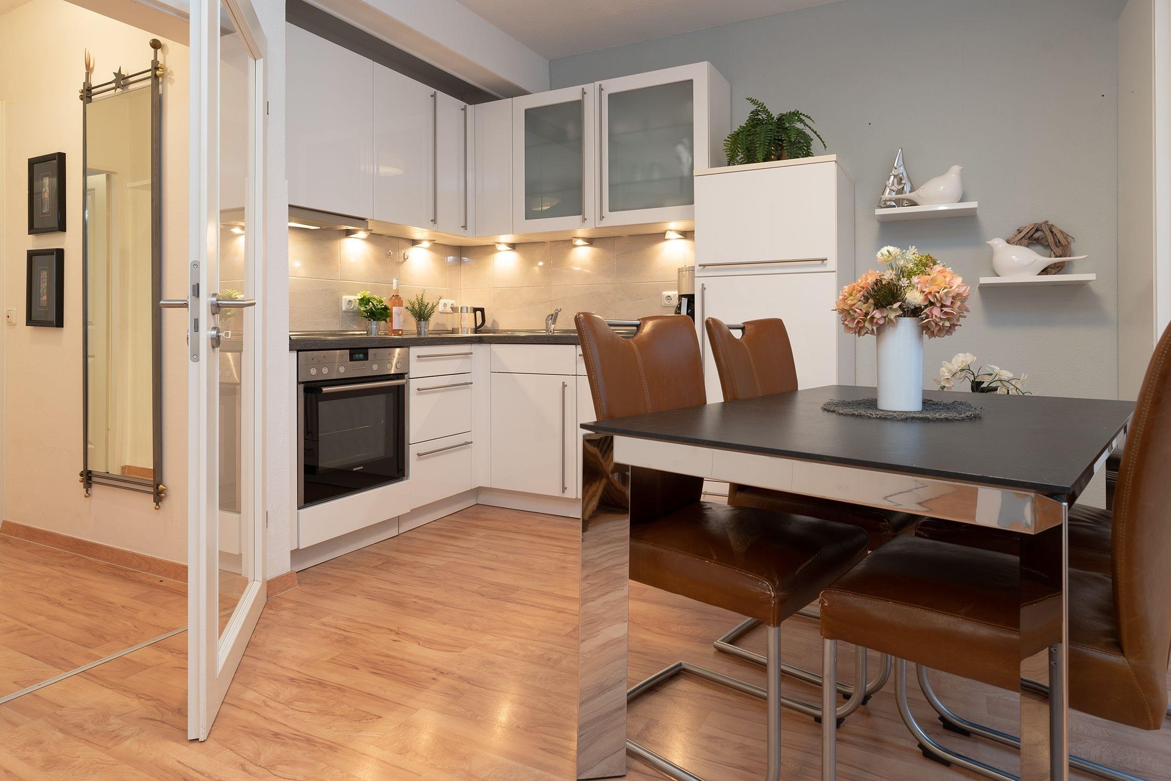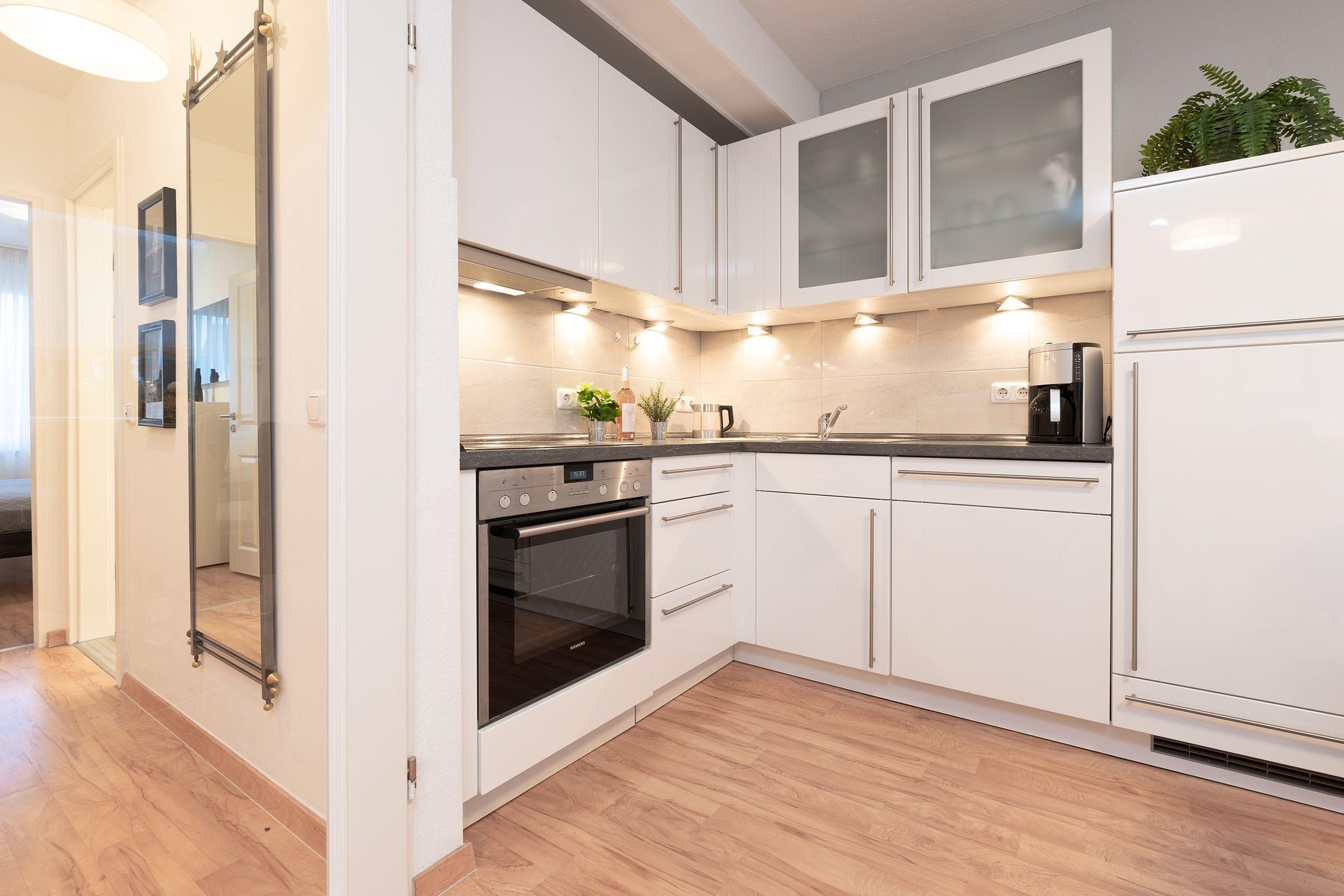 Kühlschrank mit Gefrierfach, Backofen und Ceranfeld, Spülmaschine und vieles mehr.