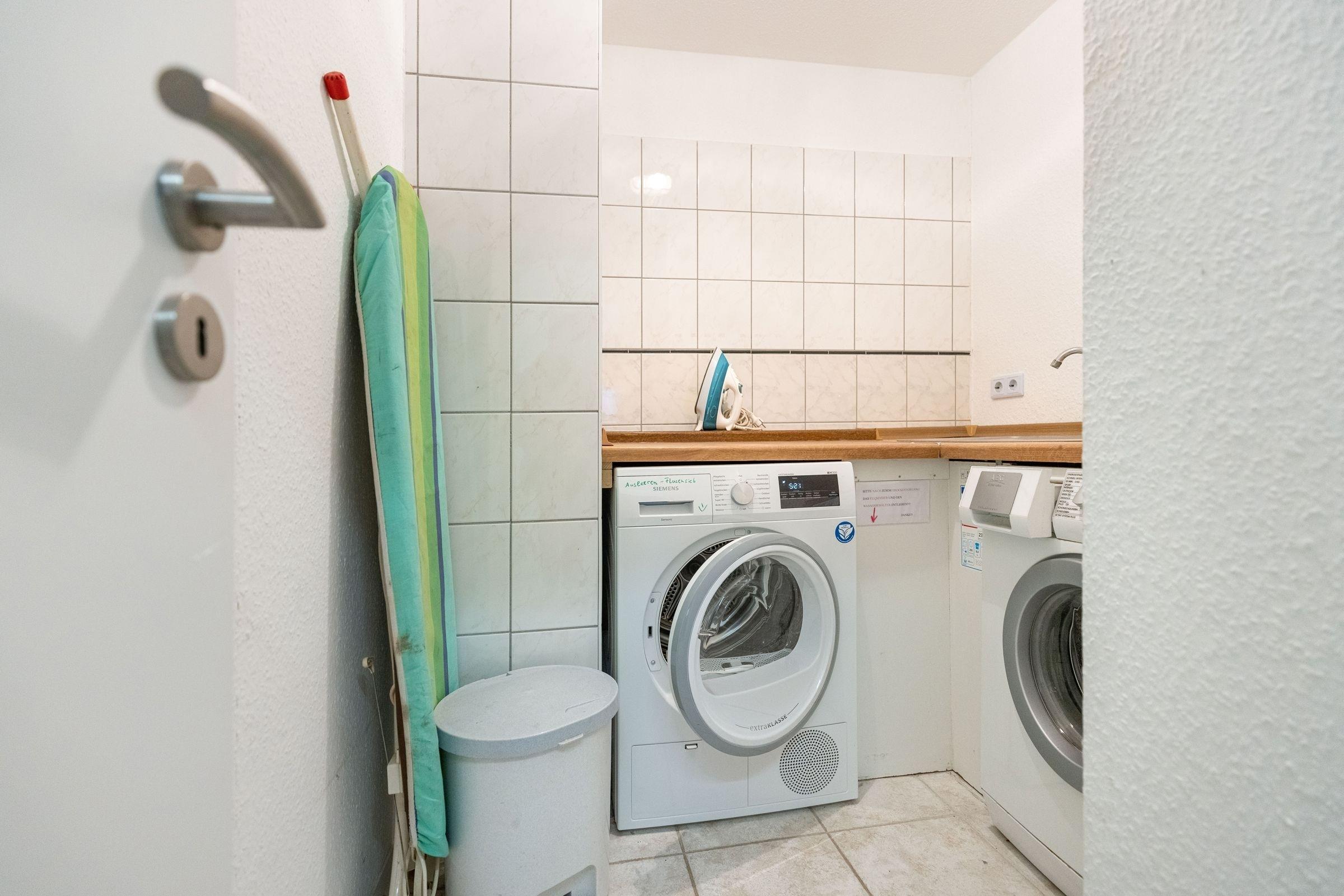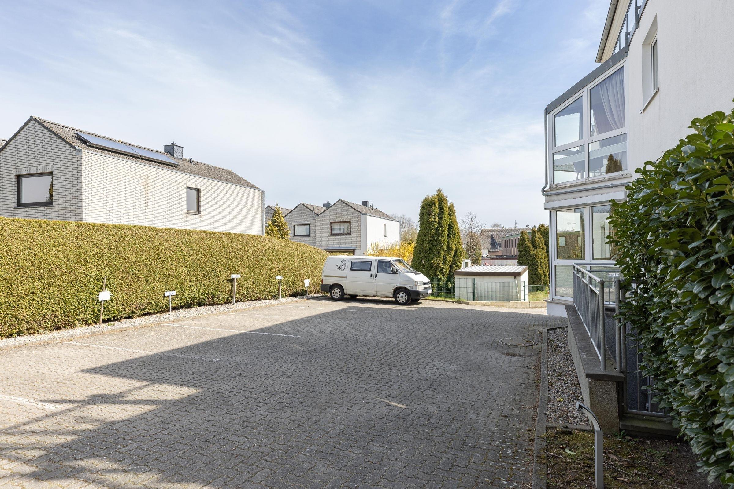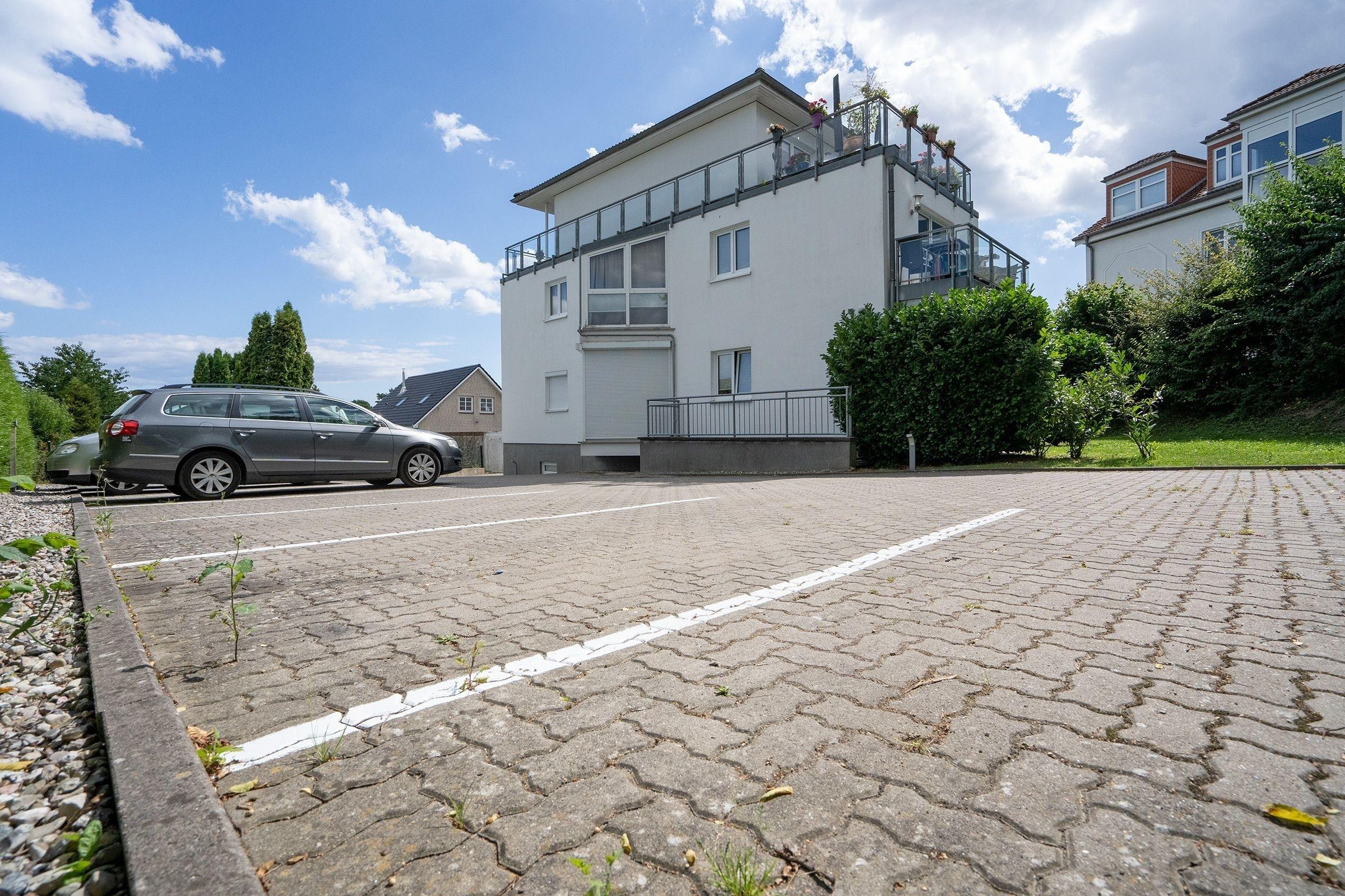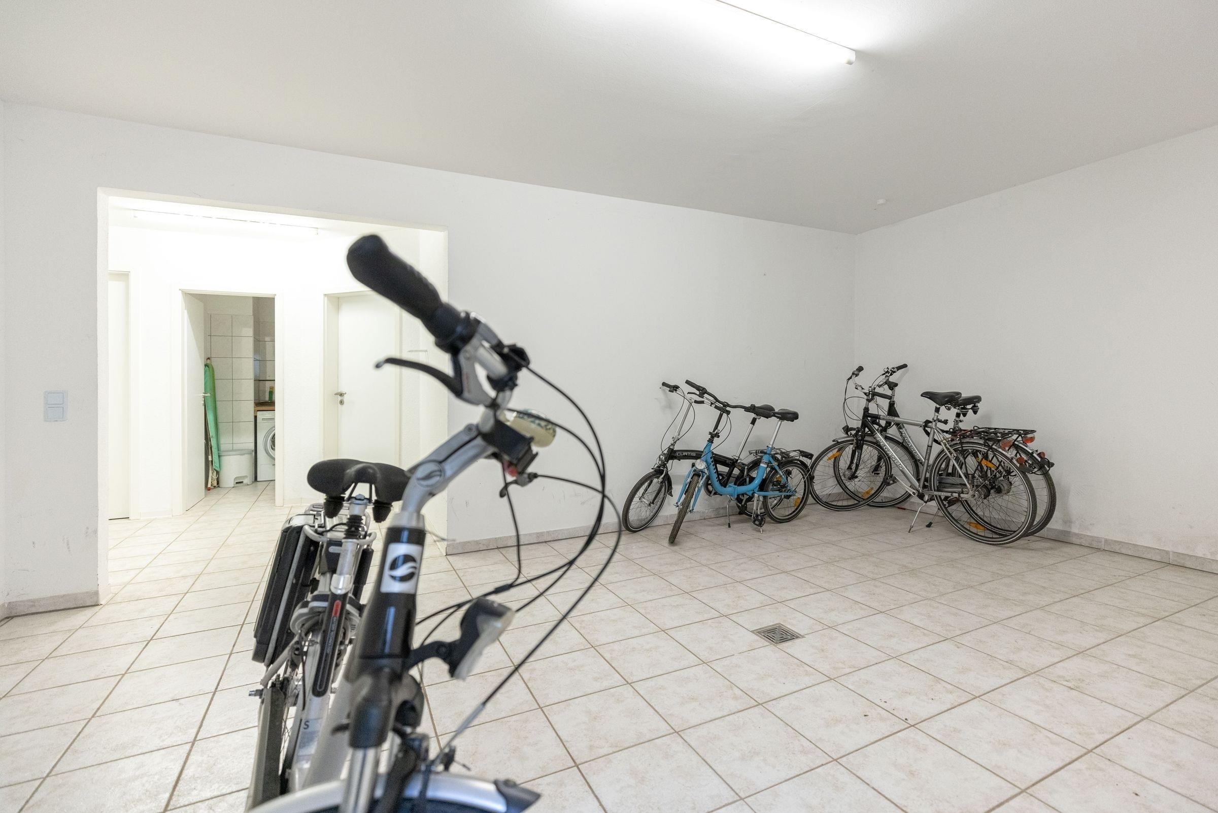 Ein PKW-Außenstellplatz direkt vor der Haustür ist für Sie reserviert. Ihre Fahrräder können Sie im Fahrradkeller sicher unterbringen. Wichtig: Der Fahrradkeller kann nur über eine Treppe (10 Stufen) erreicht werden. Im Keller befindet sich auch ein Gemeinschaftswaschraum mit Waschmaschine und Trockner.