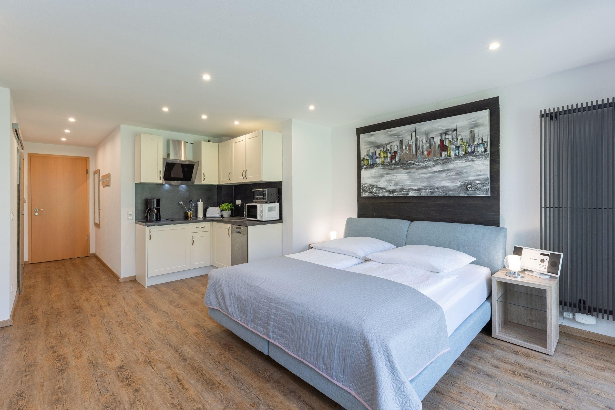 Etwas zurückgezogen, in ruhiger Lage und dennoch zentral verbringen Sie zauberhafte Ferien in einem geschmackvoll designten Ein-Zimmer-Appartement.