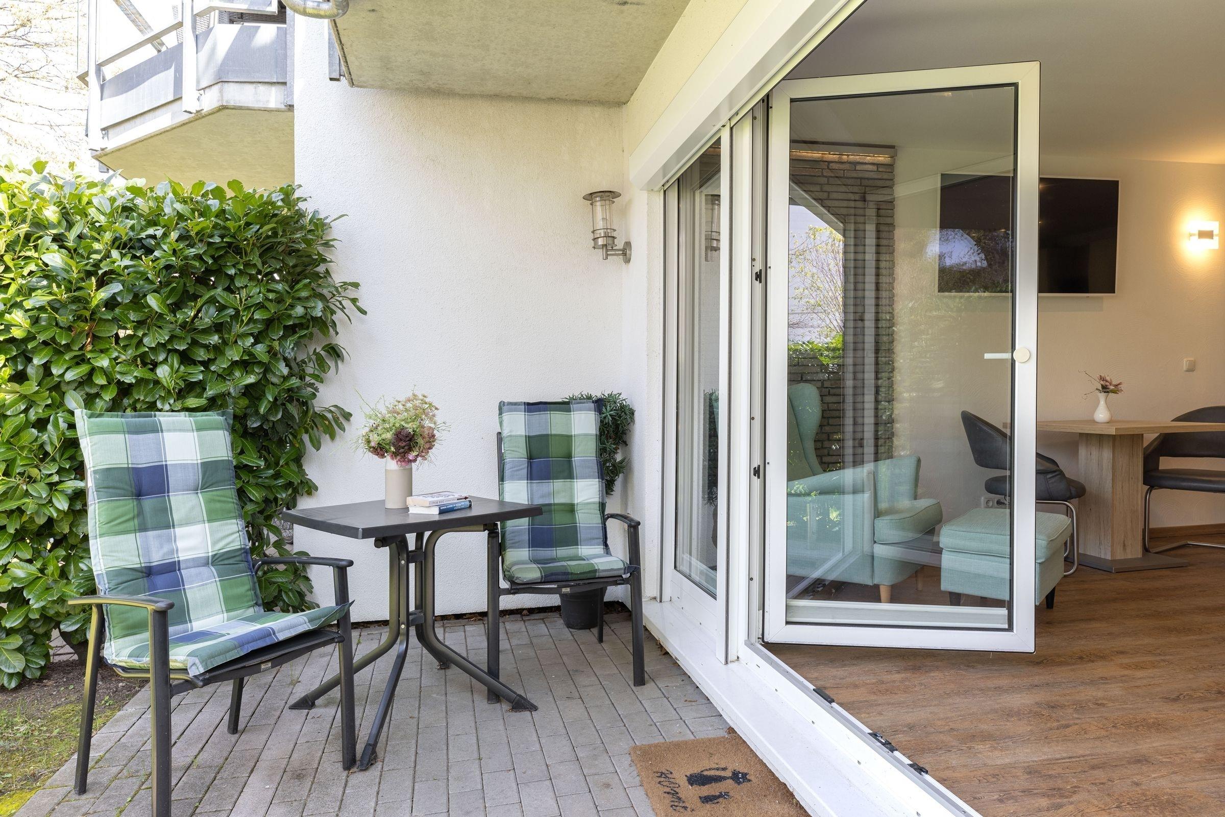 Die Wohnung liegt im Hochparterre einer modernen, gepflegten Wohnanlage und bietet Platz für zwei Personen.