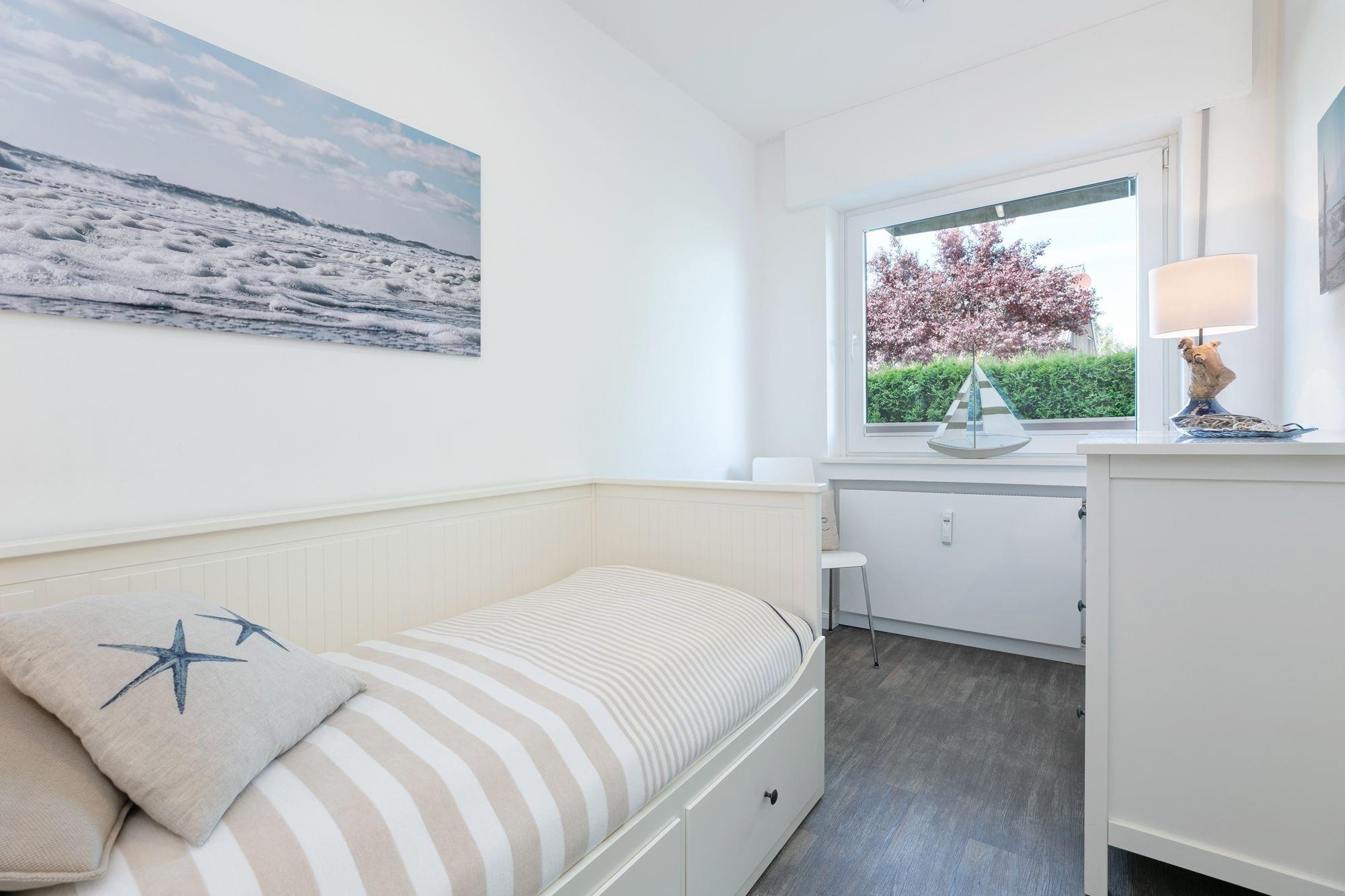 Schlafzimmer 2: 1 Einzelbett (80x200 cm), (Verdunkelung: Außenrollo und Plissee)