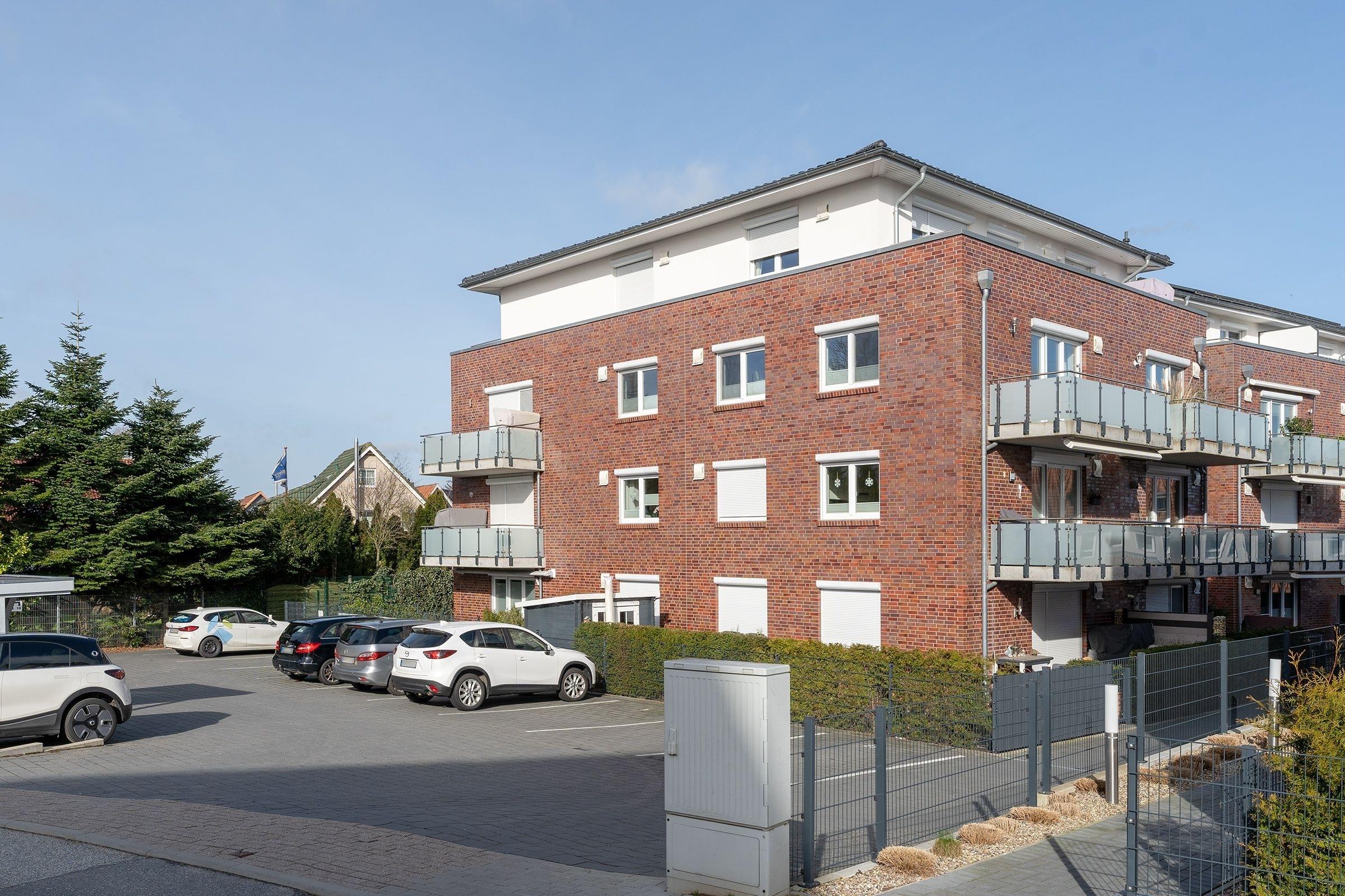 Ein PKW-Außenstellplatz ist für Sie am Haus reserviert. Zur gemeinschaftlichen Nutzung gibt es einen Fahrradabstellraum im Keller.